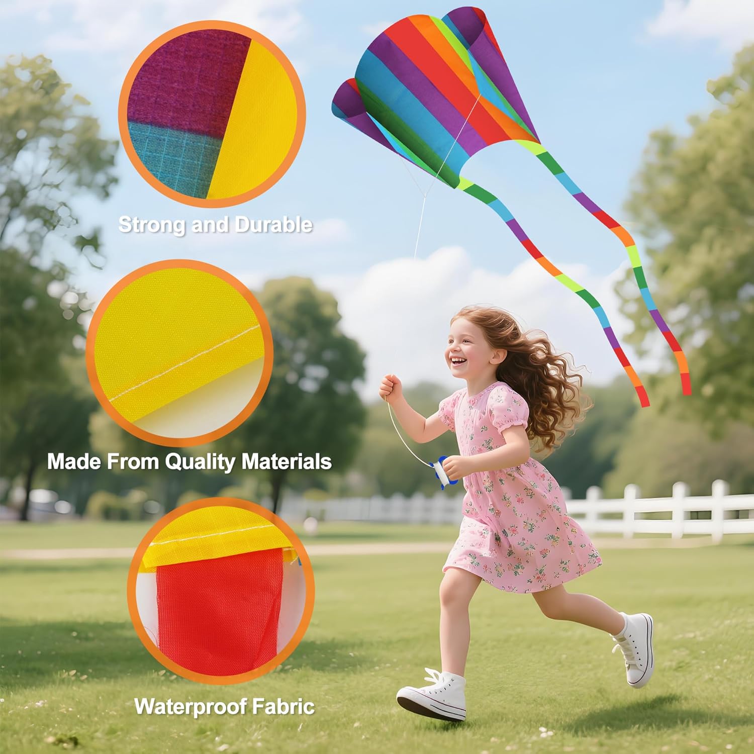 Dimensioni ideali - Progettato appositamente per le attività all'aperto:aquilone bambini Le dimensioni dell'aquilone sono 32 pollici di larghezza × 52 pollici di altezza, con una coda lunga 200 cm e una corda di volo lunga 30 metri. Si ripone facilmente in uno zaino ed è perfetto per l'uso in luoghi all'aperto come spiagge, parchi e prati. Materiali di alta qualità - Divertimento di volo duraturo:aquilone Il kite è realizzato in tessuto poliestere antistrappo, resistente, leggero e durevole. Può volare stabilmente sia sulla spiaggia soleggiata che sulla prateria ventosa, offrendo innumerevoli ore di divertimento all'aperto. Design tascabile - Facile da trasportare ovunque e in qualsiasi momento:Questo kite morbido è senza telaio, non richiede assemblaggio e, una volta ripiegato, è compatto, facile da riporre e da trasportare. Abbinato alla lunga coda arcobaleno di 11,5 piedi, il suo effetto di volo è ancora più accattivante e affascinante. Facile da far volare - Adatto ai principianti:Progettato appositamente per bambini e principianti, si monta in pochi secondi. È dotato di un mulinello con impugnatura adatta alle mani dei bambini, facile da manovrare, per far volare i sogni con facilità! Regalo ideale - Un set per volare subito:Il prodotto include l'aquilone, il mulinello con impugnatura e una borsa per il trasporto, ed è il regalo perfetto per bambini, amici o familiari. I colori vivaci e l'aspetto accattivante raddoppiano la sorpresa.