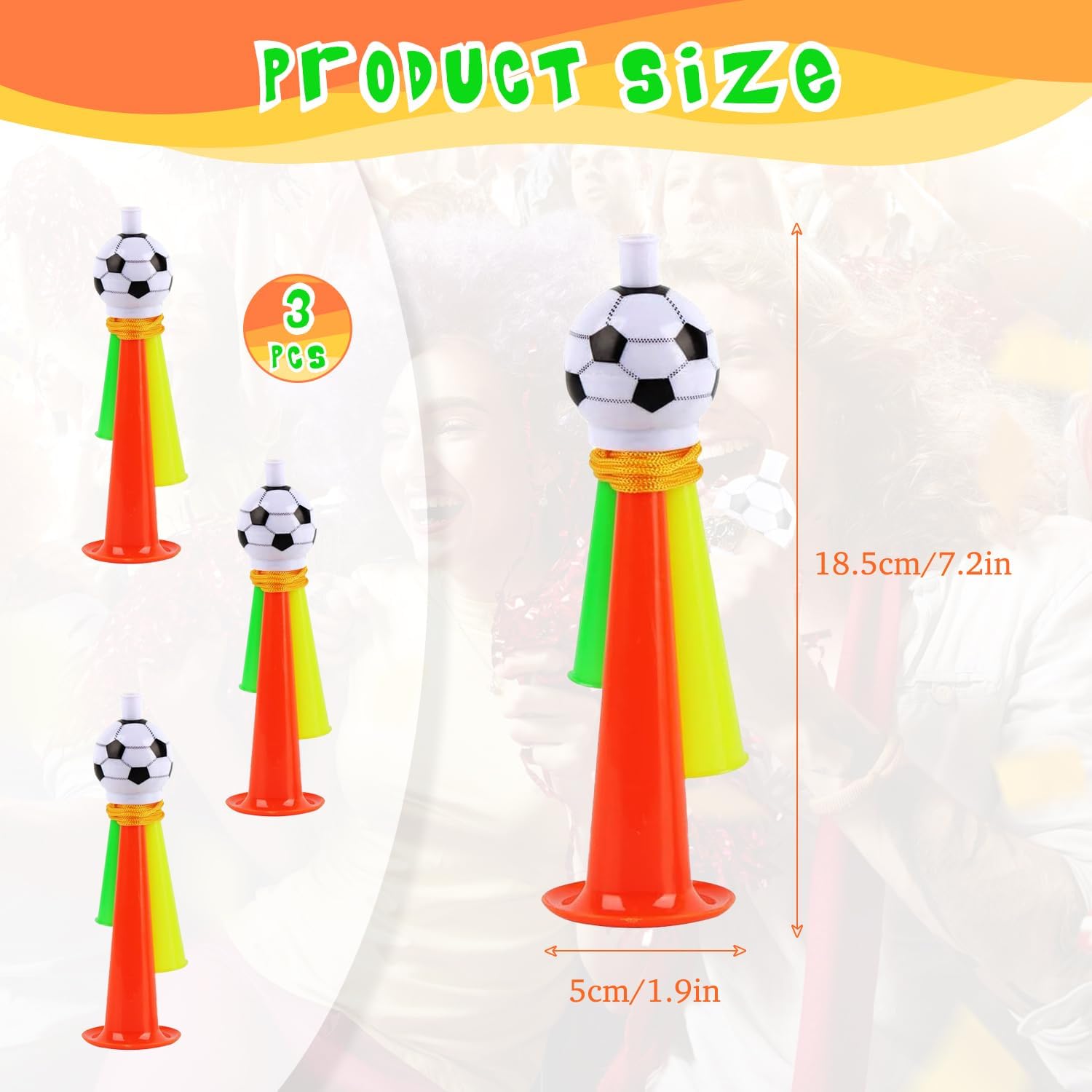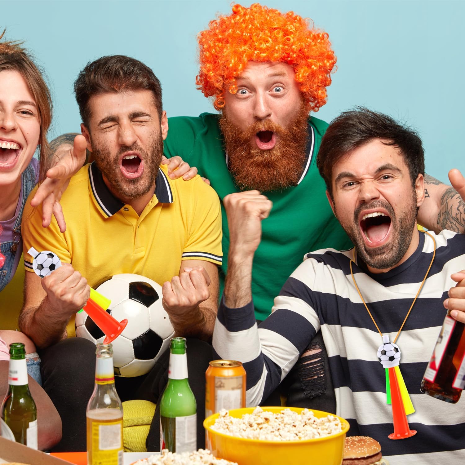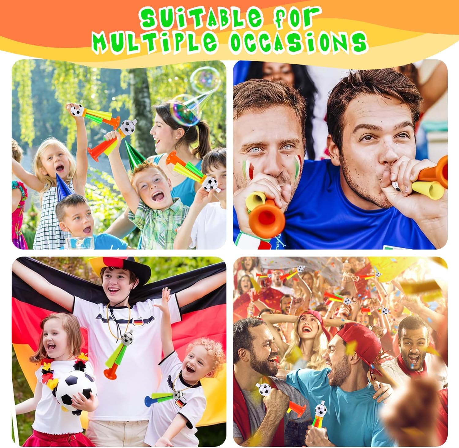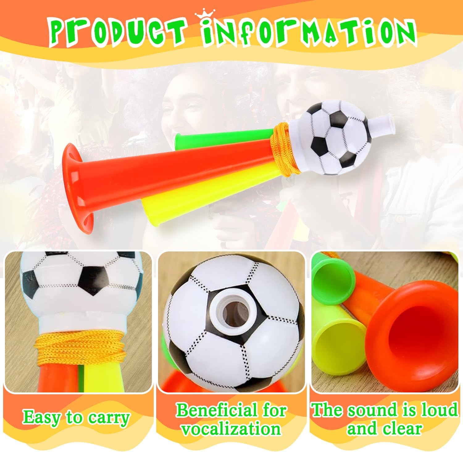 Materiale di fascia alta:Realizzato in materiale di alta qualità per un uso prolungato, il Corno da Calcio è caratterizzato da prestazioni robuste e durature, Adatto ad adulti e bambini di tutte le età Dimensioni del Prodotto:Questo Tromba di Calcio è lungo 18.5 CM e largo 5 CM, leggero e piccolo, il che lo rende facile da trasportare. Puoi portarlo con te per guardare le partite e fare il tifo per la tua squadra Facile da trasportare:Questo Tromba da Calcio di Plastica ha un design unico a forma di pallone. Ogni Corno da tifo per Il Calcio è dotato di un cordino per poterlo appendere al collo senza preoccuparsi di perderlo Il volume è Giusto:Il volume di questa Corna Da Tifoso Di Calcio non è né troppo alto per causare fastidio all'orecchio né troppo basso per sentirsi impercettibile. Il giusto volume protegge le tue orecchie e attira l'attenzione degli altri Ampia gamma di usi:Questa Corno da Calcio è adatta a tutte le occasioni, non solo per vari eventi sportivi, ma anche per varie feste e festival. Ottimo anche come regalo per feste di compleanno per bambini a tema calcio e come giocattolo, chiunque ami il calcio lo adorerà