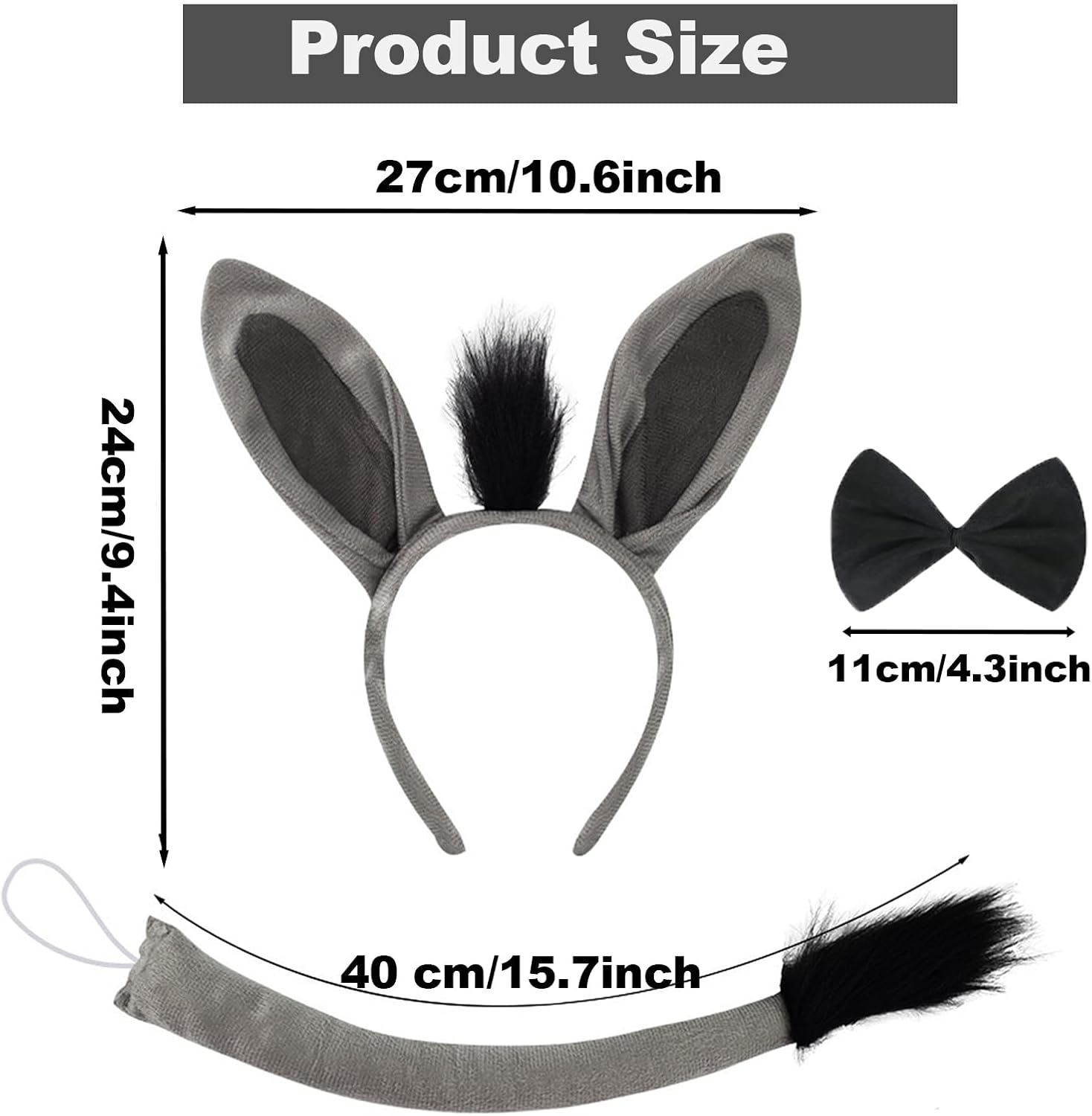 Descrizione prodotto Il pacchetto include: 3 pezzi di costume da asino Dimensioni: elasticizzato, adatto per ragazzi, ragazze, adulti Colore: Grigio Materiale: Poliestere Avviso di sicurezza Non applicabile