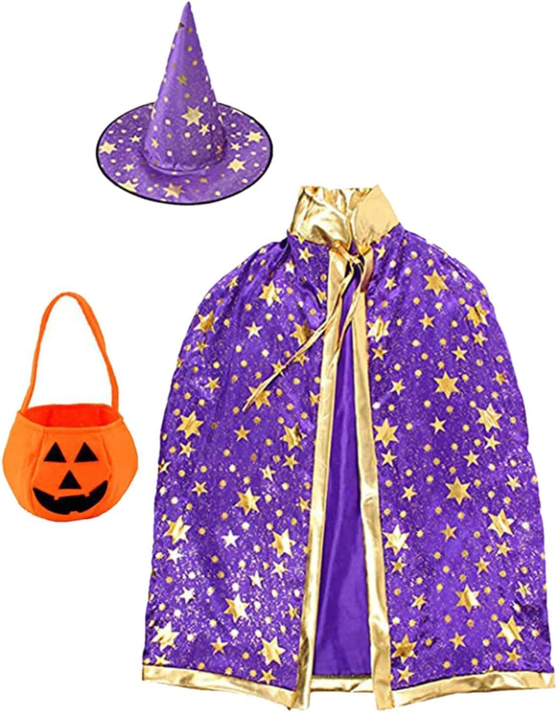 【Materiale di qualità】: il mantello è realizzato in poliestere, morbido e confortevole al tatto, traspirante e assicura che il tuo bambino si a suo agio senza sentirsi soffocante. 【Pieno di divertimento】: indossare il mantello e il cappello della strega mentre si trasporta la borsa di caramelle di zucca consente ai bambini di interpretare appieno il ruolo di una strega, sperimentando il divertimento e la novità di Halloween. 【Ampie applicazioni】: il set di costumi da strega di Halloween è ampiamente adatto per feste, cosplay, oggetti di scena per foto, mascherate, spettacoli teatrali, carnevali, ecc. 【Caratteristica】: la lavorazione e le cuciture pregiate assicurano che il mantello e il cappello siano robusti e belli, in di resistere alle attività di gioco dei bambini. 【Set di costumi di Halloween】: questo set include un mantello, un cappello e una borsa di zucca. Soddisfa tutte le tue esigenze in un pacchetto, consentendo al tuo bambino di trasformarsi facilmente in una simpatica strega.