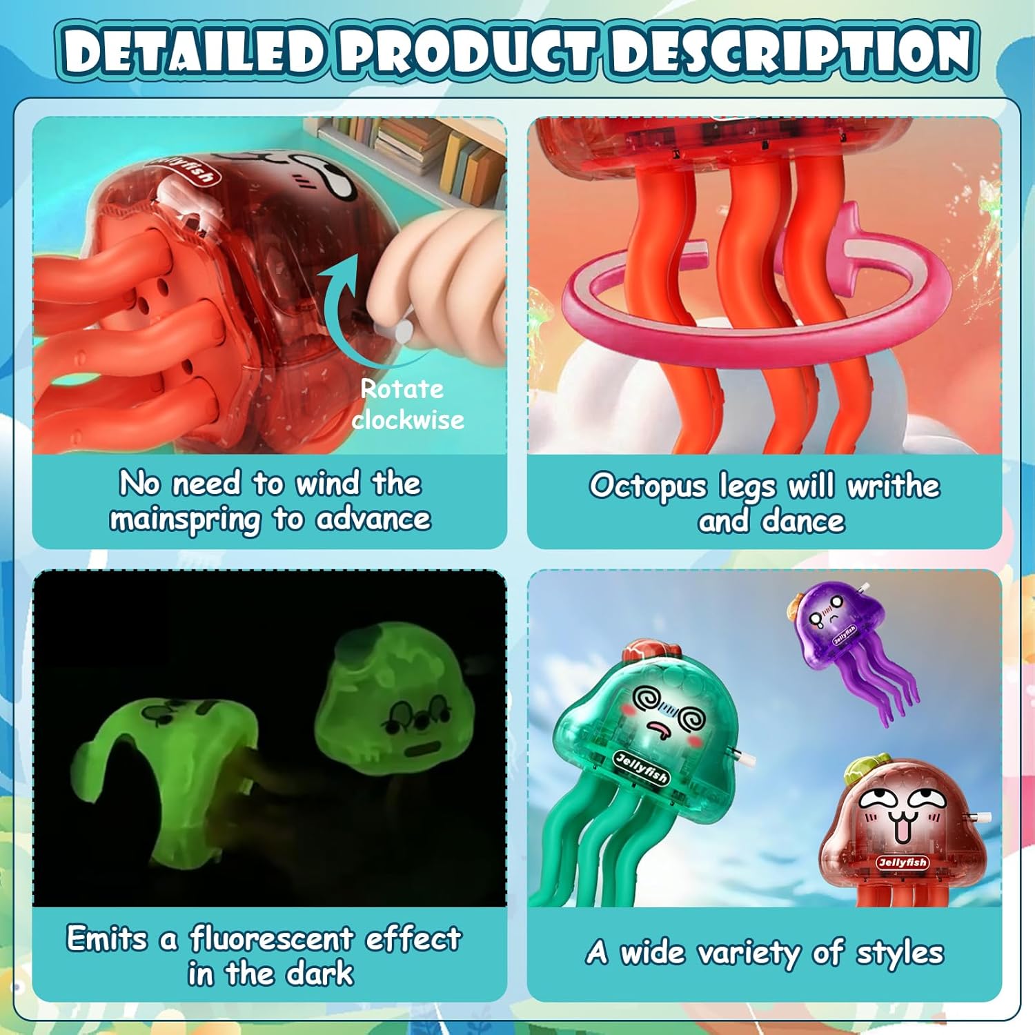 Confezione del prodotto: riceverete tre giocattoli a forma di polpo che si illuminano al buio. Grazie alle loro dimensioni uniche in miniatura, sono perfetti per le mani piccole, quindi sono facili da impugnare e sono adatti per giocare. Questo giocattolo a forma di polpo traballante promette ai bambini un divertimento senza fine. Leggero e sapientemente realizzato: questo giocattolo a forma di polpo danzante in resistente plastica ABS è caratterizzato da una lavorazione accurata con bordi lisci e arrotondati. È lavorato in modo che non ci siano spigoli vivi, garantendo così un gioco sicuro per i bambini. Funzione di azionamento: il giocattolo a forma di polpo danzante funziona sia in posizione verticale che in posizione piatta. Basta ruotare la maniglia per vederlo ballare. Il polpo evita automaticamente gli ostacoli e cambia direzione, assicurando un divertimento ininterrotto. Pratico: grazie ai suoi movimenti di danza e agli effetti visivi vivaci, questo giocattolo favorisce il gioco immaginativo e lo sviluppo cognitivo. Rafforza anche il legame genitore-figlio e crea un'atmosfera piena di sorrisi e risate per i bambini. Il regalo perfetto per i bambini: le dimensioni, la forma e la funzionalità di questo giocattolo sono ideali per i bambini piccoli. È ideale come regalo, per feste di compleanno per bambini, appuntamenti di gioco e varie altre occasioni ed è un regalo ideale per le feste.