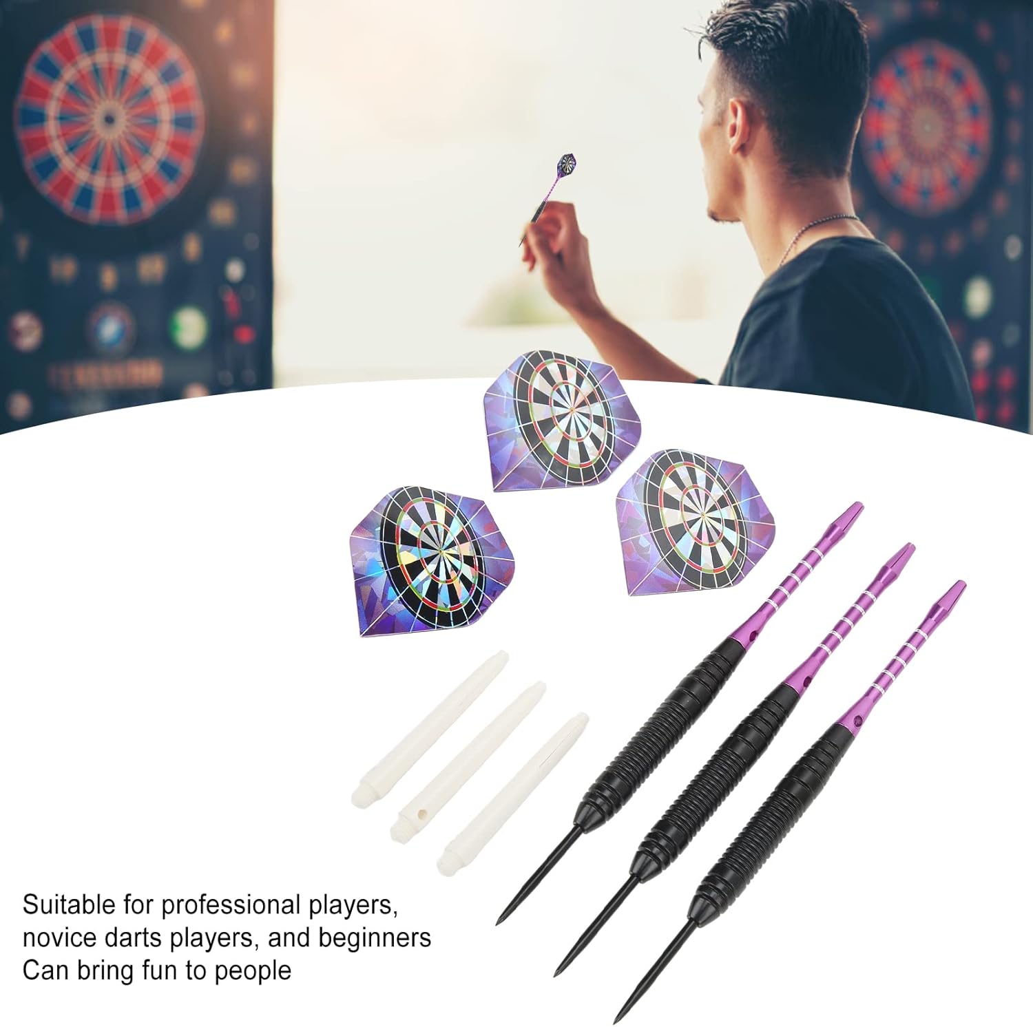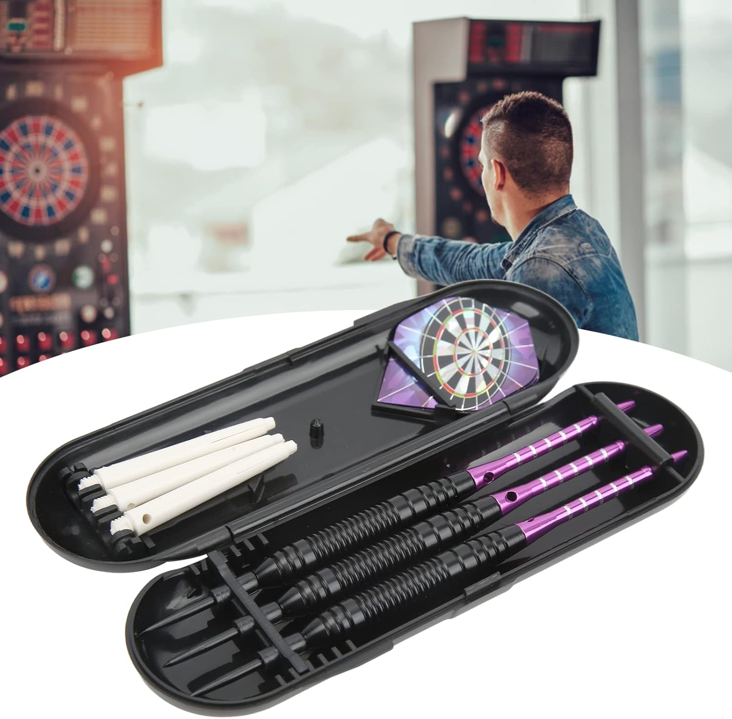 MANUSA ANTI SLIT: la presa a canna di Darts è progettata per essere non slip, forte e facile da contenere e non cadrà facilmente dalla tua mano. Set di freccette: la punta in acciaio ha una custodia da trasporto per contenere le freccette, gli alberi e le code saldamente in posizione, rendendo facile da trasportare e conservare. Perfetto per te: il set di freccette è adatto a qualsiasi livello, che tu sia un professionista, un giocatore di dardi alle prime armi o un principiante. PROGETTAZIONE MIGLIORATA: Le freccette professionali della punta d'acciaio sono progettate con 22g/0.8oz di peso robusto per il lancio facile. INTERESTING GAME: Steel tip darts is a great game that can bring fun to people. It can also be a great gift option.