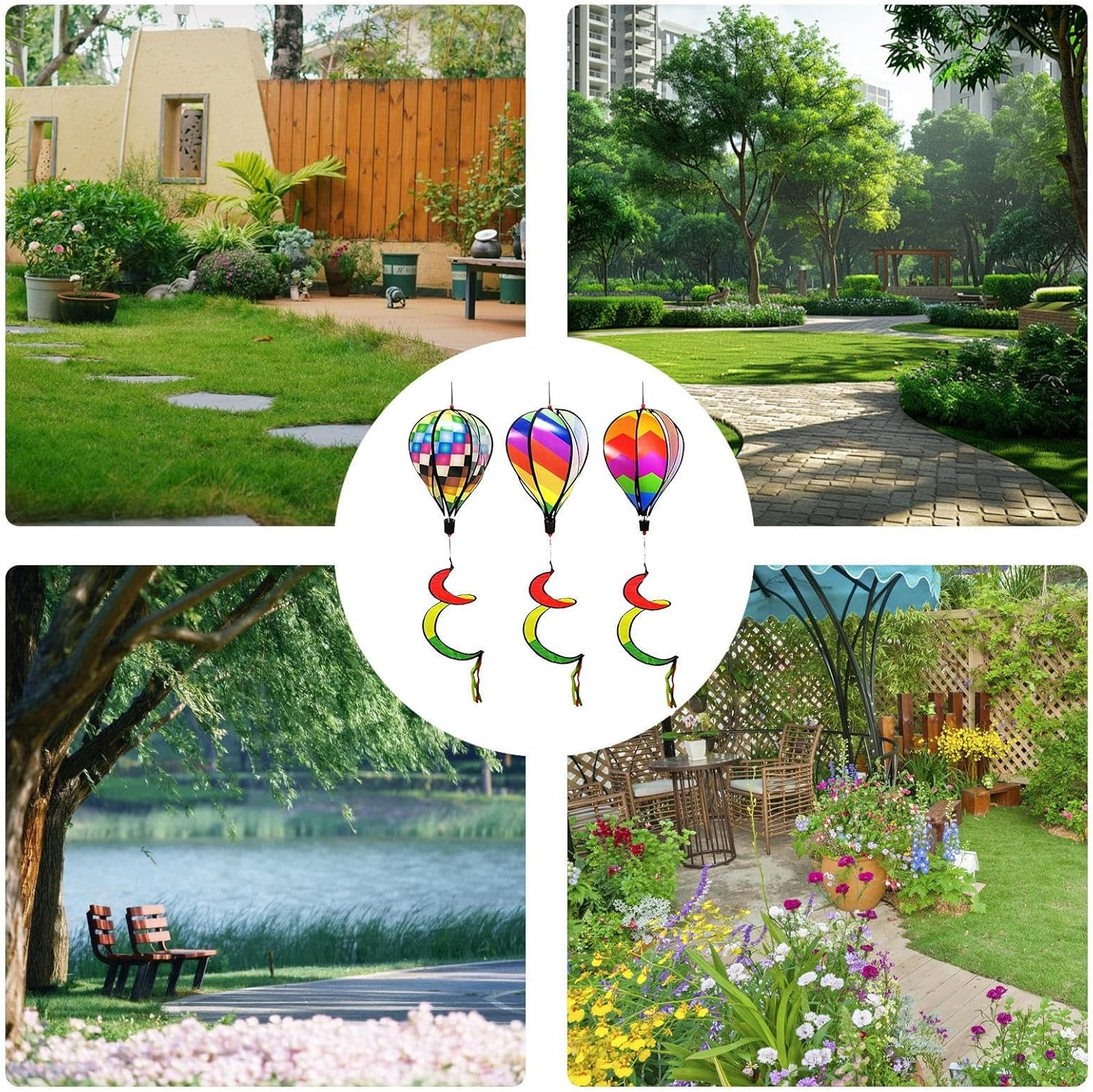 Regalo pratico: progettato per occasioni festive e feste, mette in risalto l'abbellimento del giardino offrendo opzioni versatili da appendere, fungendo da scelta regalo creativa e premurosa Riflessi accattivanti: goditi modelli di luce abbaglianti che forniscono un'esperienza visiva rilassante, migliorano l'atmosfera giocosa all'aperto e attirano naturalmente la concentrazione dei bambini con tonalità vivaci Resiliente e resistente: combina struttura leggera con stabilità garantendo rotazioni fluide in una leggera brezza, resistendo allo sbiadimento del colore e alla deformazione del materiale nel tempo Multiuso: questa girandola a vento presenta un paesaggio tridimensionale con elementi sfalsati appesi, mescolando maniche a vento e mulini a vento per un effetto artistico da giardino da sogno, offrendo aggiornamenti di design convenienti per migliorare naturalmente gli spazi esterni Installazione facile: cattura l'attenzione con una manica a vento arcobaleno rotante che aggiunge un effetto visivo dinamico al tuo spazio esterno; questa girandola migliora l'atmosfera senza sforzo, con un gancio appendibile e un montaggio rapido per una perfetta integrazione nell'arredamento del tuo giardino