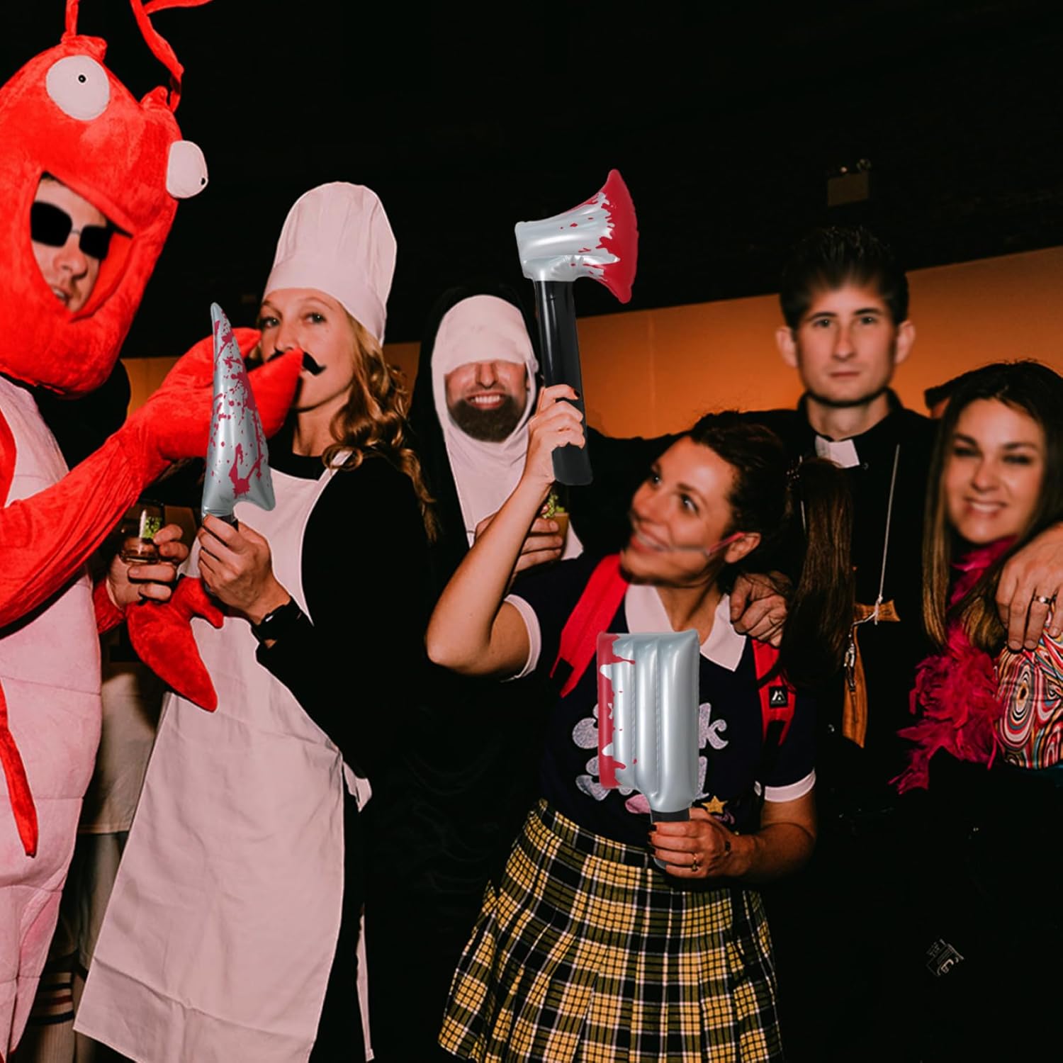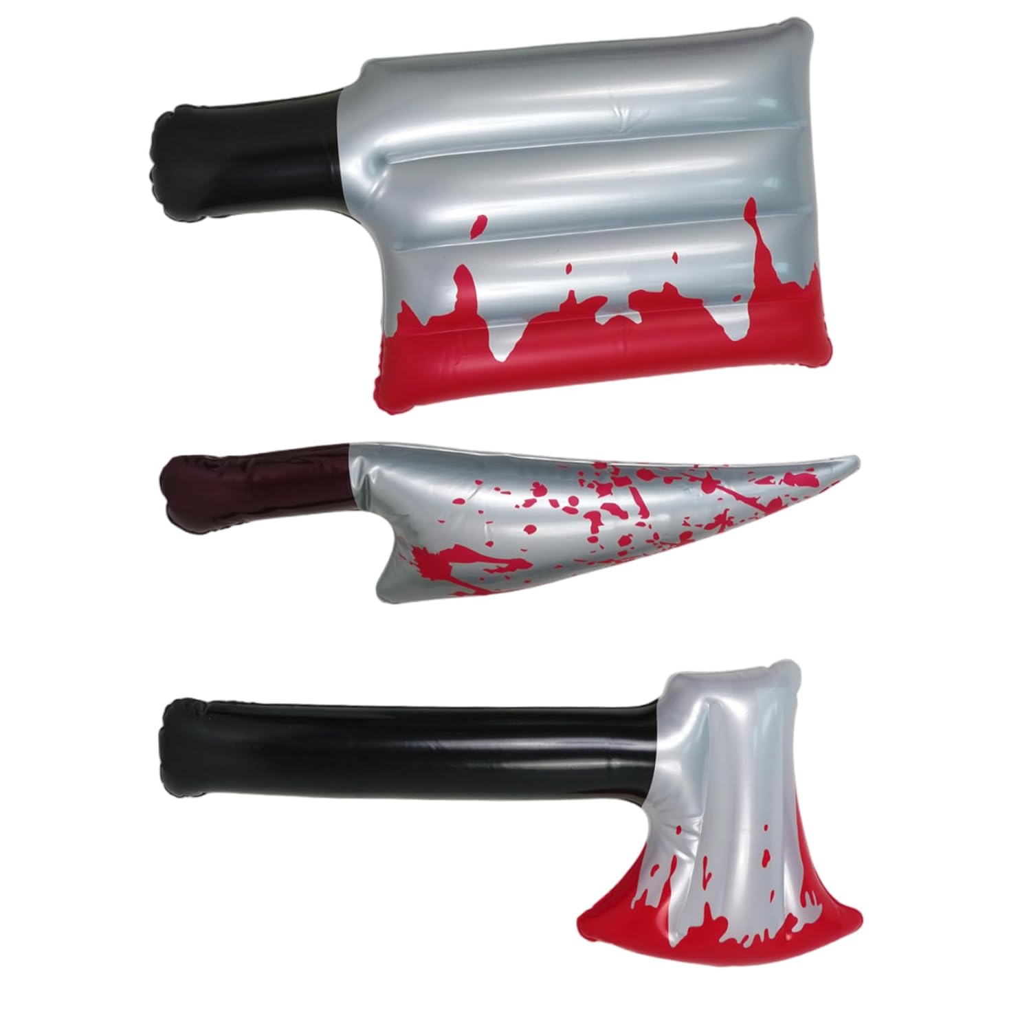 Leggeri e portatili: gli oggetti di scena gonfiabili sono facili da trasportare e riporre quando sgonfi, il che li rende molto convenienti per eventi, servizi fotografici e spettacoli senza l'ingombro degli oggetti di scena tradizionali. Design gonfiabile per cassaforte: questi oggetti di scena sono realizzati in materiale PVC robusto e leggero con una valvola facile per un rapido gonfiaggio e sgonfiaggio, sicuri per uso interno ed esterno. Oggetti di scena realistici per Halloween: questi set da 3 pezzi sono dotati di asce e coltelli simulati macchiati di sangue da 16 pollici, che aggiungono autentiche vibrazioni horror alle tue decorazioni di Halloween e alle tue esibizioni cosplay. Il design dettagliato crea effetti indimenticabili e spettrali. Versatile per feste e cosplay: perfetto per feste di Halloween, eventi a tema, case stregate e cosplay. Questi camion gonfiabili migliorano l'atmosfera e completano perfettamente i costumi. Effetti del sangue accattivanti: la vivida simulazione del sangue rosso sulle lame migliora l'estetica spettrale, attira l'attenzione e rende le tue decorazioni o costumi più accattivanti e memorabili sia per gli ospiti che per il pubblico.