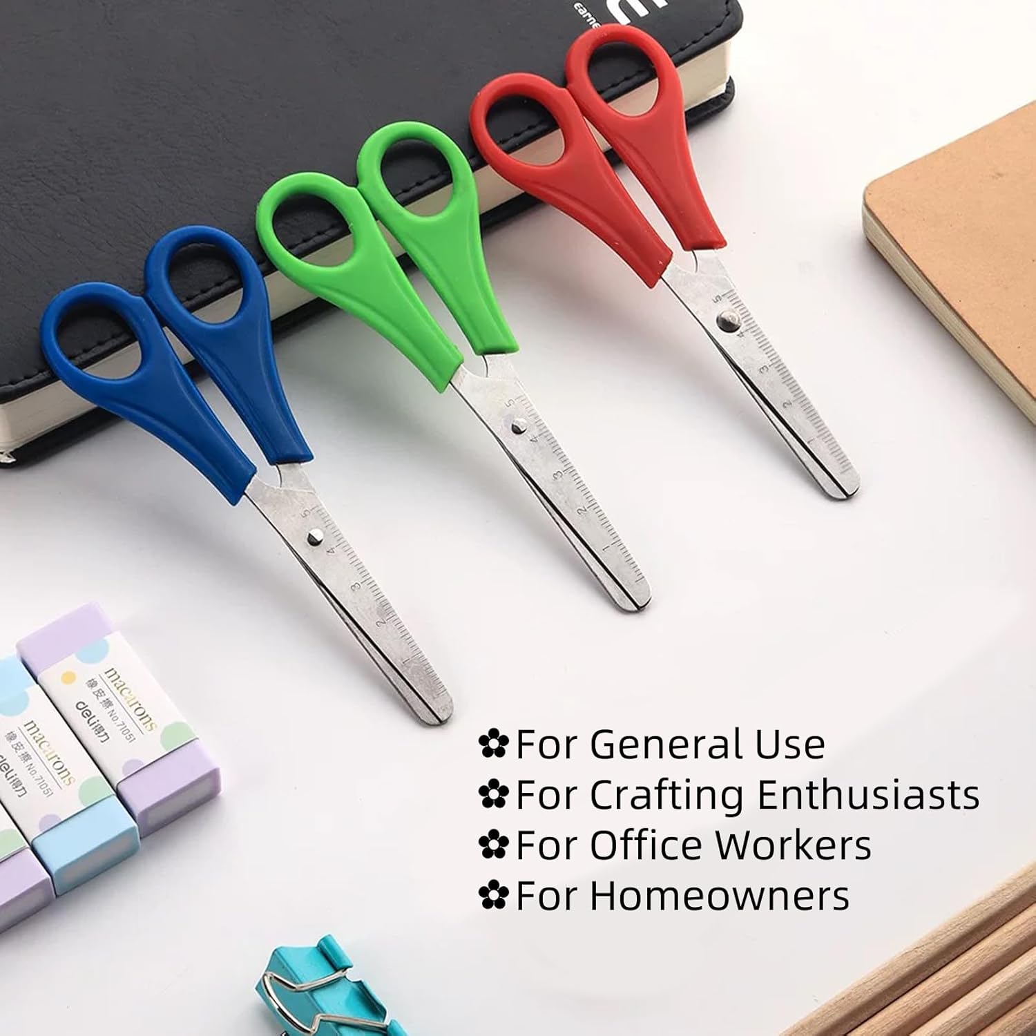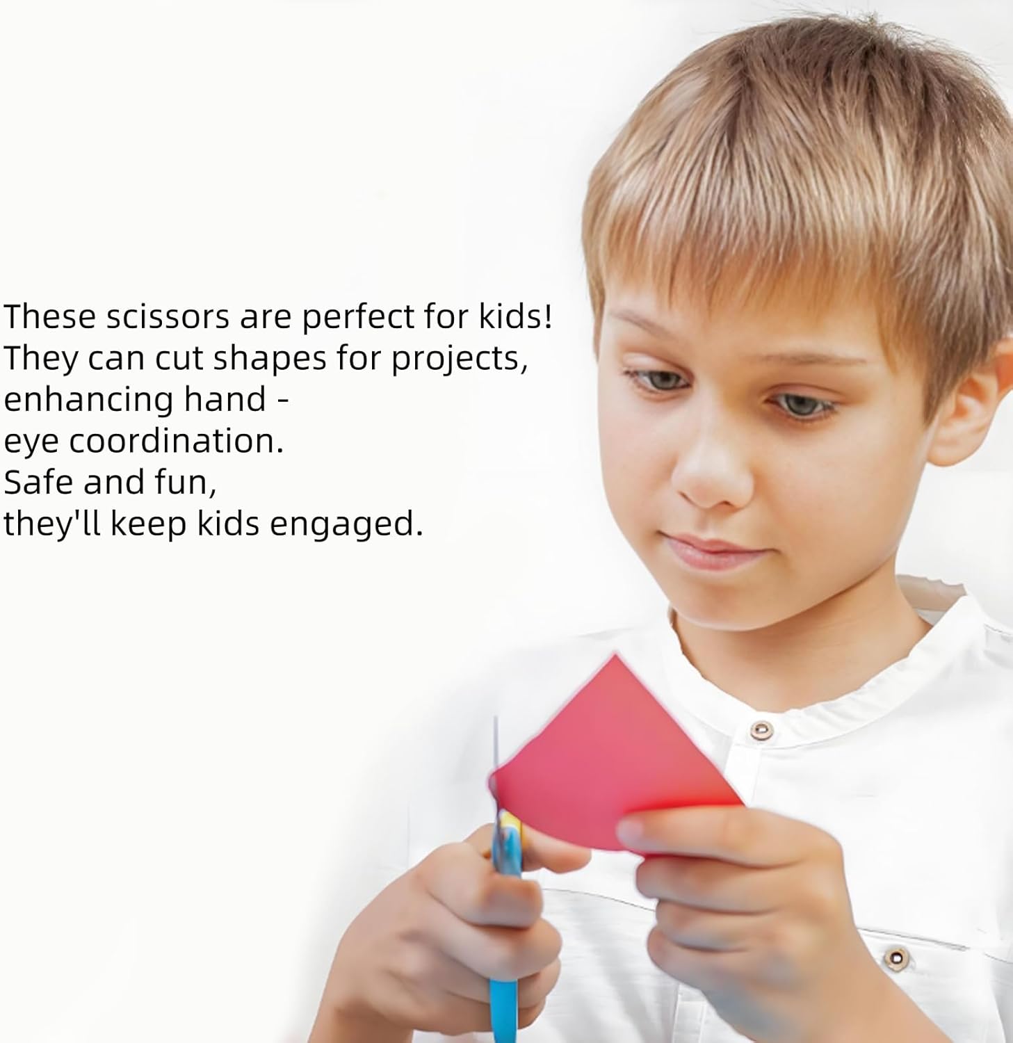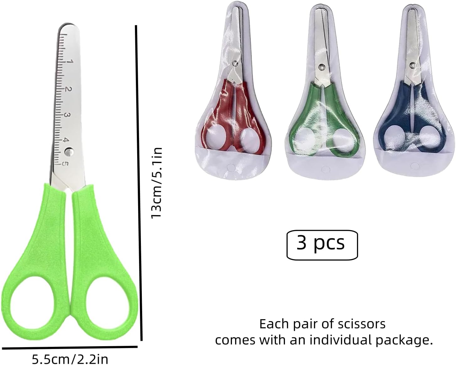 Contenuto della confezione: questo set comprende tre forbici di sicurezza rosse, verdi e blu brillanti, progettate per bambini, adolescenti e persino insegnanti. Ideale per famiglie, scuole o attività manuali. I loro colori divertenti e il design adatto ai bambini li rendono uno strumento divertente e pratico per l'uso quotidiano. Progettazione al centimetro: ogni forbici ha una conveniente scala di 5 cm, contrassegnata sulla lama, che consente ai bambini di misurare con precisione durante il taglio. La maniglia di plastica ergonomica è progettata per essere comoda e adatta a mani piccole, incoraggiando l'indipendenza e la facilità d'uso. Questo design ben pensato aiuta i bambini a migliorare la precisione mantenendo i loro progetti organizzati. Cune rotonde di sicurezza: la sicurezza è la massima priorità per queste forbici, con una testa rotonda per prevenire graffi accidentali. Realizzato con lame in acciaio inossidabile durevole e maniglie di plastica PP leggera, è robusto e resistente per la manipolazione dei bambini. La comoda presa garantisce un taglio senza fatica, rendendolo ideale per sessioni di processo prolungate. Qualità e uso intelligente: realizzati in lame in acciaio inossidabile e in plastica inodore di alta qualità, queste forbici durano a lungo. Il suo design leggero e robusto è adatto sia agli utenti della mano destra che della sinistra, garantendo l'inclusività. Che si tratti di compiti scolastici o di progetti creativi, offrono prestazioni affidabili a lungo termine. Applicazioni versatili: perfetto per lo sviluppo di abilità motorie fini, queste forbici sono grandi per tagliare carta, cartone, schiuma, e così via. Sono perfetti per l'arte e l'artigianato, gli album di appunti, i progetti DIY e persino gli esercizi di matematica. Migliorando la coordinazione e la flessibilità mano-occhio, rendono l'apprendimento divertente e allo stesso tempo promuovono la creatività dei giovani.