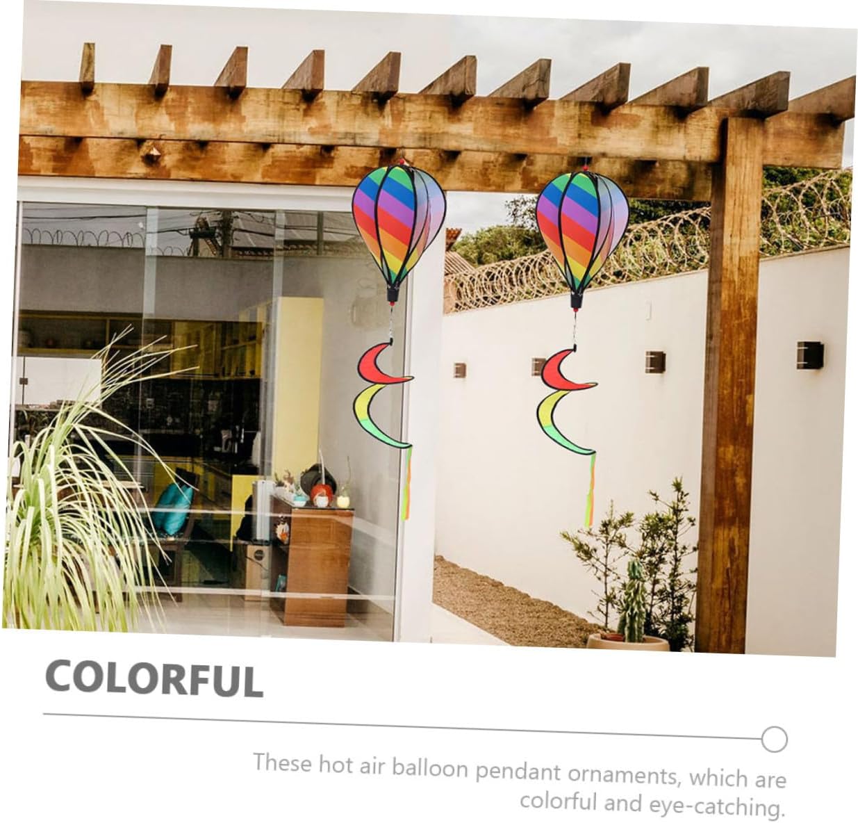 Girandola a vento: leggera e portatile, facile da portare con sé all'esterno o da appendere, girandole per mongolfiere Decorazione con palloncini da giardino: adatta per pubblicità all'aperto, eventi sportivi, celebrazioni di festival, giocattoli per all'aperto e altro ancora, decorazioni da giardino con vento Rotante mobile: colore brillante, realistico, può essere utilizzato per decorazioni esterne e interne, ma anche per appendere ornamenti, decorazioni a vento Decorazione da giardino con mulino a vento: realizzata con pregevole fattura, per garantire praticità e durata, girandola da giardino per esterni Ornamento rotante a forma di mulino a vento: oggetti di scena per decorazioni festive, produzione e consistenza realistica, atmosfera molto festosa, decorazioni da giardino
