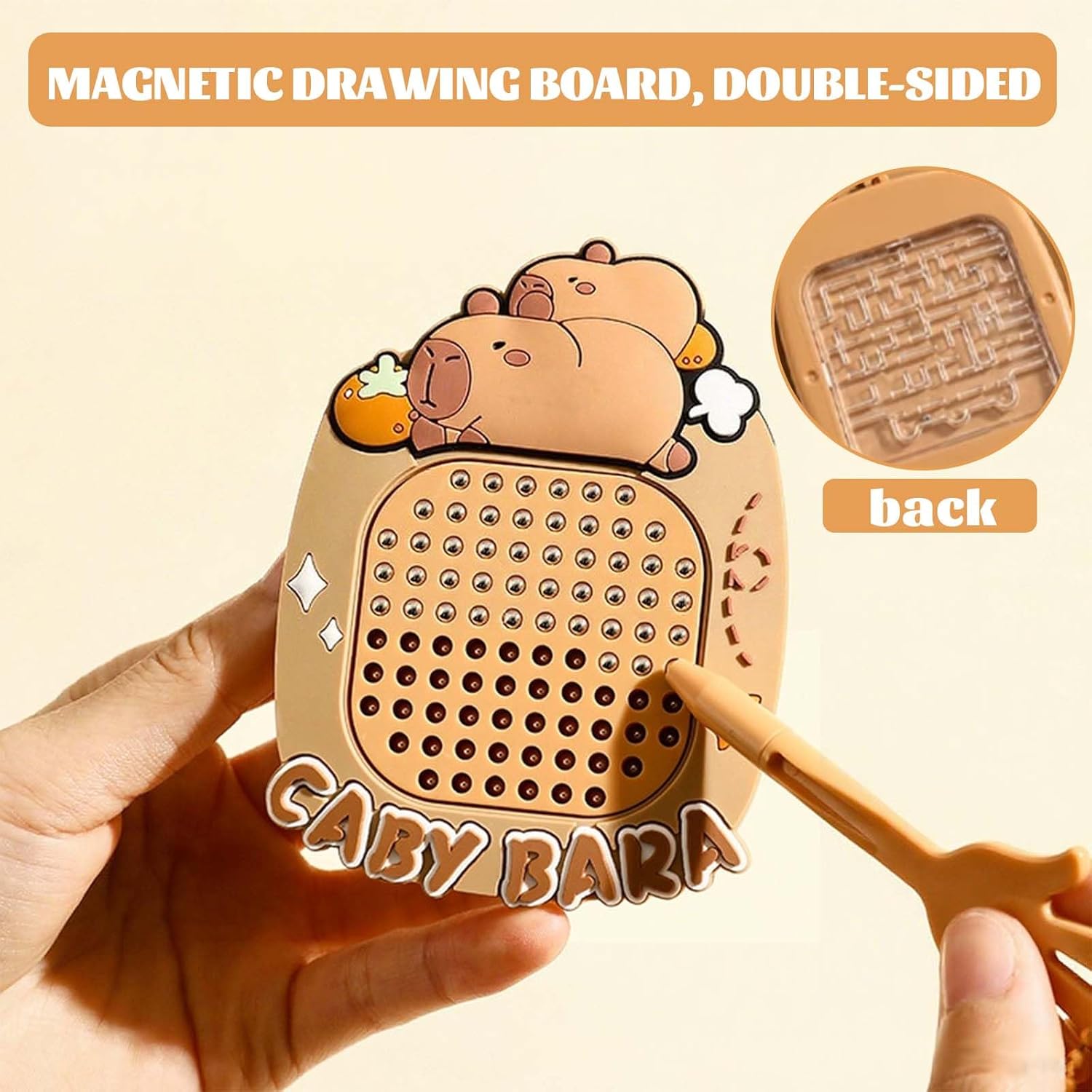Rilassante: Basta premere le perline magnetiche per farle emettere un suono piacevole. Che tu voglia semplicemente rilassarti tra un'attività e l'altra o calmare la mente prima di andare a letto, pochi clic e pressioni delicate ti regaleranno un momento di pace e tranquillità, riequilibrando corpo e mente con il suono delicato Design Unico: La parte anteriore di gioco magneti presenta una lavagna magnetica. Usa la punta magnetica della penna per indicare ogni foro e spostare le perline sulla lavagna, liberando la tua creatività. Basta toccare per ripristinare, non è necessario pulire! Il retro di tavola da disegno magnetica presenta un divertente labirinto per un divertimento senza fine e puzzle entusiasmanti Gioco Educativo: Questo tavolo da disegno magnetico aiuta a migliorare la concentrazione e la coordinazione occhio-mano. Coinvolge in modo naturale i bambini, allontanandoli da tablet e telefoni e riportandoli ad attività pratiche, promuovendo l'attenzione e la creatività attraverso il gioco Include: Riceverai tre ciondoli capibara e tre lavagne magnetiche capibara con sfere d'acciaio, sufficienti per le tue esigenze quotidiane. giochi magnetici è un giocattolo eccellente per chi soffre di irrequietezza, ansia, disturbo da deficit di attenzione, disturbo da deficit di attenzione e iperattività (ADD) e autismo Ampia Applicazione: Giochi magnetici per bambini può essere utilizzato ovunque, tra una lezione e l'altra, prima o dopo i compiti, in ufficio, in viaggio o in attesa di un appuntamento. Le dimensioni compatte di tavoletta grafica bambini lo rendono facile da trasportare e il suo funzionamento silenzioso (un leggero clic) garantisce che non disturbi gli altri
