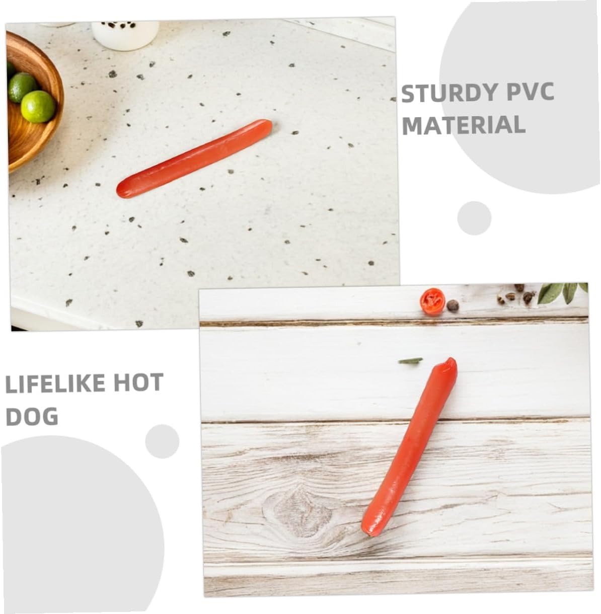 Applicazioni versatili: ideali per l'educazione alimentare, le vetrine o come giocattoli fantasiosi per , questi modelli di salsicce per hot dog stimolano la creatività, hot dog simulato, cibo finto per eventi Dettagli realistici: questi modelli di hot dog e salsicce finti offrono un aspetto altamente realistico, ideali per migliorare le esposizioni dei ristoranti, il cibo finto per l'arredamento della casa, gli oggetti di scena per la fotografia Materiale robusto: realizzati in pvc, questi modelli sono facili da pulire e mantenere, garantendo che rimangano freschi a lungo, decorazioni per espositori da ristorante, espositori per hot dog simulati Dimensioni ideali: di dimensioni comode per un facile trasporto, la salsiccia per hot dog è perfetta per feste a tema alimentare o come oggetto di scena per fotografie, articoli da esposizione per ristoranti, decorazioni per feste Aspetto realistico: migliora l'arredamento del tuo ristorante con hot dog realistici che catturano l'attenzione e aggiungono un tocco di autenticità, cibo simulato, oggetti di scena da cucina realistici