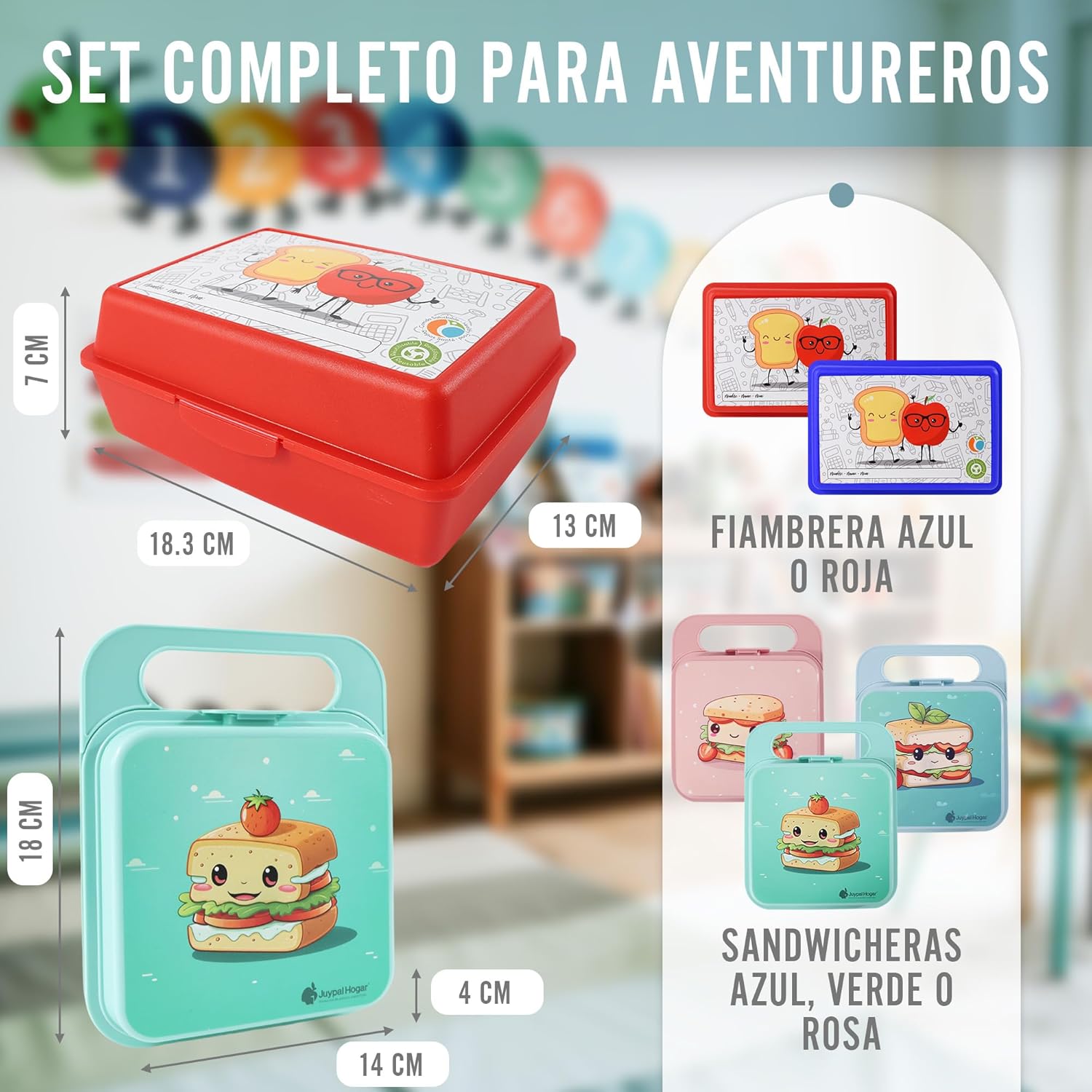 SET COMPLETO PER PICCOLI AVVENTURIERI: Trasforma ogni pranzo in un'avventura con il 3 porta sandwich dal design colorato e divertente, è ideale come porta merenda bambini scuola. MATERIALE SICURO E DUREVOLE: Fabbricato in Spagna, il portamerenda bambina scuola è senza BPA e adatto per lavastoviglie. Progettato per resistere all'uso quotidiano, è perfetto anche come porta snack bambini per ogni esigenza. PRANZI SANI E DIVERTENTI: Promuovi un'alimentazione equilibrata con il nostro portamerenda bambino scuola, ideale per trasportare panini. DESIGN ATTRAENTE E PRATICO: I porta sandwich bambini hanno un manico per facilitare il trasporto e un design infantile divertente. E visivamente attraente e perfetta per i più piccoli, rendendo ogni pranzo speciale. FACILE DA USARE: Il porta merenda bambino è facile da aprire e chiudere, perfetto per le mani piccole dei bambini. Ideale da portare a scuola, in gita, al parco o in spiaggia.