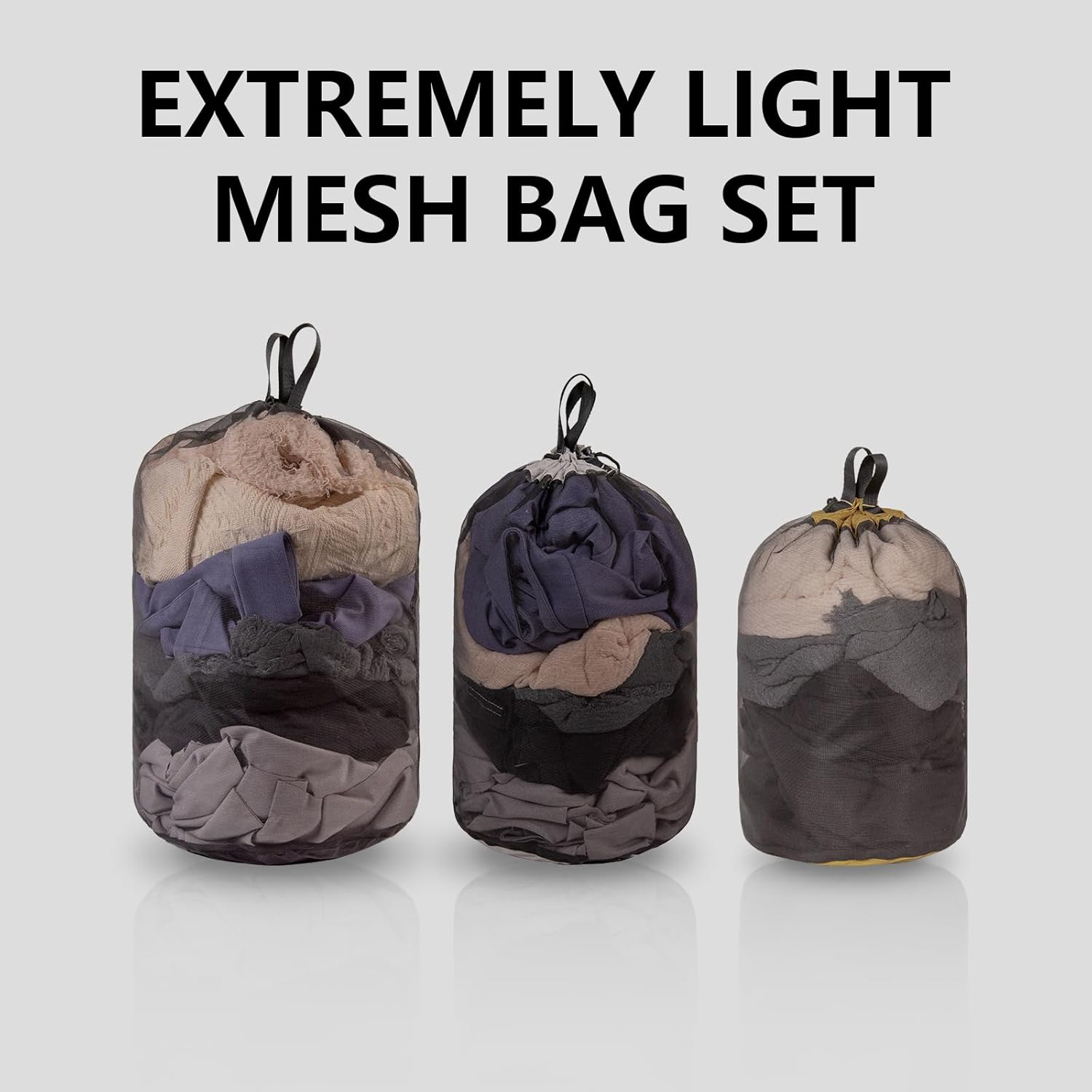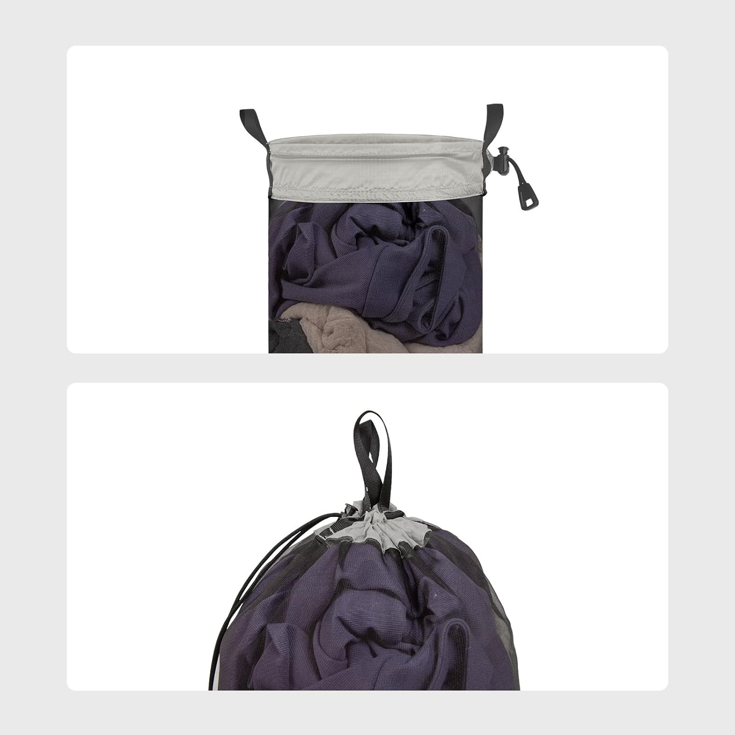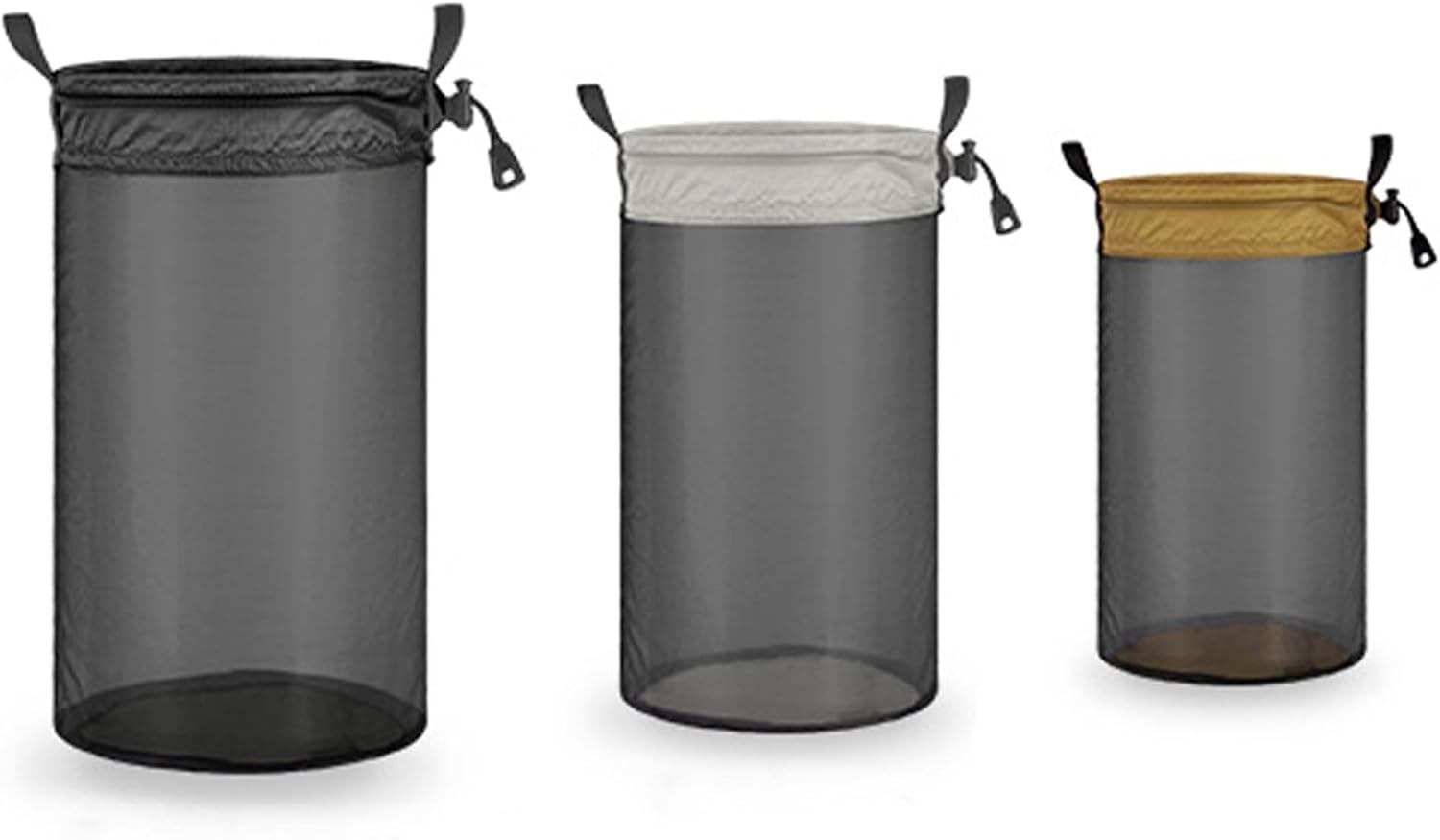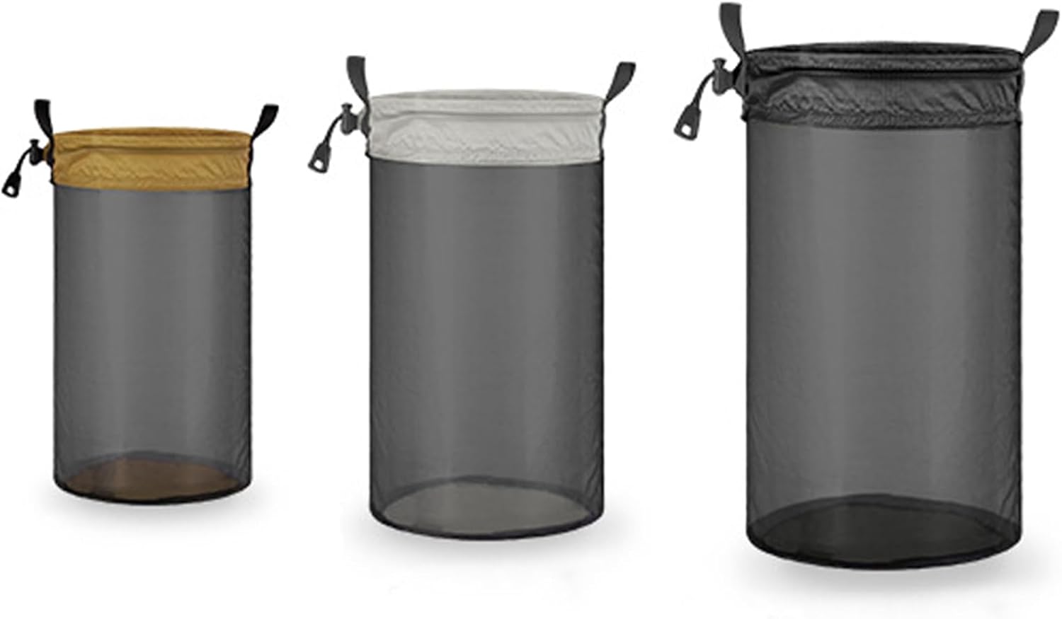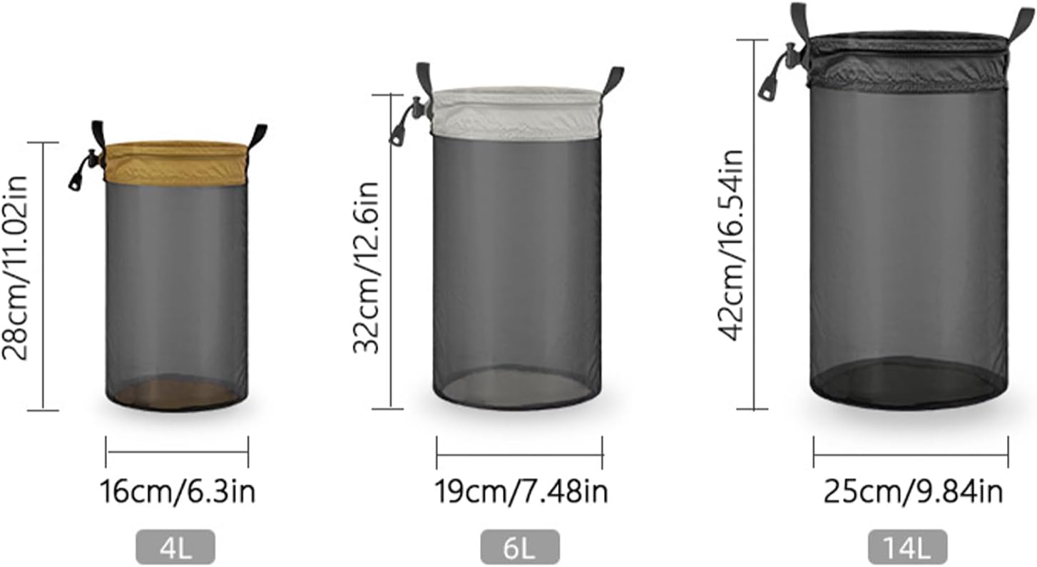 Realizzati in rete di nylon, questi sacchi offrono un'eccellente visibilità del contenuto, mentre la custodia con coulisse in nylon garantisce un funzionamento regolare. Ideale per viaggi, escursioni e atleti all'aria aperta che necessitano di una soluzione di imballaggio efficiente per le loro attrezzature e vestiti. Con cuciture doppie e punti di carico rinforzati, questo set garantisce durata e sicurezza per la tua prossima avventura. Questi sacchetti sono perfetti per l'uso in zaini, valigie o persino armadi e aiutano a organizzare strati di abbigliamento, piccoli e alimenti durante il campeggio o le vacanze. Questa borsa portaoggetti in rete è progettata per l'organizzazione ottimale di strumenti bagnati e asciutti e quindi un accessorio indispensabile per qualsiasi avventura all'aperto o in viaggio.
