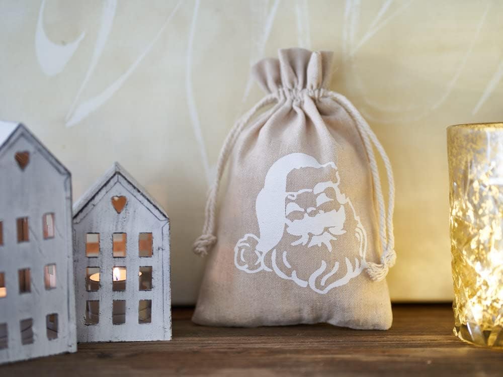Borsa in lino con faccia bianca di Babbo Natale