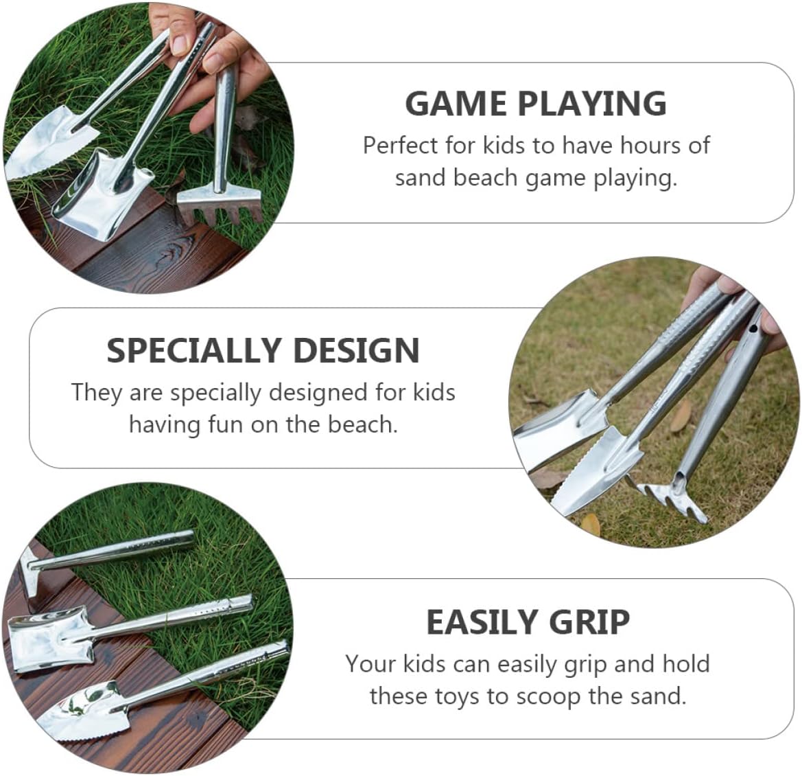 Da giardinaggio in acciaio inossidabile: per i vogliono trascorrere ore sulla spiaggia, da giardinaggio per piante In acciaio inossidabile: realizzata in acciaio inossidabile spesso , tenacità, forte e, giocattoli sabbia creativi Accessori da giardinaggio: facili da afferrare e raccogliere la sabbia per i , divertenti e interessanti, giocattoli estivi da spiaggia Giocattoli da spiaggia sabbia: squisita fattura, lucidatura fine, senza sbavature, sicuri da impugnare e utilizzare, appuntita Da giardinaggio pratici: appuntita, e rastrello, combinazione in , da utilizzare secondo , in acciaio inossidabile