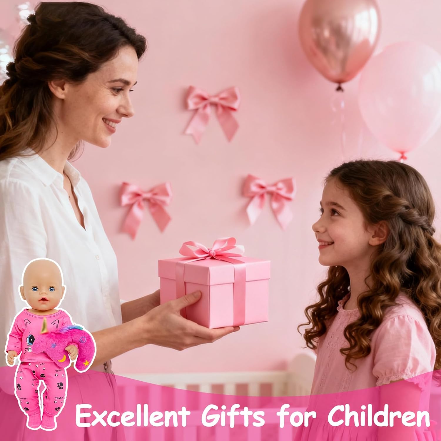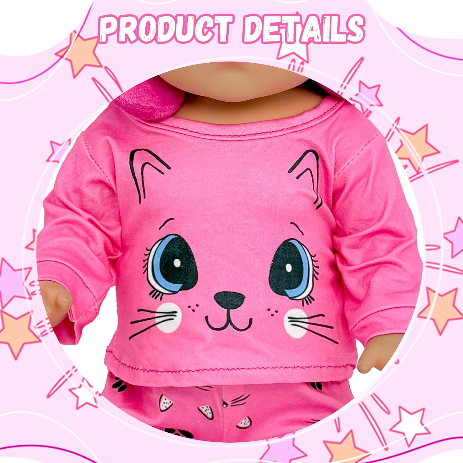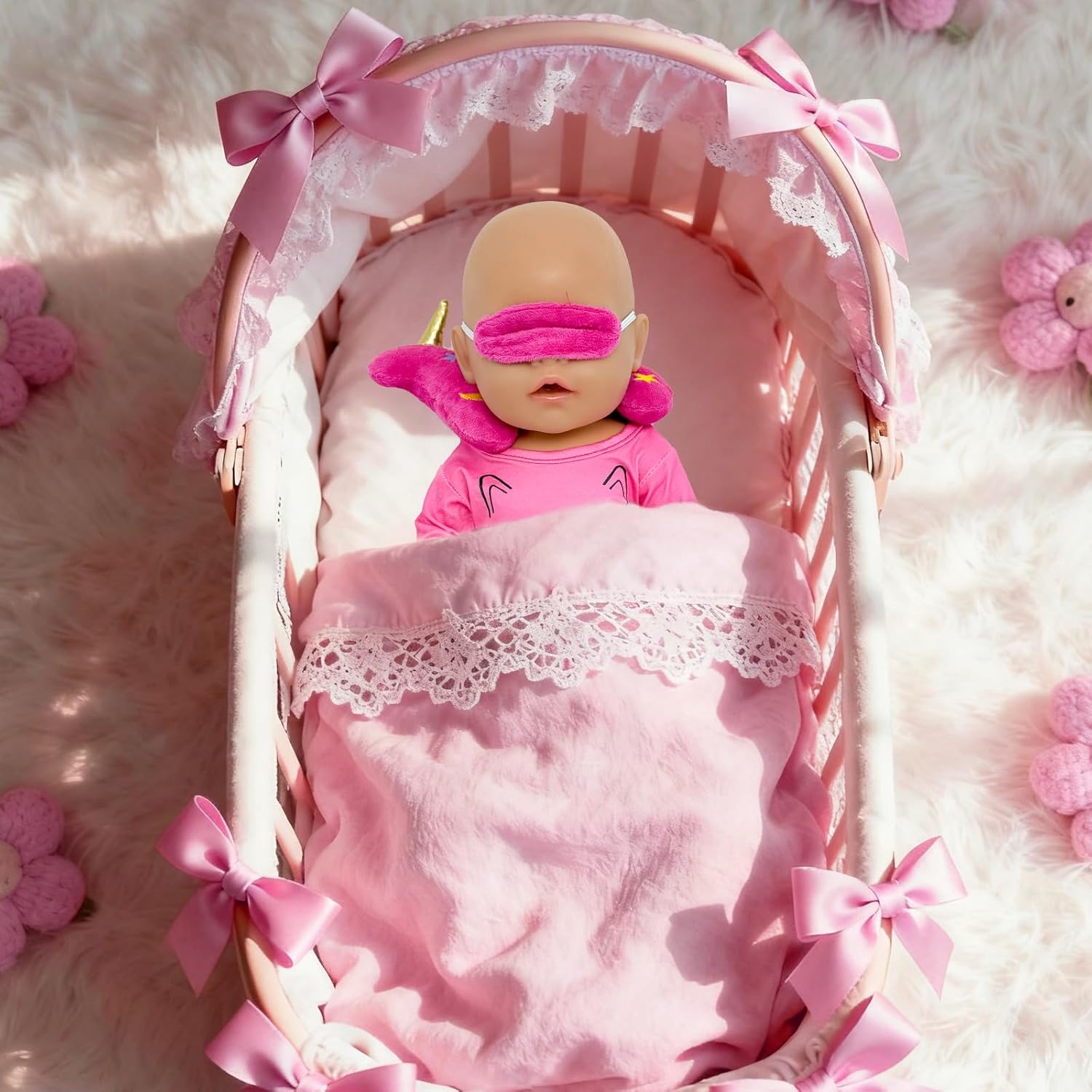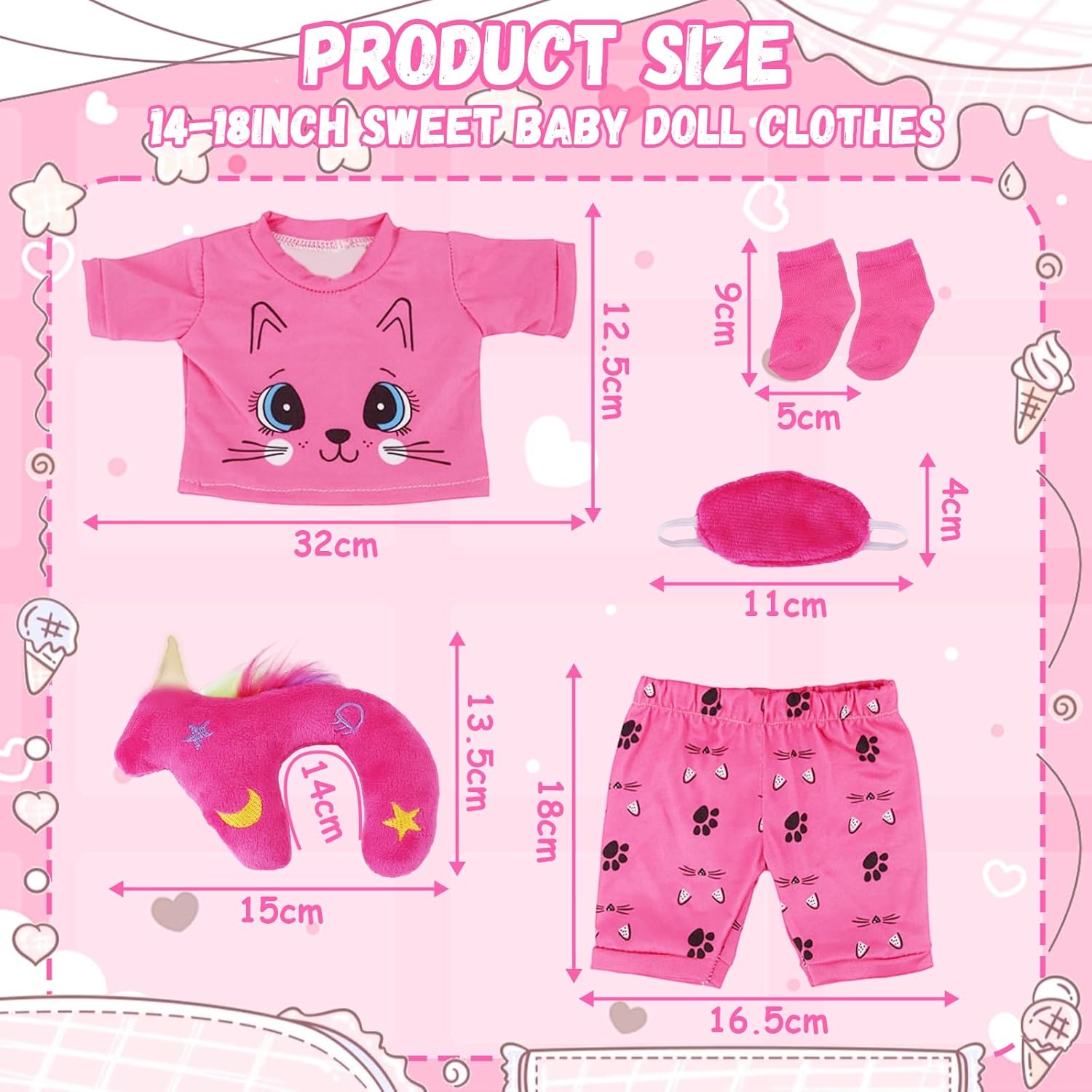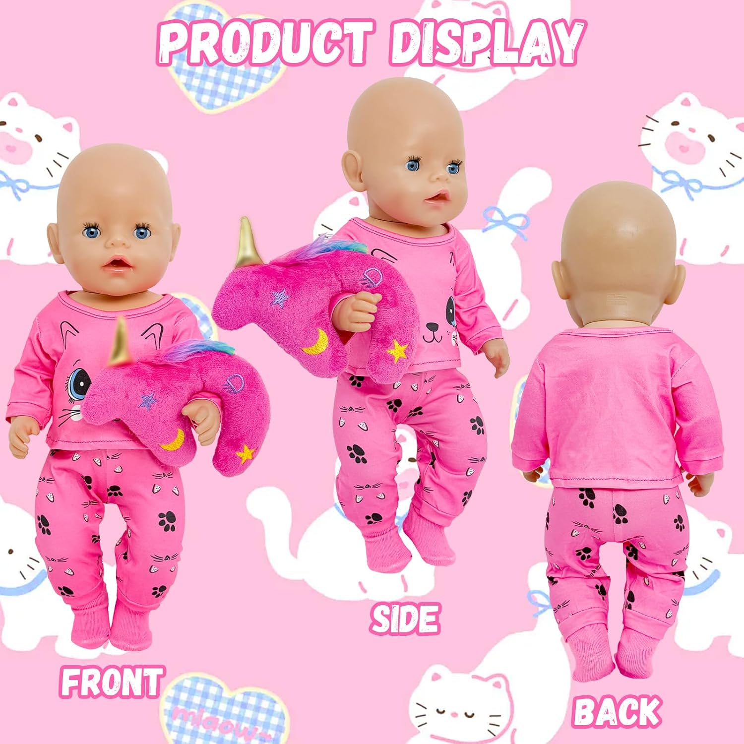 Pigiama da 30 – 45 cm, per bambole, set da 2 pezzi + maschera per gli occhi + cuscino a forma di U
