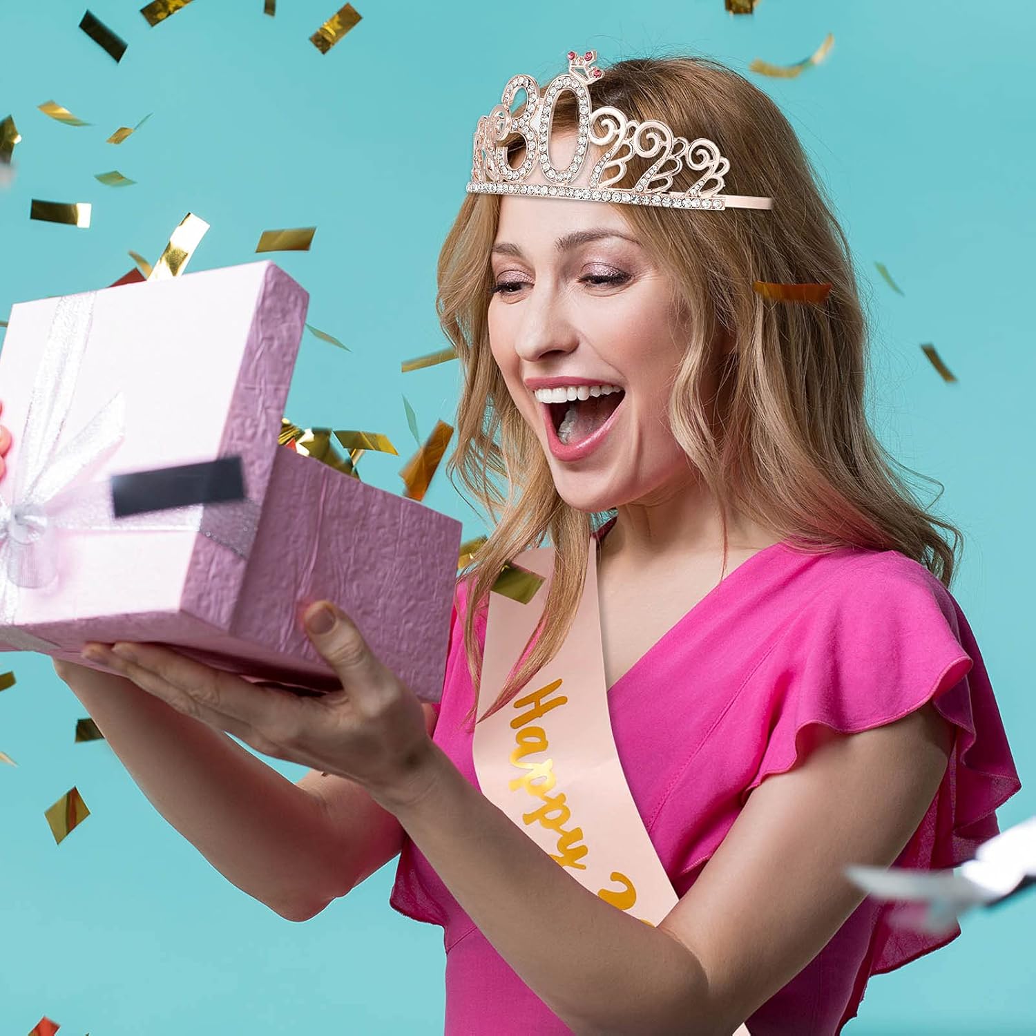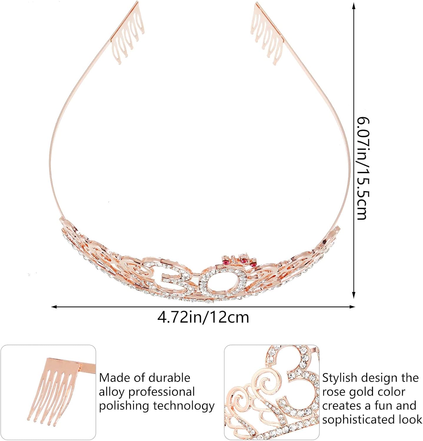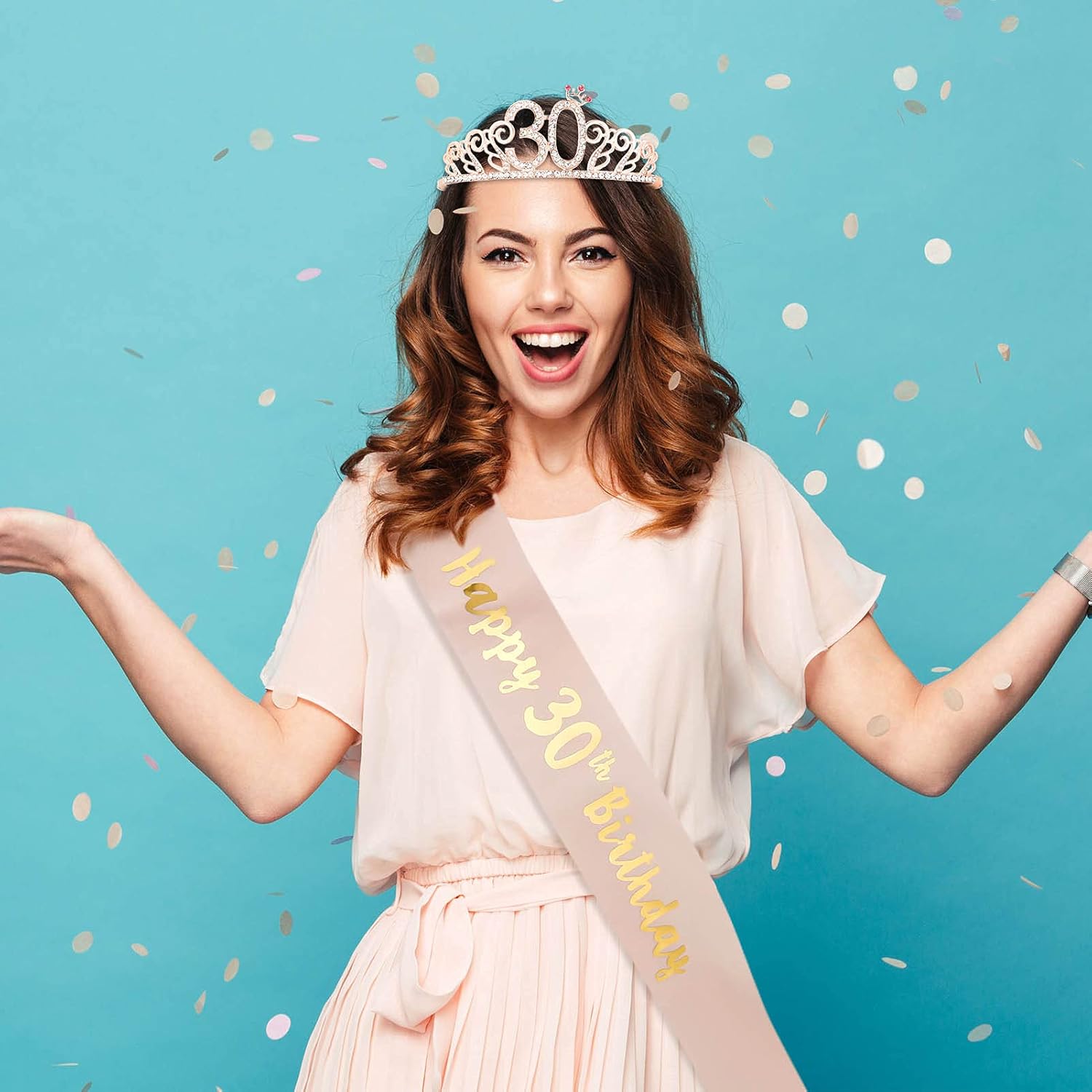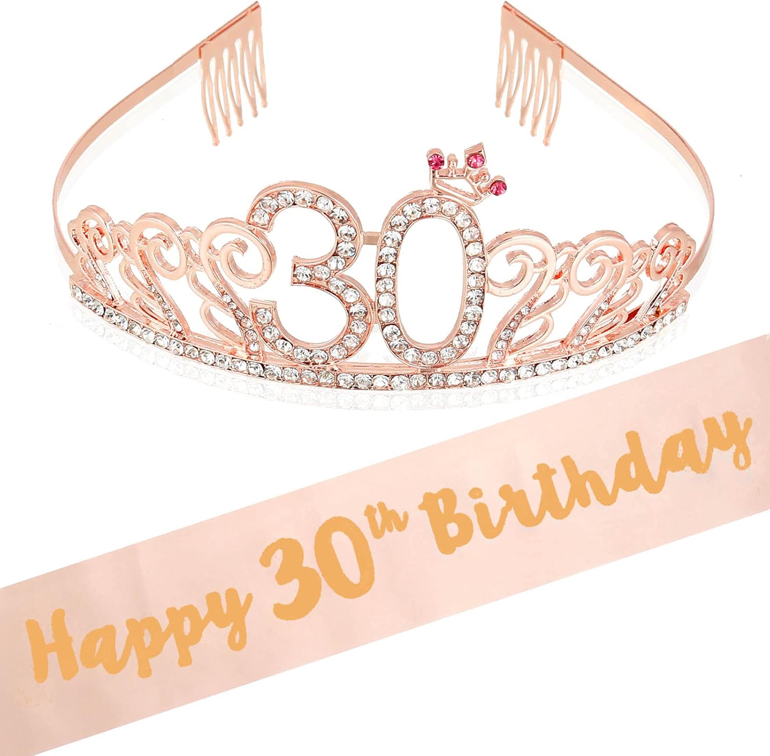 Kit compleanno donna – La confezione comprende 1 sciarpa di compleanno con scritta "Happy 30th birthday" e 1 corona in oro rosa del trentesimo compleanno. La perfetta combinazione di abiti e accessori di compleanno vi permetterà di distinguervi durante la festa di compleanno Materiali di alta qualità – Il materiale della corona compleanno 30 anni è composto da leghe metalliche di alta qualità e strass scintillanti. La cintura di compleanno è in raso morbido, comodo da indossare e riutilizzabile Corona di compleanno – La diadema di compleanno in oro rosa con strass brillanti conferisce eleganza e femminilità, consentendo di brillare nella folla e di guadagnare più complimenti. La progettazione del pettine permette alla corona di essere portata saldamente sulla testa e non cade facilmente Cintura di compleanno – La sciarpa per compleanno rosa è in raso e stampata con una foglia d'oro "Happy 30th Birthday" per festeggiare la festa di compleanno di 30 anni. La cintura misura 160 cm di lunghezza, la dimensione è facile da regolare, adatta a tutti i tipi di abbigliamento Decorazione di compleanno – gli accessori per costume di compleanno possono essere utilizzati come accessori di moda per la fotografia di festa di compleanno, rendendo la vostra festa di compleanno piena di piacere. Sono anche un regalo perfetto per gli amanti, amici, sorelle, ragazze, donne, ecc.