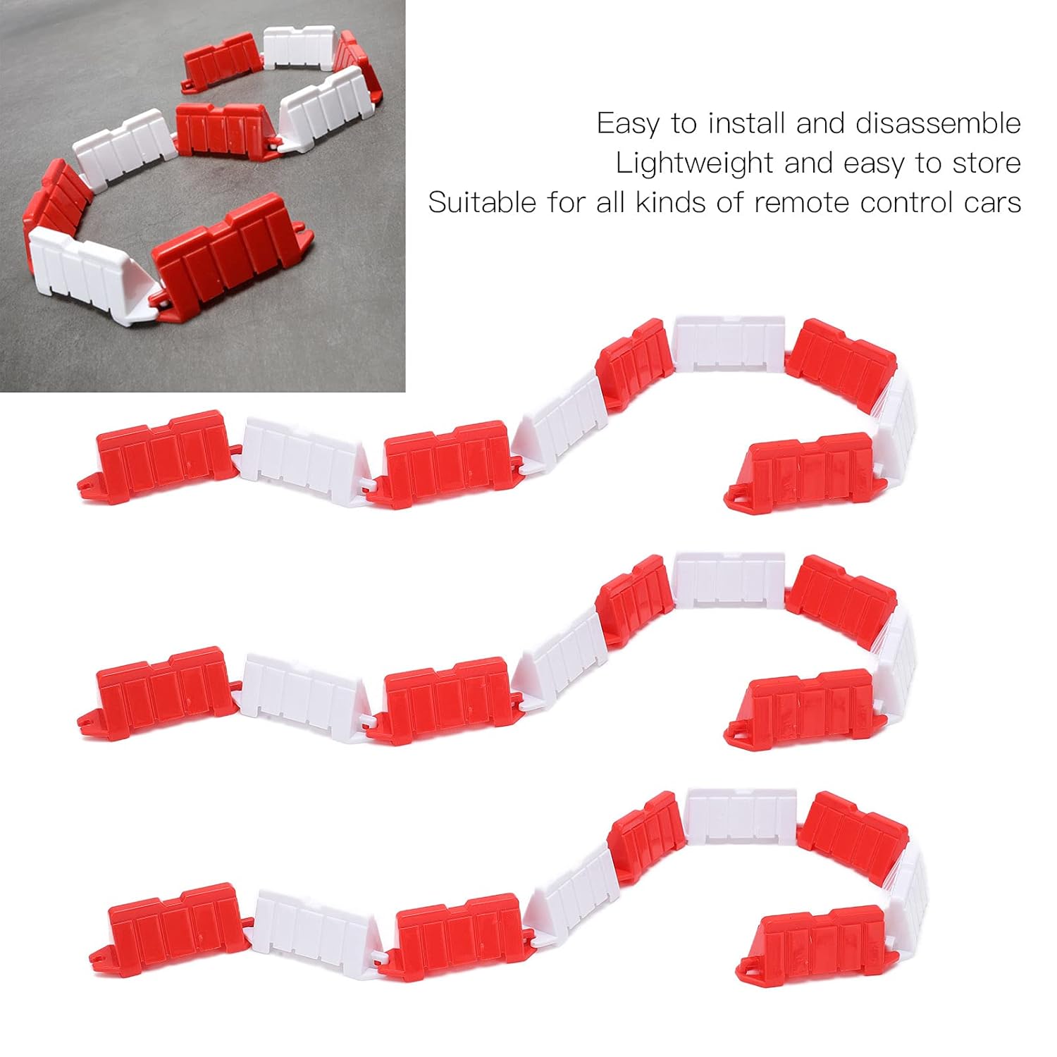 [COSTRUZIONE DUREVOLE E ROBUSTA] Realizzati in plastica di alta qualità, questi blocchi stradali RC sono costruiti per durare. Progettati per resistere a intense sessioni di drifting, sono resistenti ai danni e offrono una lunga durata. sia per uso interno che esterno, queste barriere garantiscono che le sessioni di allenamento con l'auto RC siano ininterrotte. [PACCHETTO CONVENIENTE AD ELEVATA QUANTITÀ] Con 30 pezzi inclusi nel set non rimarrai mai a corto di blocchi stradali durante i tuoi esercizi di drifting. L'ampia quantità consente configurazioni versatili dei binari e il facile processo di installazione e smontaggio rende conveniente riorganizzare il percorso secondo necessità. [LEGGERO E PORTATILE] Questi mini blocchi stradali sono di piccole dimensioni e leggeri, il che li rende incredibilmente facili da trasportare e trasportare. Che tu stia andando a casa di un amico o su una pista locale, puoi portarli ovunque. Il loro design compatto garantisce che occupino spazio minimo offrendo al contempo le massime prestazioni. [COMPATIBILITÀ UNIVERSALE] Compatibili con un'ampia gamma di auto telecomandate, questi blocchi stradali sono destinati agli esercizi di drifting. Che tu abbia un'auto RC di livello principiante o professionale, queste barriere miglioreranno le tue sessioni di allenamento e ti aiuteranno a padroneggiare le tue abilità di drifting. [DESIGN E PRESTAZIONI PREMIUM] Realizzati utilizzando sofisticate tecnologie di produzione, questi blocchi stradali RC vantano un aspetto raffinato e prestazioni eccellenti. I vivaci colori rosso e bianco aggiungono un tocco di stile alla tua pista, mentre il design elegante assicura che rimangano al loro posto durante le derapate ad alta velocità.