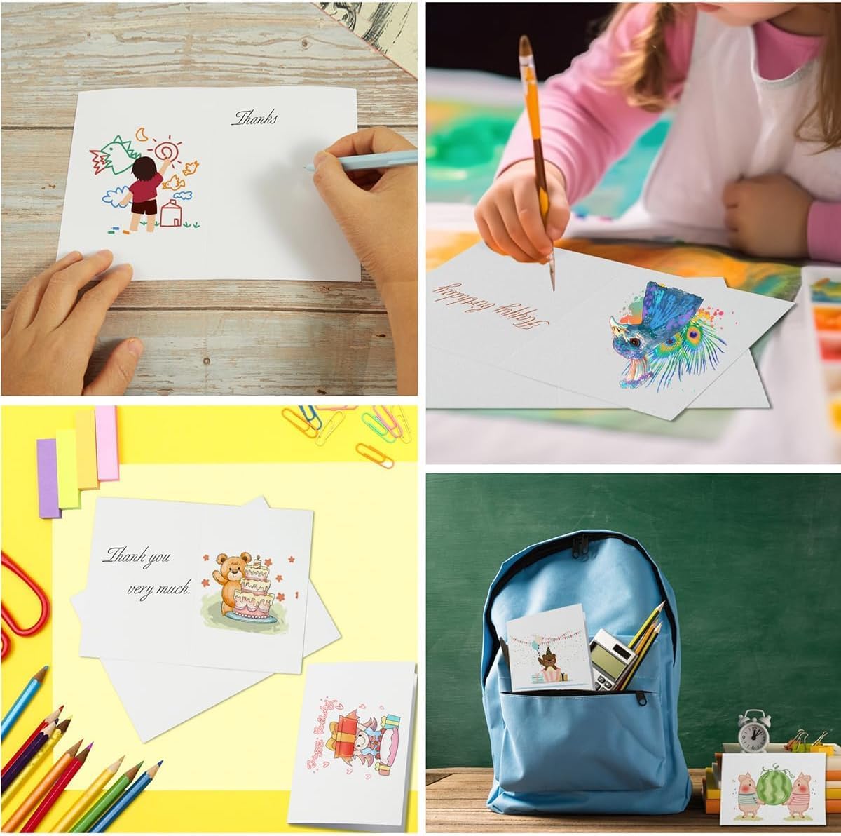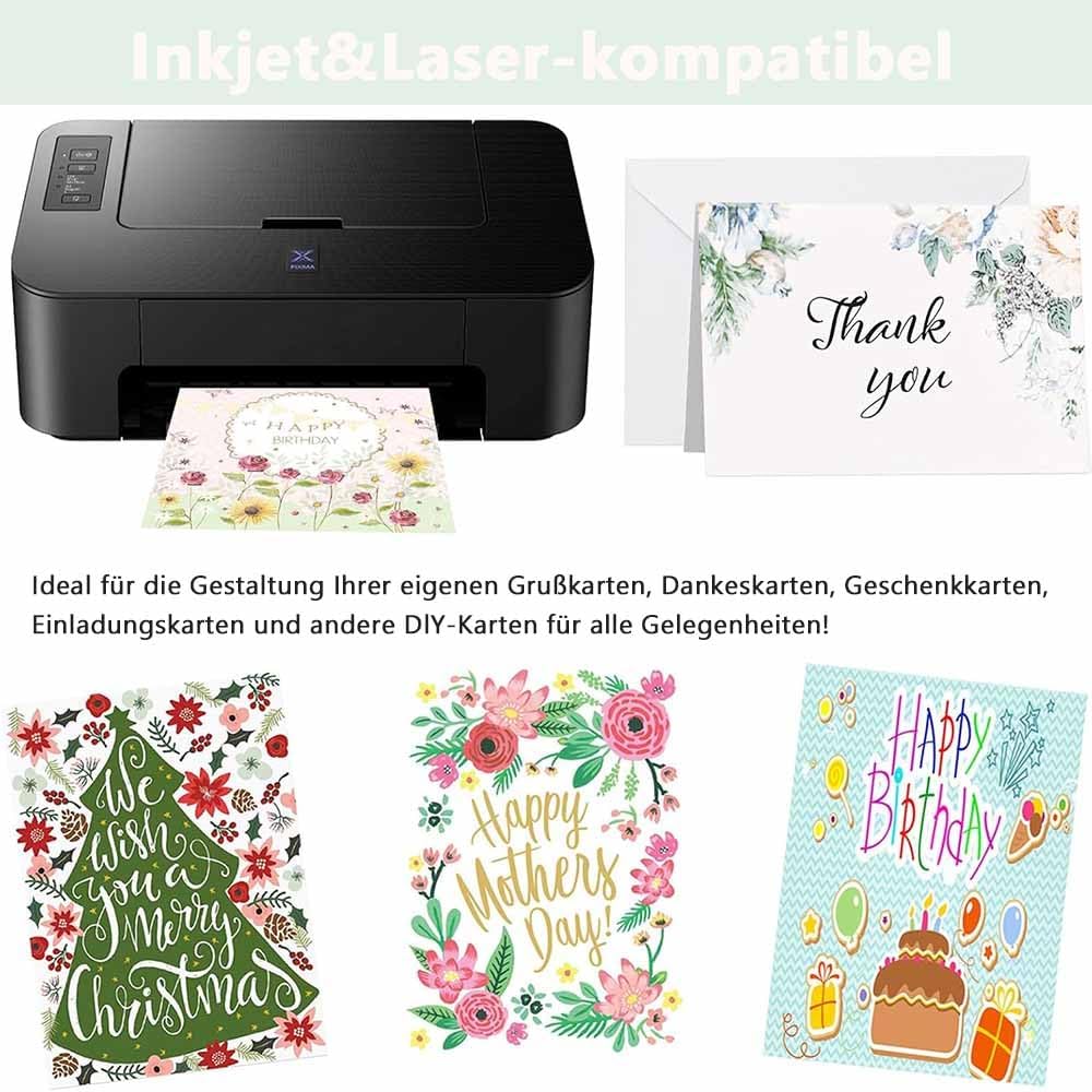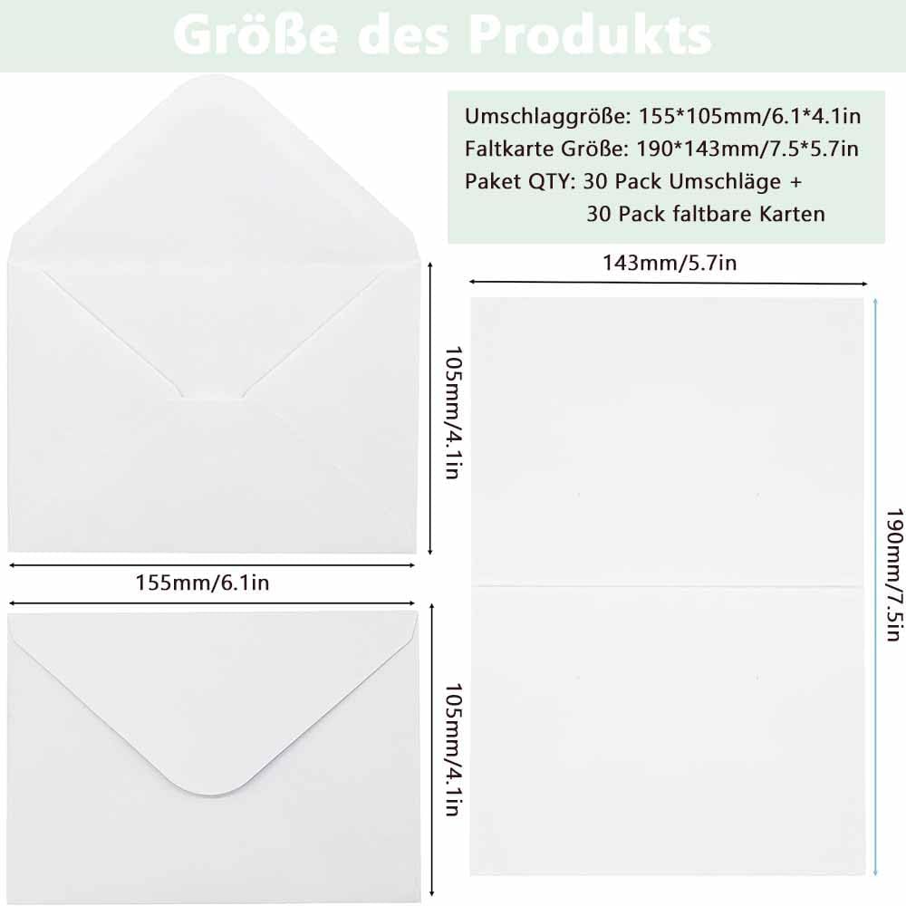 Combinazione perfetta: riceverete un set di 30 biglietti bianchi e 30 buste da lettera abbinate bianche. I biglietti sono pre-piegati e le buste non sono autoadesive, ma è possibile acquistare una colla a busta che corrisponde alle vostre preferenze personali Libera la tua creatività: questi biglietti vuoti con busta sono perfetti per il fai da te, puoi dare libero sfogo alla tua immaginazione, scrivere il testo di cui hai bisogno, puoi creare i biglietti in qualsiasi motivo, oppure scrivi i tuoi migliori auguri sulle buste e sui biglietti e goditi le tue creazioni. Dimensioni: la dimensione della busta è di 15,5 x 10,5 cm, biglietti pieghevoli vuoti: 19 x 14,3 cm, piegati: 14,3 x 9,5 cm Materiale dei biglietti spessi: i biglietti pieghevoli sono realizzati in cartone spesso, non si danneggiano facilmente, ogni biglietto è tagliato in modo pulito e con la superficie è liscia, facile da scrivere. Adatto per tutte le occasioni: le buste con biglietti possono essere utilizzate per inviti, biglietti di auguri, biglietti regalo, biglietti di compleanno, ringraziamenti, ecc., non solo per compleanni o matrimoni e feste di Natale, ma anche per uffici, scuole, uffici postali, negozi, ecc