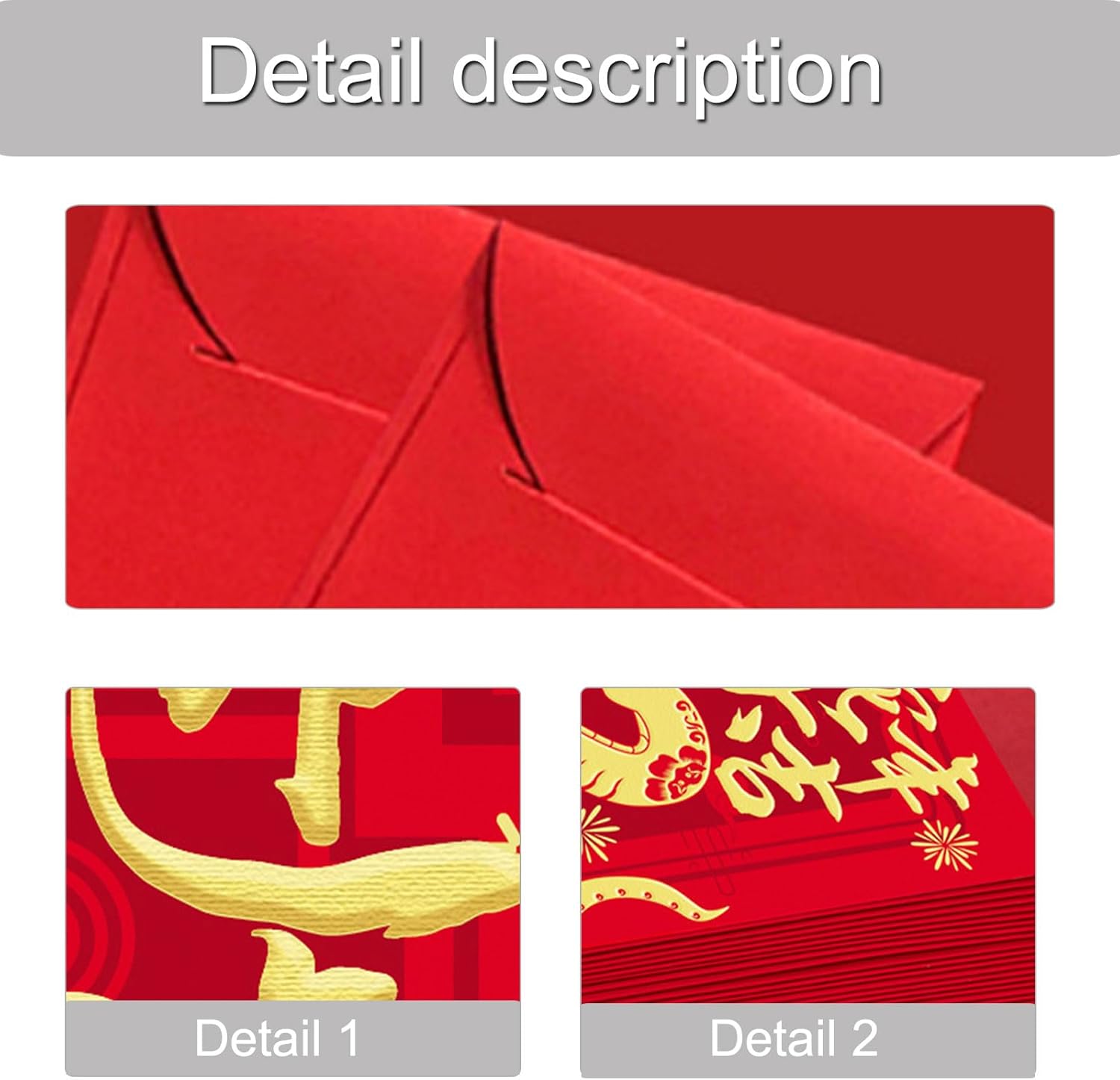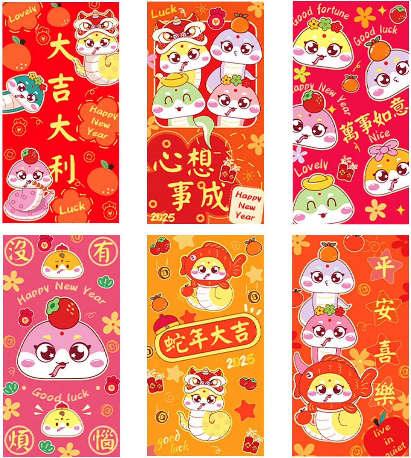 Questi pacchetti di rossore sono adatti per varie occasioni, dalle riunioni di famiglia agli eventi aziendali, rendendoli essenziali per qualsiasi celebrazione. Ogni confezione contiene sei buste di carta, progettate per resistere a strappi e usura, assicurando che i tuoi regali siano presentati in stili impeccabili. Fatta eccezione per regalare denaro durante il festival di primavera, ma queste buste rossore servono anche come decorazioni per migliorare l'atmosfera festiva in case e uffici. Festeggia l'anno del serpente con le nostre buste rossore di Capodanno 2025 splendidamente realizzate, una miscela di tradizione e modernità. Adatto per famiglie e soci d'affari che desiderano condividere la benedizione dell'anno del serpente con un tocco di eleganza.