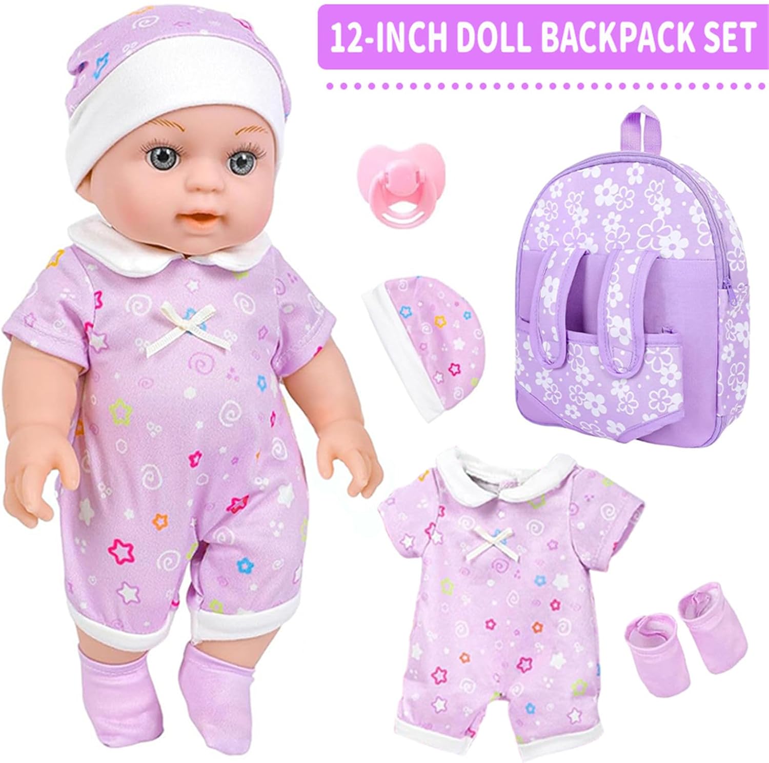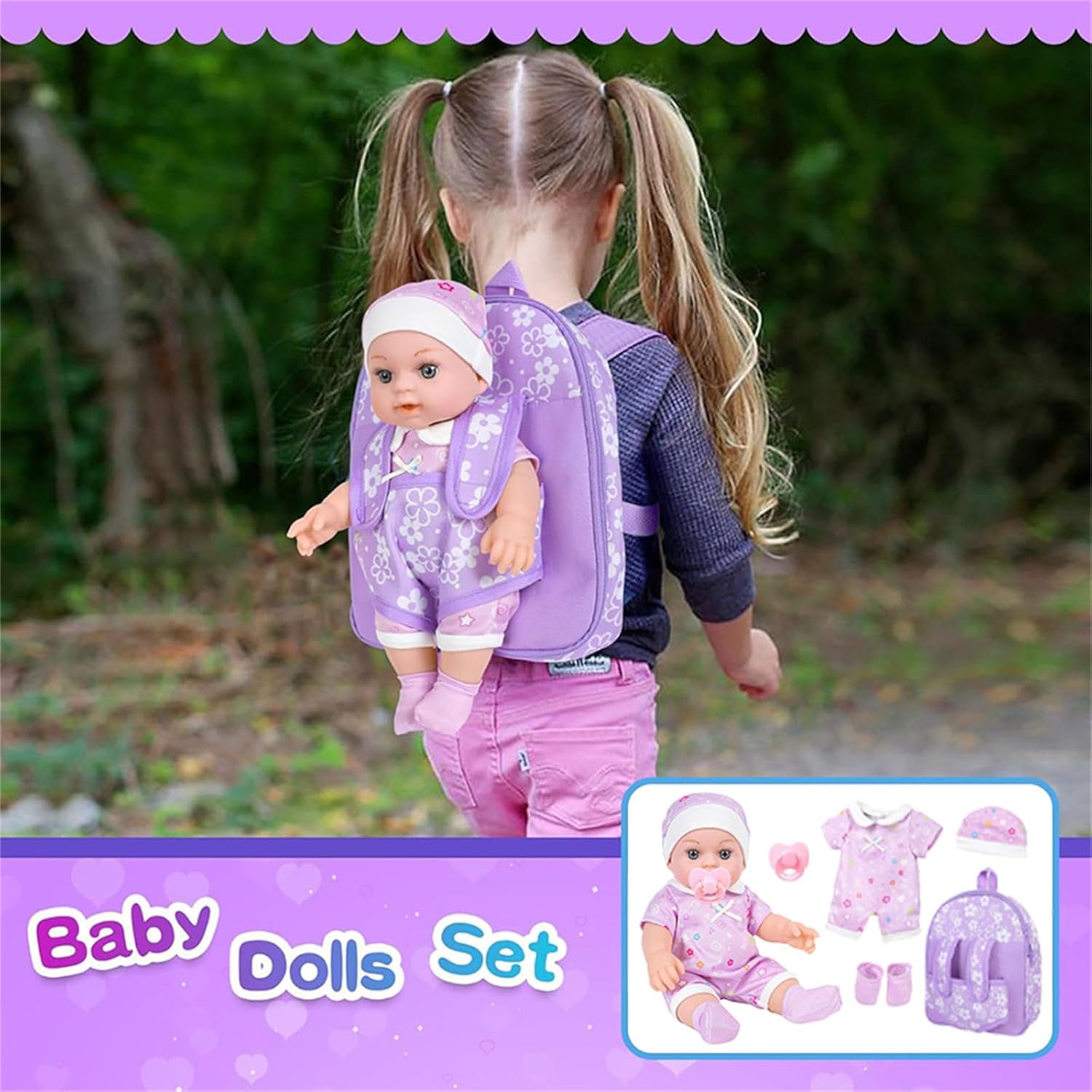 Con vestiti e accessori come ciuccio e zaino, questi set di bambole offrono infinite possibilità per avventure di gioco di ruolo creative. Perfette per varie occasioni come casa, asili nido e asili nido, queste bambole aggiungono calore e divertimento a qualsiasi ambiente, ottima aggiunta ai momenti di gioco. Scopri il divertimento dell'allattamento con le nostre bambole da 12 pollici che include una tracolla con motivo floreale magico, perfetta per un gioco realistico con la morte e per migliorare le capacità immaginative del tuo bambino. Utilizza plastica morbida e tessuto selezionati, simili alle caratteristiche delle bambole. morbido e facile da pulire e mantenere per garantire un tempo di gioco duraturo. Questo set per bambole per bambini dai 3 anni funge da eccellente amico e promuove lo sviluppo emotivo e le abilità sociali dei bambini