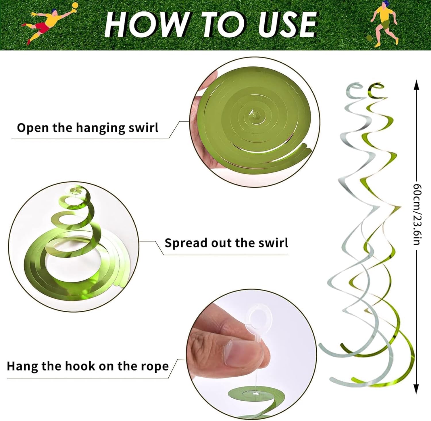 Adatto per decorare pareti, mobili, stanze, ingressi, negozi e molto altro ancora Ottimi oggetti di scena per eventi sportivi, eventi sportivi a tema e gioco Inizia la tua festa con la decorazione, rendi la tua festa piena di vibrazioni sportive Realizzato in carta e PVC, sicuro, stabile, non facile da scoppiare improvvisamente e riutilizzabile Include 30 vortici da appendere, adatti per la distribuzione di decorazioni sportive in famiglia, amici o eventi scolastici per creare un'atmosfera emozionante
