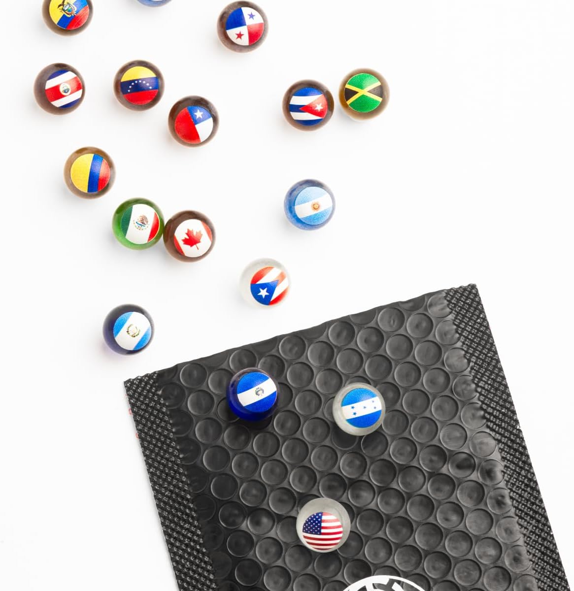 🇪🇸 Small World Collection Collezione di Bandiere del Mondo - Collezionale! 🌎 10 biglie con bandiera casuale per sacchetto x 3 sacchetti x 3 sacchetti = 30 biglie per ordine 🫧 Confezione a bolle d'aria per protezione 🏁 Ideale per le corse di biglie e le gare di biglie 📏 Misura 16 mm per giocare nelle piste di biglie VTECH, HAPE e altre piste di biglie