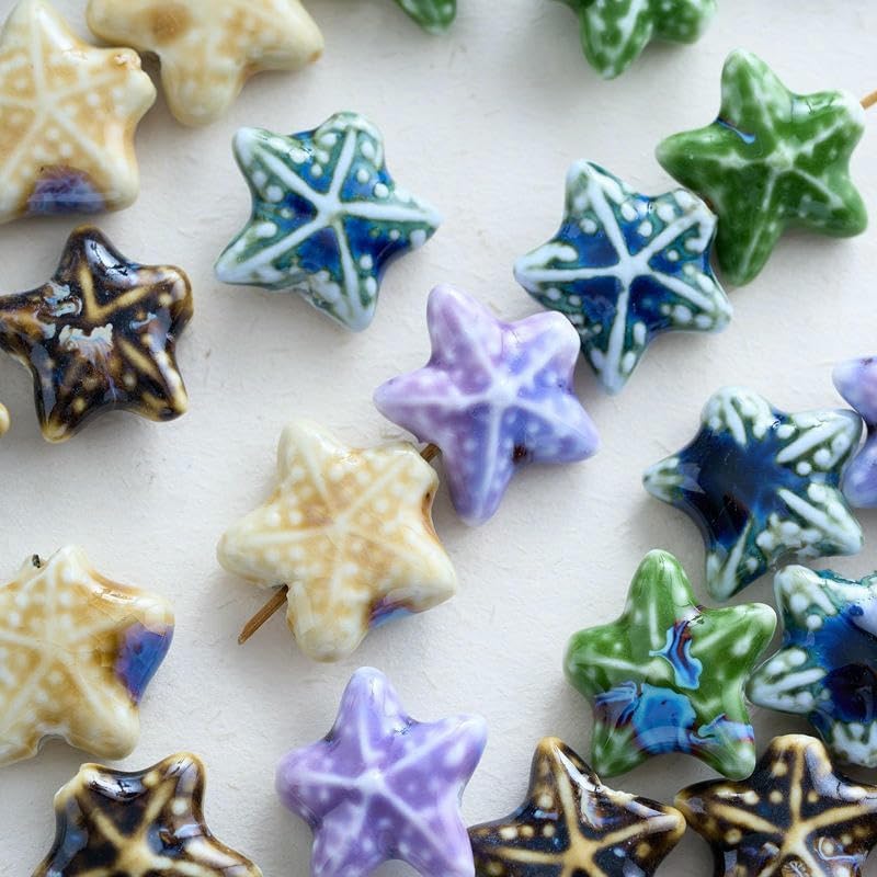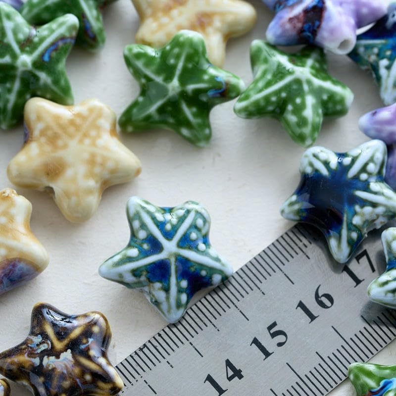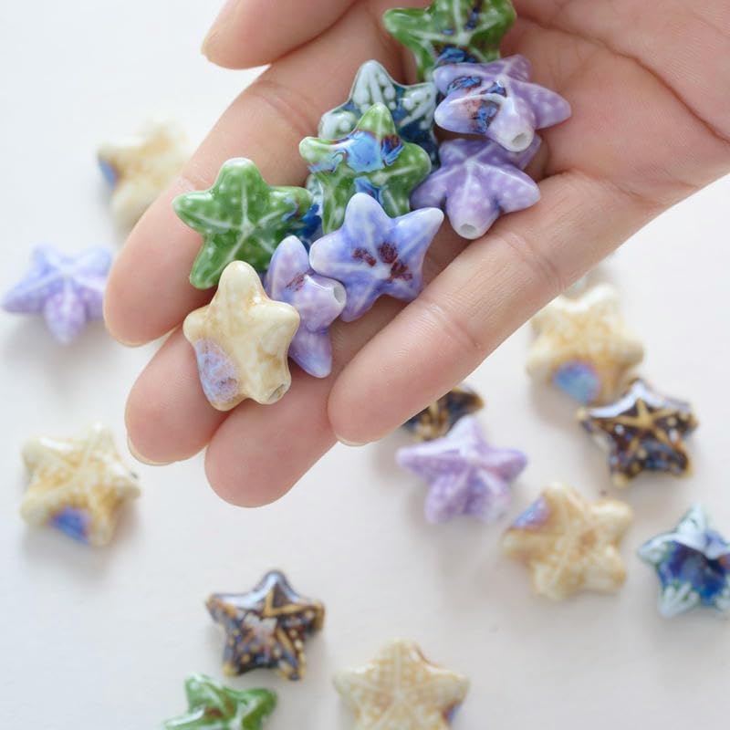 Perline sfuse in ceramica smaltata a forma di stella marina, dimensioni: 21 mm, diametro del foro: circa 2 mm, 5 colori, 30 pezzi/confezione Queste perle di porcellana a forma di stella marina fatte a mano sono realizzate in ceramica, hanno un aspetto liscio, non si rompono o sbiadiscono facilmente, sono comode da indossare e possono essere utilizzate a lungo Queste perline sfuse in ceramica a forma di stella marina sono perfette per essere utilizzate con cordini in pelle, corde di canapa, strisce di tessuto intrecciato e altri materiali per perline per arricchire le tue possibilità di design con perline Queste perle di ceramica colorate sono progettate a forma di stella marina, con colori intensi e un aspetto unico, perfette per braccialetti di perline per una vacanza al mare Queste graziose perline artigianali a forma di stella marina in porcellana sono perfette per realizzare braccialetti, collane, orecchini, ciondoli, portachiavi e vari lavori fai da te