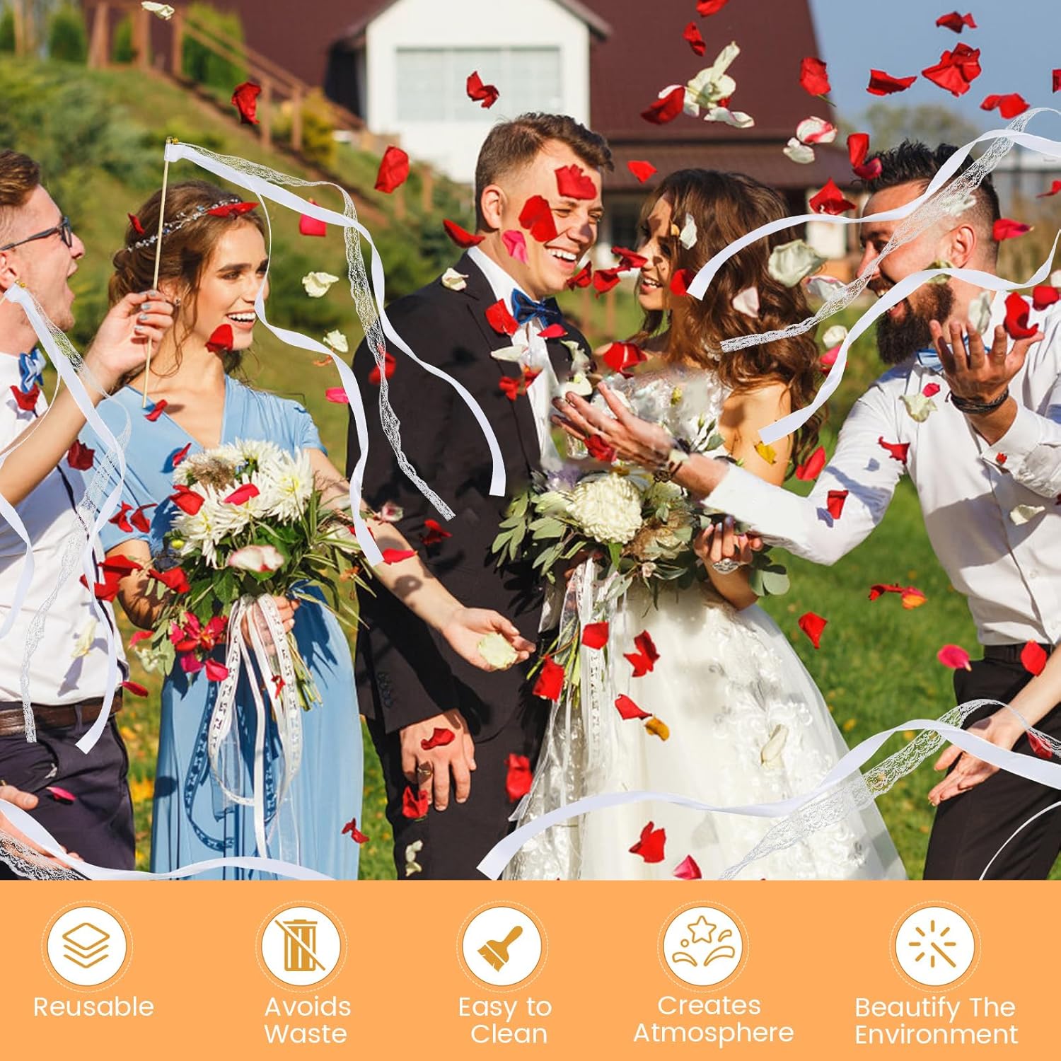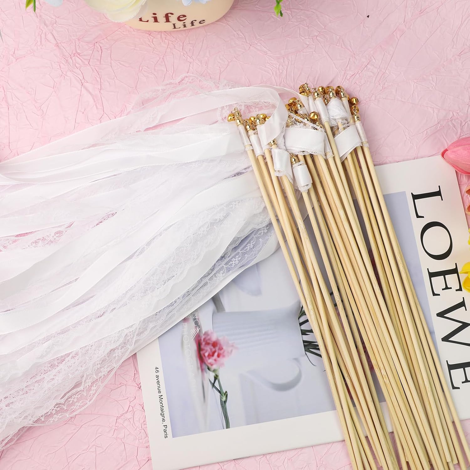 Set di 30 bacchette magiche: contiene 30 bacchette bianche con campana, appositamente progettate per celebrazioni come matrimoni e feste di compleanno. L'abbondante scorta di aste di nozze asta di seta copre le esigenze per diverse occasioni Materiale della cinghia in poliestere: le stelle filanti per matrimonio sono realizzate in poliestere, mentre le romantiche aste magiche offrono una consistenza liscia e raffinata e un'eccellente resistenza alle pieghe. È caratterizzato da colori vivaci e di lunga durata e mantiene sempre un aspetto attraente Esperienza multisensoriale: quando le stelle filanti ballano con bastoncini di legno, le fasce creano un elegante effetto fluido, accompagnato dal suono chiaro e melodioso delle campanelle. Allo stesso tempo, la parete bianca per matrimoni con campana offre una doppia festa per occhi e orecchie e garantisce immediatamente un'atmosfera allegra Solido e affidabile: le aste per matrimonio sono dotate di collegamenti rinforzati tra il nastro e il manico, garantendo che la campana magica per matrimonio rimanga saldamente fissata e non si stacchi durante le celebrazioni vivaci Sostituzione dei metodi tradizionali: i nastri romantici per matrimonio servono come moderno strumento di festa e sostituiscono i metodi tradizionali come la dispersione di coriandoli. stelle filanti con bastoncini di legno garantiscono un luogo ordinato e allo stesso tempo conservano l'effetto festivo