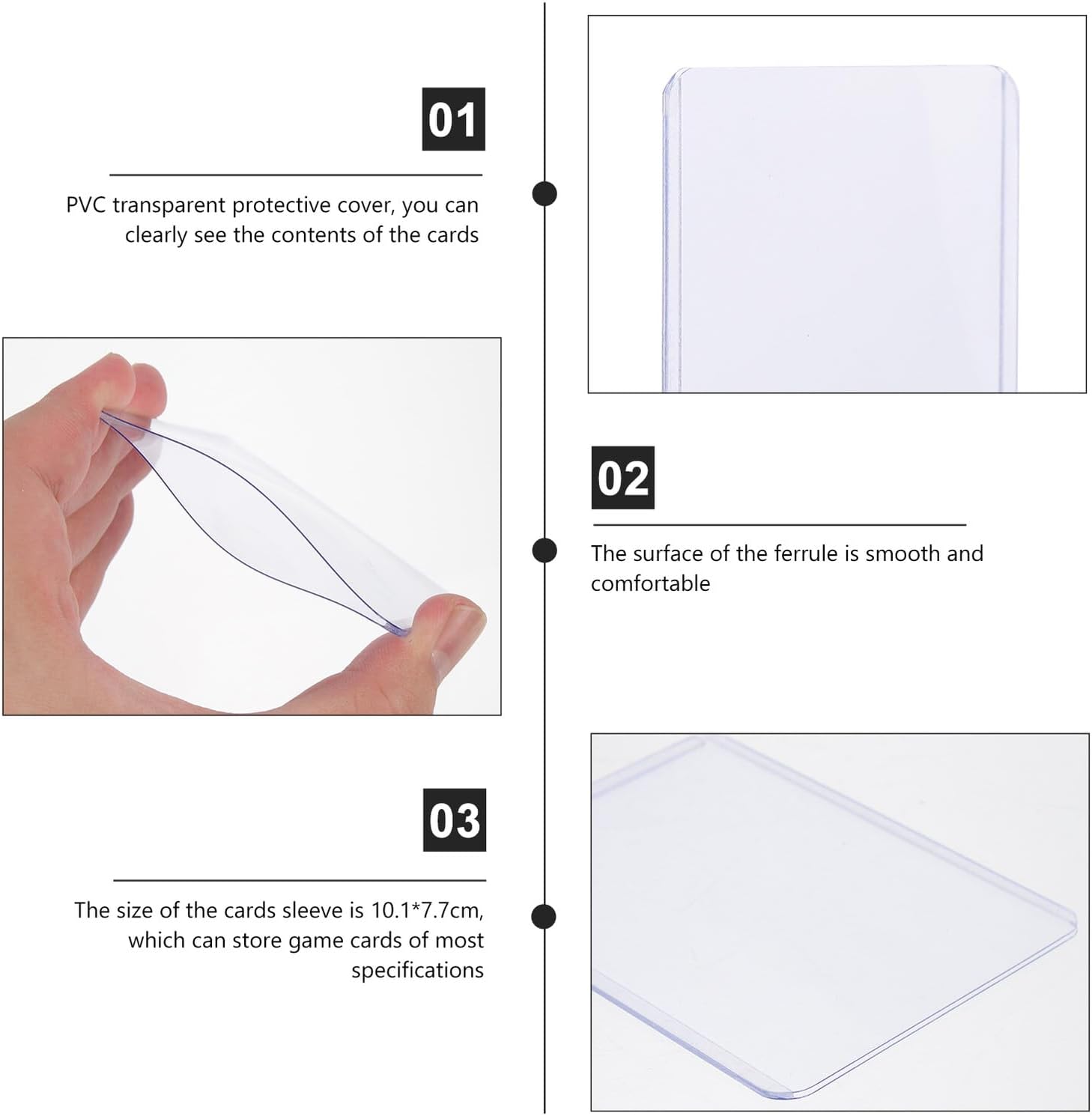 Custodia rigida per carte: può essere utilizzata per contenere le carte dei tuoi giochi da tavolo, cartoline, foto e così via, semplice e utile per te, custodie per carte da gioco Bustine protettive per carte: ottime bustine protettive, perfette per conservare e proteggere le tue carte da gioco da eventuali danni Bustine per carte: materiale in pvc di alta qualità, flessibilità ed eccellente durata, facili da usare, per bustine per carte da gioco Custodia per carte da gioco: il buon materiale e i materiali pieni rendono il prodotto più stabile e resistente alle cadute, custodia per carte da gioco Custodia protettiva per carte: multifunzionale e versatile, può essere utilizzata per conservare carte da gioco da tavolo, carte collezionabili, foto e così via, custodie protettive per carte