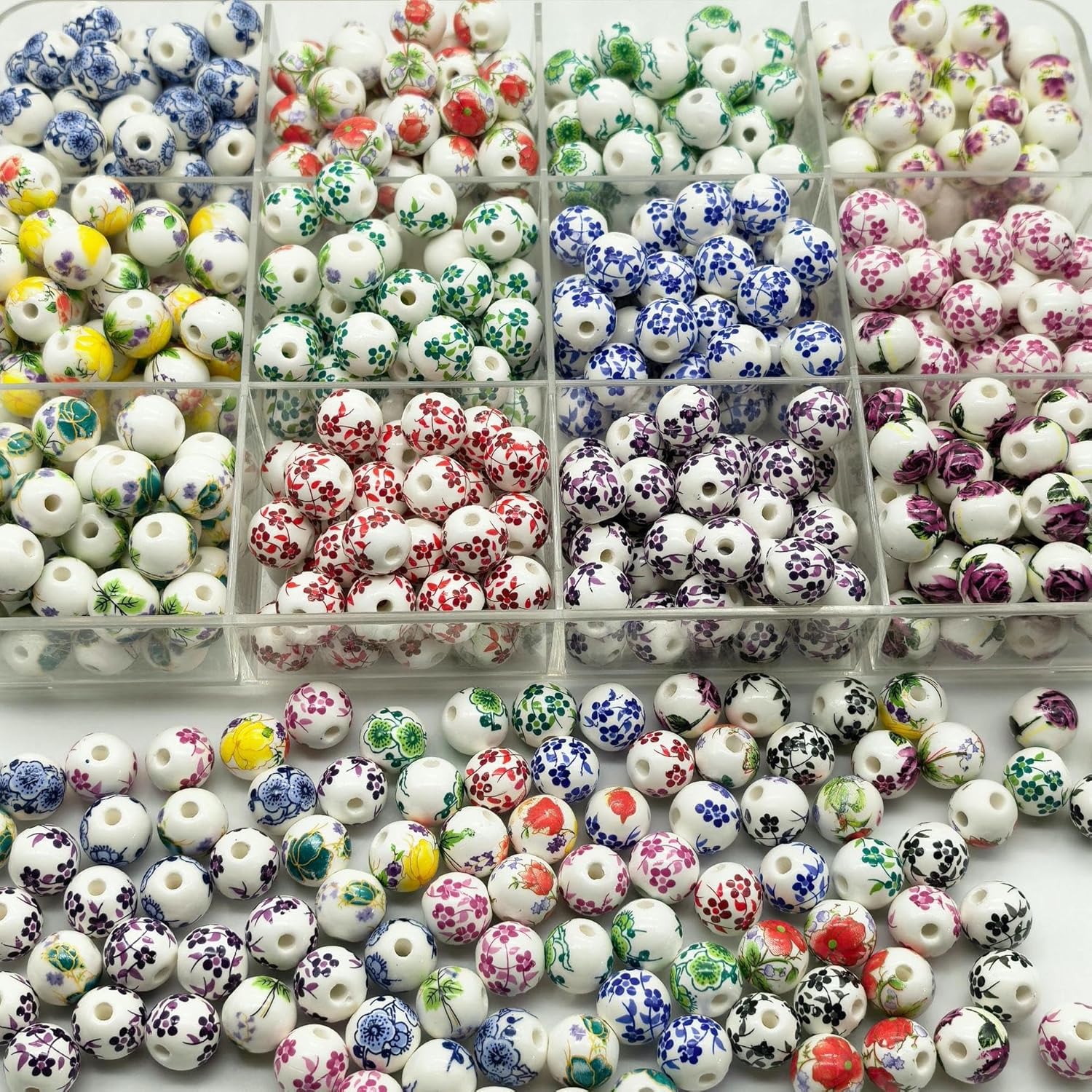 Perline sfuse in ceramica con stampa floreale e fori per un facile utilizzo, dimensione perline: 12 mm, diametro foro: 3 mm, 30 pezzi/confezione Queste perle in ceramica sono stampate con squisiti motivi floreali, i motivi sono retrò, affascinanti e squisiti e sono molto adatti per la creazione di perline Queste perle sono realizzate in ceramica, con il colore smaltato unico della porcellana, la superficie è lucida e liscia, non si rompe o sbiadisce facilmente ed è comoda da indossare Queste perle rotonde colorate in porcellana sono perfette per realizzare braccialetti, collane, orecchini, ciondoli, portachiavi, gioielli, lavori fai da te e decorazioni per la casa Queste perline sciolte in ceramica con stampa floreale sono perfette per essere utilizzate con cordini di cuoio, cordini di canapa, cordini intrecciati e altri materiali per perline per creare bellissimi braccialetti