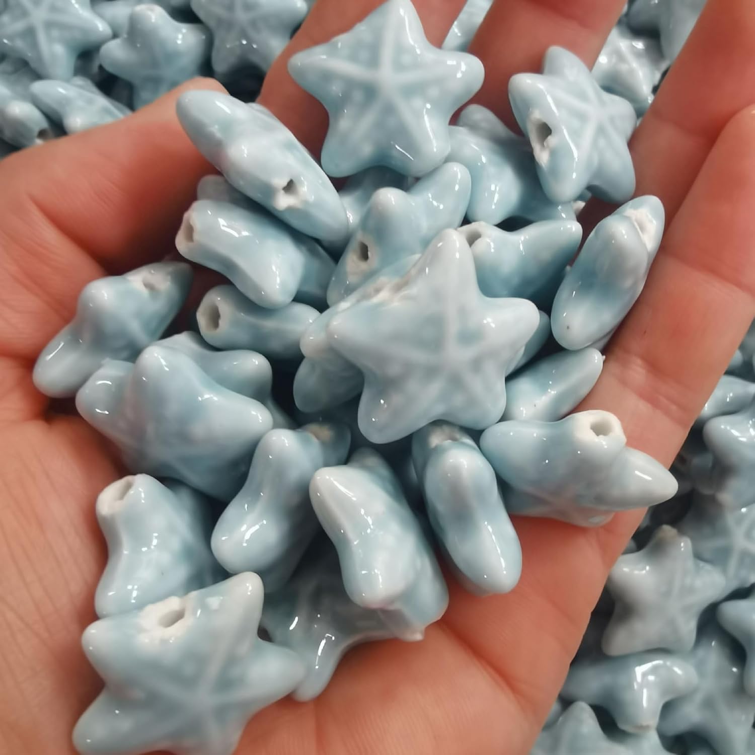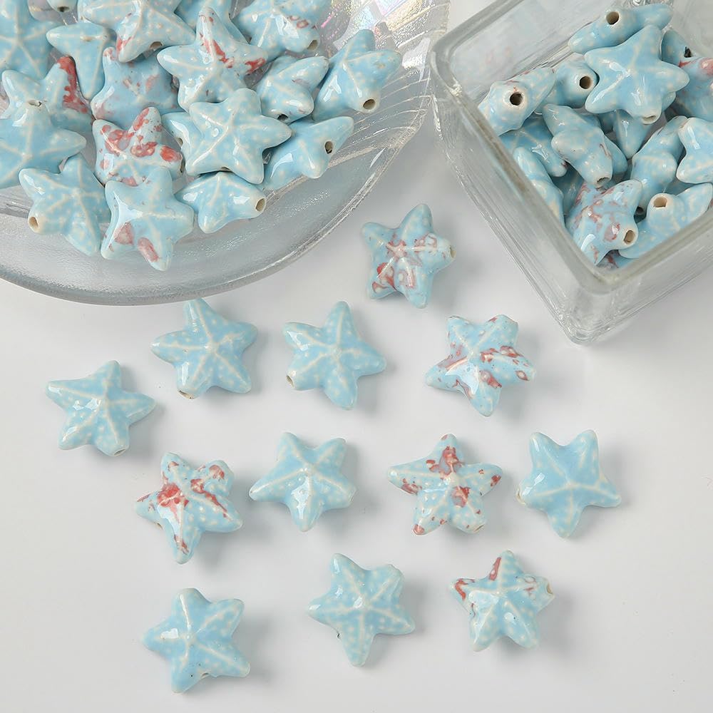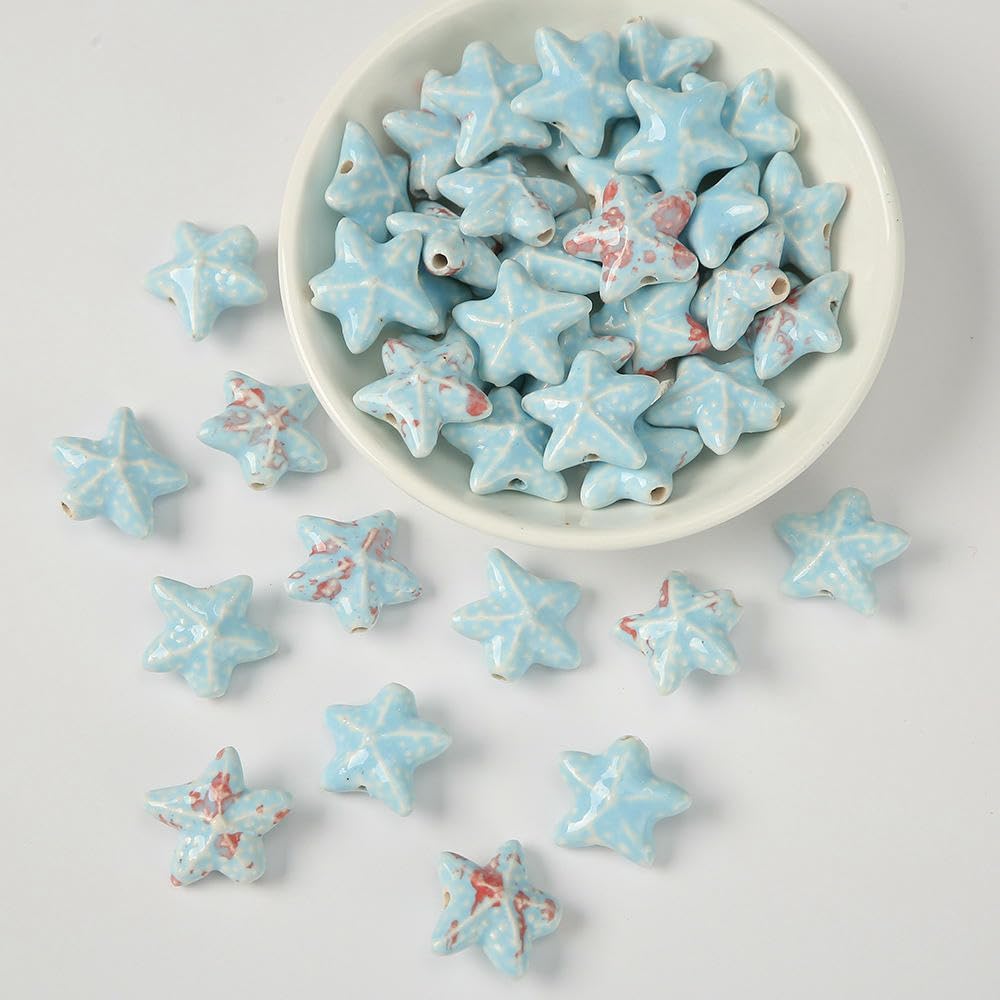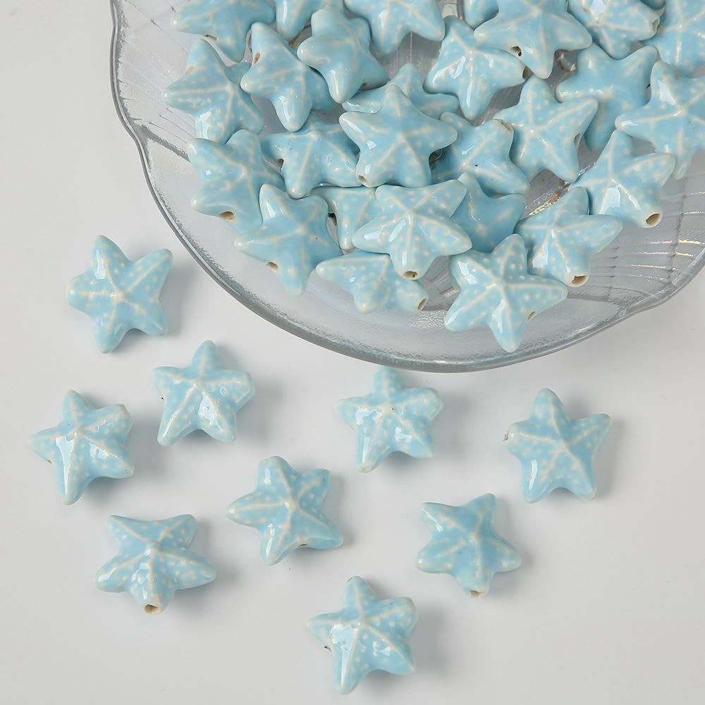 Perline sfuse in ceramica smaltata a forma di stella marina, dimensioni: 20 mm, diametro del foro: circa 2,5 mm, colore: blu, 30 pezzi/confezione Queste perle di porcellana a forma di stella marina fatte a mano sono realizzate in ceramica, hanno un aspetto liscio, non si rompono o sbiadiscono facilmente, sono comode da indossare e possono essere utilizzate a lungo Queste perline sfuse in ceramica a forma di stella marina sono perfette per essere utilizzate con cordini in pelle, corde di canapa, strisce di tessuto intrecciato e altri materiali per perline per arricchire le tue possibilità di design con perline Queste perle di ceramica colorate sono progettate a forma di stella marina, con colori intensi e un aspetto unico, perfette per braccialetti di perline per una vacanza al mare Queste graziose perline artigianali a forma di stella marina in porcellana sono perfette per realizzare braccialetti, collane, orecchini, ciondoli, portachiavi e vari lavori fai da te
