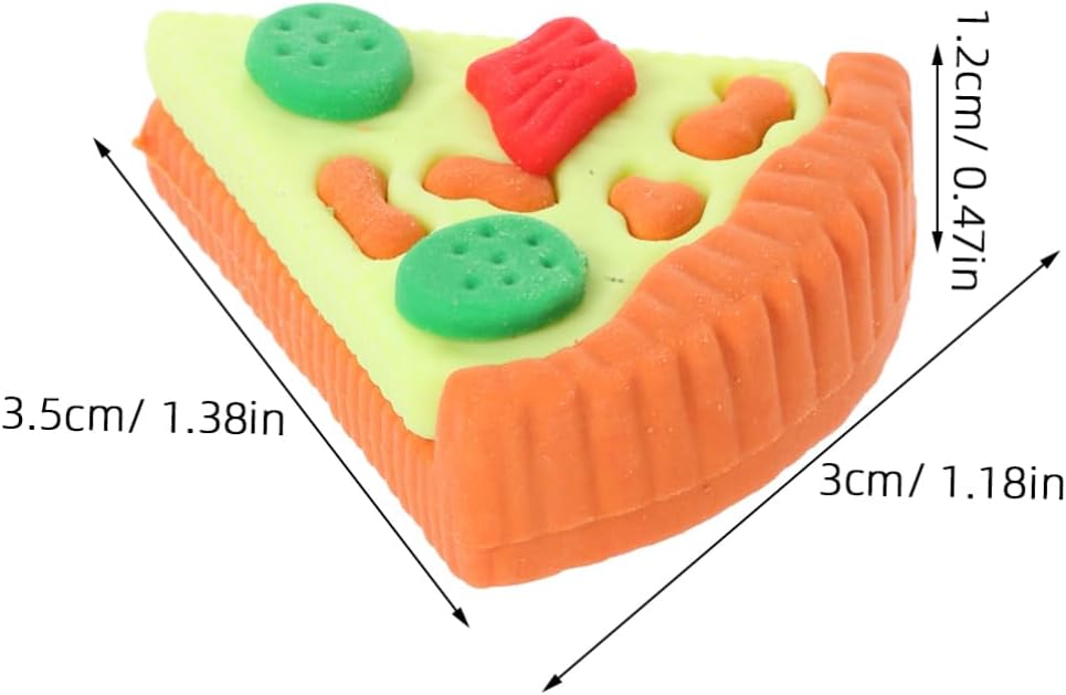 Design Adorabile a Forma di Pizza: Lunica forma triangolare di pizza di questi gommini mini è progettata per catturare lattenzione dei bambini, rendendo lapprendimento e le attività di cancellazione più coinvolgenti e divertenti per gli studenti Perfetti per Ricompense e Regali: Ideali da utilizzare come premi per la classe, regali per feste o premi per studenti, questi gommini carini per bambini aggiungono un elemento divertente e interattivo a contesti educativi e celebrativi Materiale TPR ad Alte Prestazioni: Realizzati in materiale TPR, questi piccoli gommini per bambini offrono una cancellazione efficace senza sbavature, garantendo un risultato pulito e ordinato per i lavori scolastici e i progetti Uso Doppio come Decorazione: Oltre alla loro funzionalità, questi gommini a forma di cibo mini fungono anche da affascinanti decorazioni, aggiungendo un tocco giocoso e colorato a scrivanie, astucci o allestimenti per feste Forniture Scolastiche Essenziali: Unaggiunta fondamentale alla cancelleria scolastica, questi gommini per bambini sono perfetti per studenti, insegnanti e genitori, rendendoli adatti per attività in classe, compiti e uso in ufficio