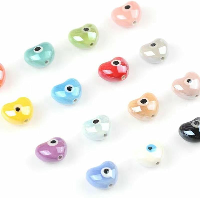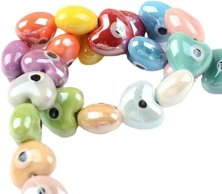 Perline sciolte in ceramica con occhio del diavolo con fori per un facile utilizzo, dimensioni delle perline: 13x15 mm, 15x17 mm, diametro del foro: circa 2 mm Queste perle sono realizzate in ceramica, che ha una consistenza più materica rispetto alla resina, ha il colore smaltato unico della porcellana, è lucida e liscia, non si rompe o sbiadisce facilmente ed è comoda da indossare Queste graziose perline in ceramica con effetto malocchio sono facili da abbinare, puoi aggiungere le tue perline con lettere, perline di perle come perline distanziatrici per aggiungere fascino alla tua creazione di gioielli fai da te Queste perle di ceramica sciolte sono progettate in forme rotonde, quadrate, a cuore o a fiore con colori intensi e punteggiate da motivi a forma di occhio al centro, rendendo le perle di ceramica più uniche e accattivanti Queste perle di porcellana contro il malocchio sono perfette per realizzare braccialetti, collane, orecchini, ciondoli, portachiavi, gioielli e vari accessori artigianali fai da te