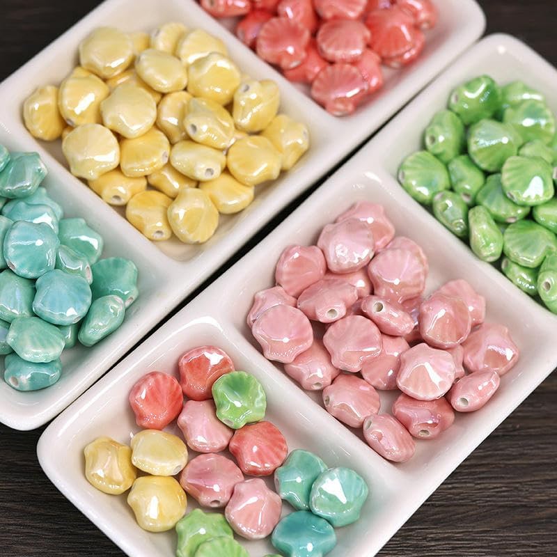 Perline di ceramica colorate a forma di conchiglia, dimensioni: 12 mm, diametro del foro: circa 2 mm, 6 colori, 30 pezzi/confezione Queste perle a forma di conchiglia sono realizzate in ceramica e smaltate a mano, hanno un aspetto liscio, non si rompono o sbiadiscono facilmente e sono comode da indossare Queste perle di porcellana a conchiglia sono uniche e facili da abbinare, puoi aggiungere le tue perle di conchiglia preferite, perle o ciondoli come perline distanziatrici, o semplicemente infilarle insieme per creare un bellissimo braccialetto Progettate a forma di conchiglia, queste perle di ceramica colorate hanno un aspetto unico e una consistenza chiara, che ricorda il mare, donando a chi le indossa un umore gioioso Queste perline di ceramica sciolte a conchiglia sono molto adatte per braccialetti fai da te tessuti a mano, creazione di gioielli, portachiavi, creazione di ciondoli e possono anche essere regalate ad amici a cui piacciono le perline fatte a mano