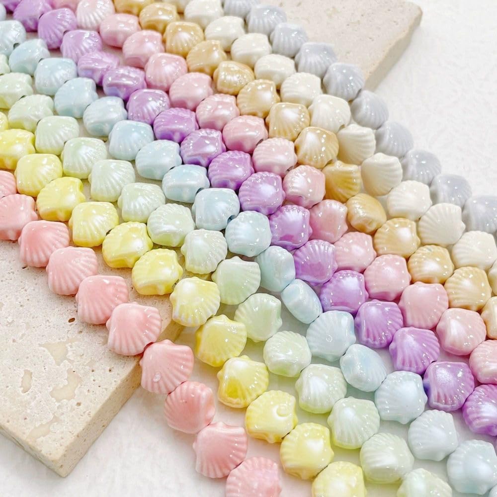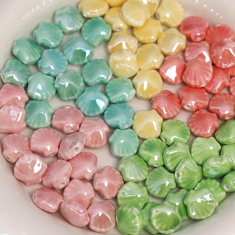 Perline di ceramica colorate a forma di conchiglia, dimensioni: 12 mm, diametro del foro: circa 2 mm, 6 colori, 30 pezzi/confezione Queste perle a forma di conchiglia sono realizzate in ceramica e smaltate a mano, hanno un aspetto liscio, non si rompono o sbiadiscono facilmente e sono comode da indossare Queste perle di porcellana a conchiglia sono uniche e facili da abbinare, puoi aggiungere le tue perle con lettere, perle o ciondoli come perline distanziatrici, o semplicemente infilarle insieme per creare un bellissimo braccialetto Progettate a forma di conchiglia, queste perle di ceramica colorate hanno un aspetto unico e una consistenza chiara, che ricorda il mare, donando a chi le indossa un umore gioioso Queste perline di ceramica sciolte a conchiglia sono molto adatte per braccialetti fai da te tessuti a mano, creazione di gioielli, portachiavi, creazione di ciondoli e possono anche essere regalate ad amici a cui piacciono le perline fatte a mano