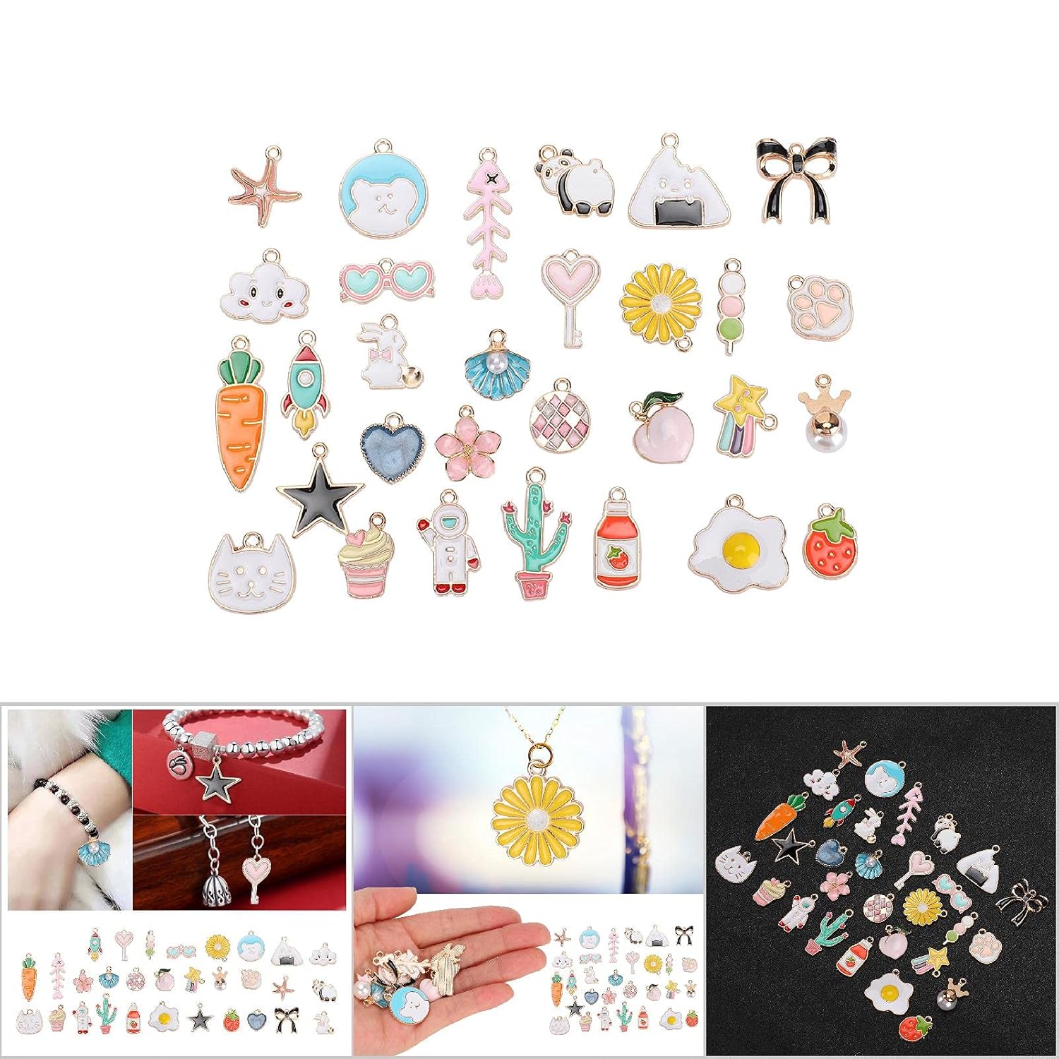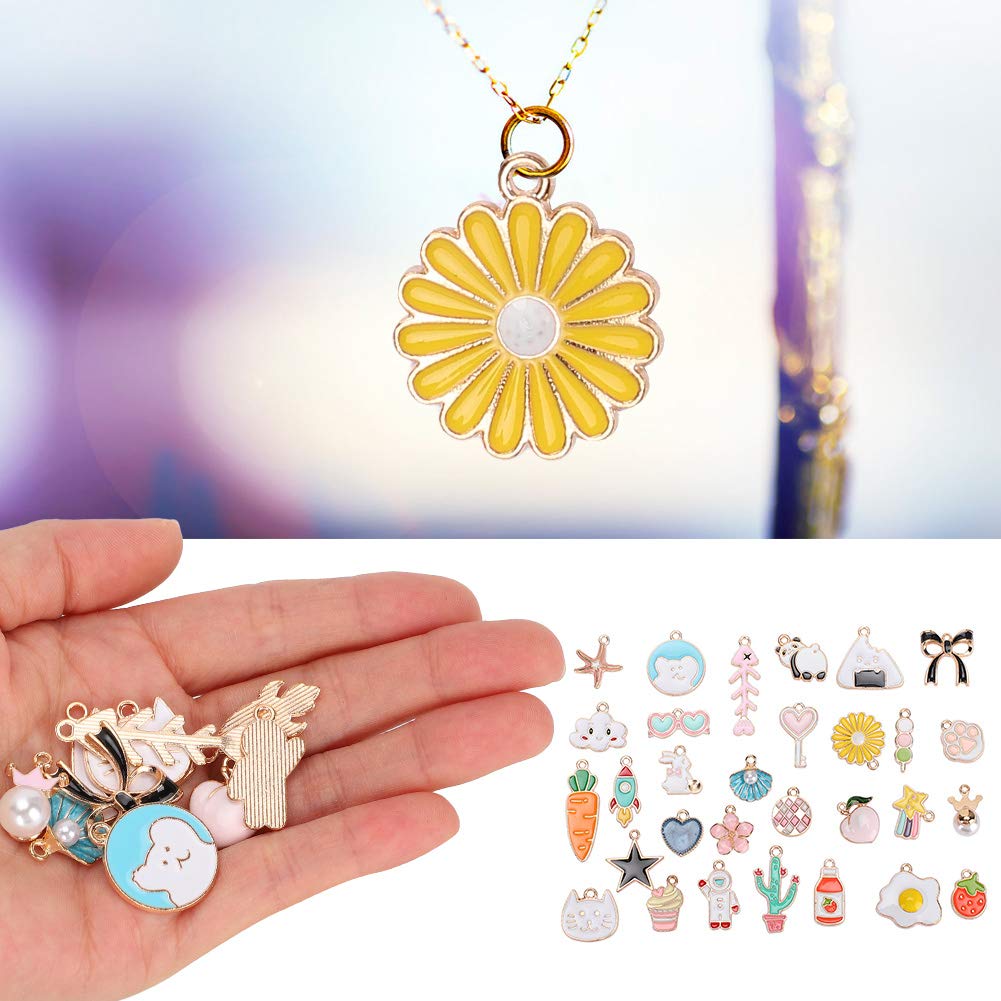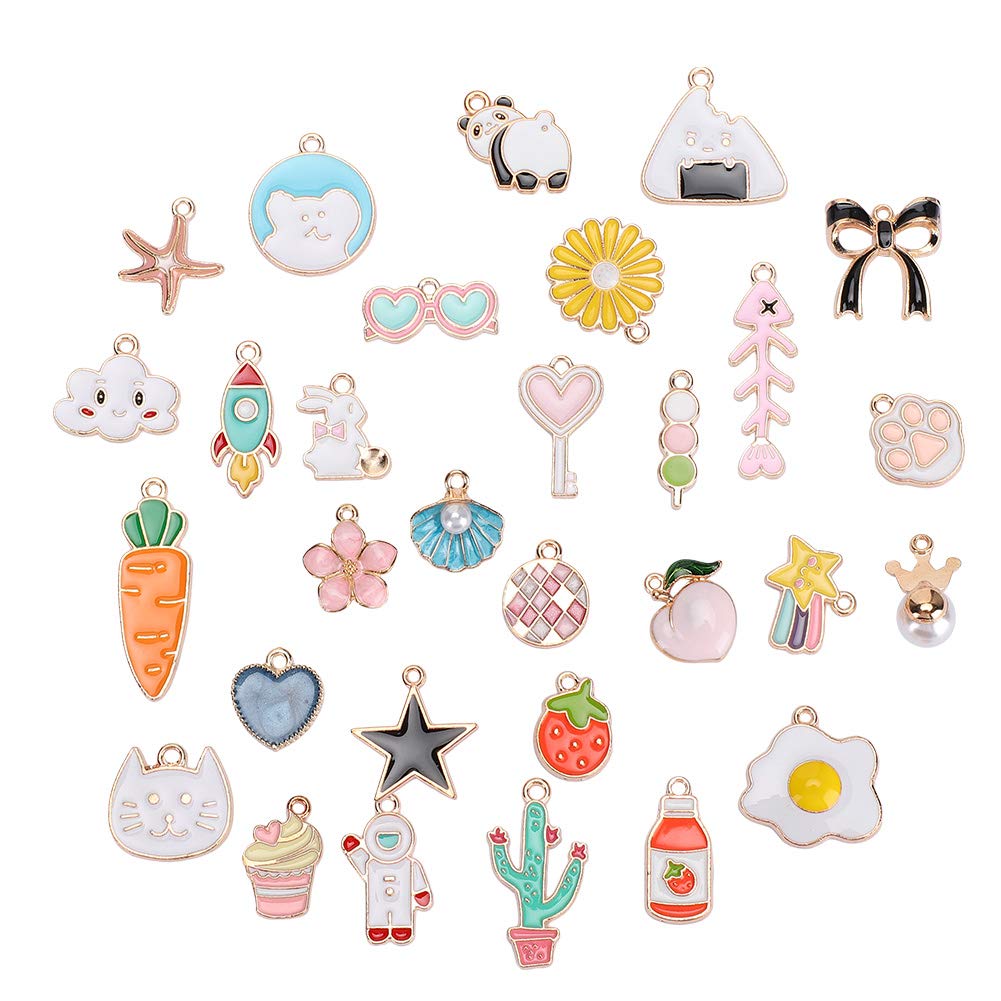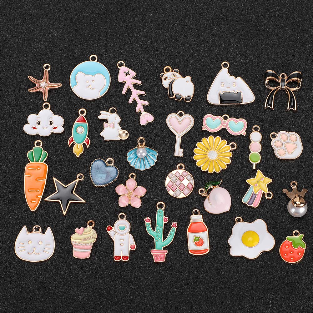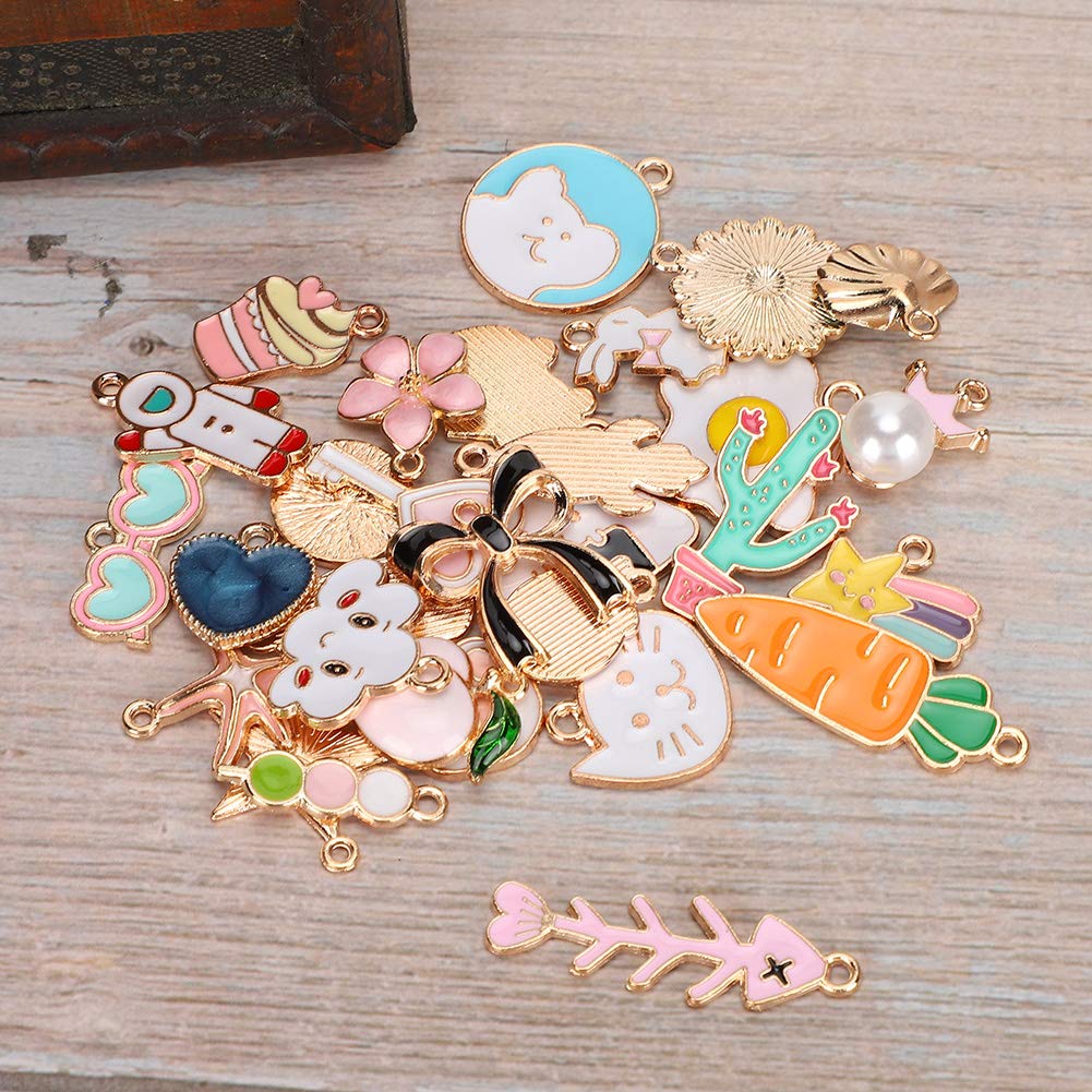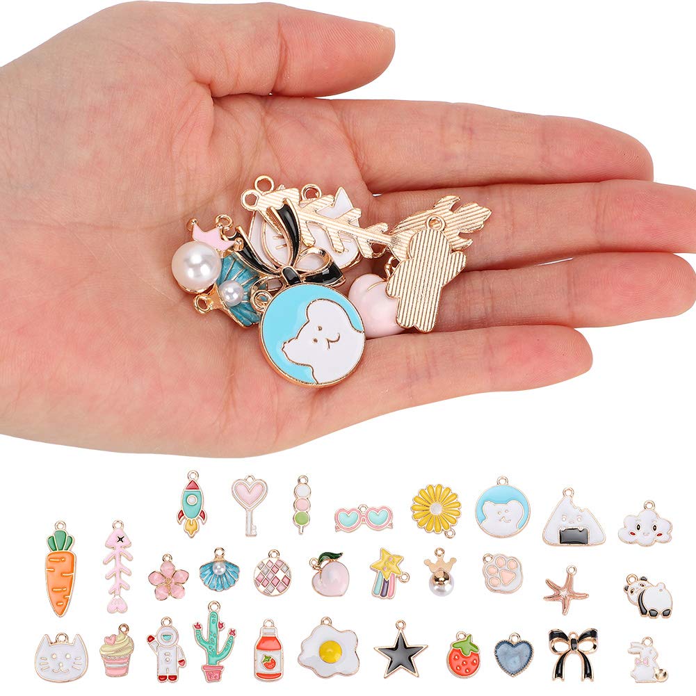 [Versatile preparazione di gioielli fai -da -te] Crea pendenti per collana, orecchini, bracciali, cavigliere e altro ancora con questi pendenti in lega. [Eleganti opzioni ] per compleanni, vacanze, feste o come regali per i propri cari, amici e sorelle. [Materiale di qualità premium] realizzato in lega di piombo di alta qualità durevole, non fatta e per la pelle. [Design vari] presenta 30 motivi unici tra cui cuori, frutta, conchiglie, gatti e fiori per una creatività infinita. [Fine Craftsmanship] Elettroplato per un aspetto straordinario, questi pendenti sono ideali per tutti i tuoi progetti di gioielli fai -da -te.