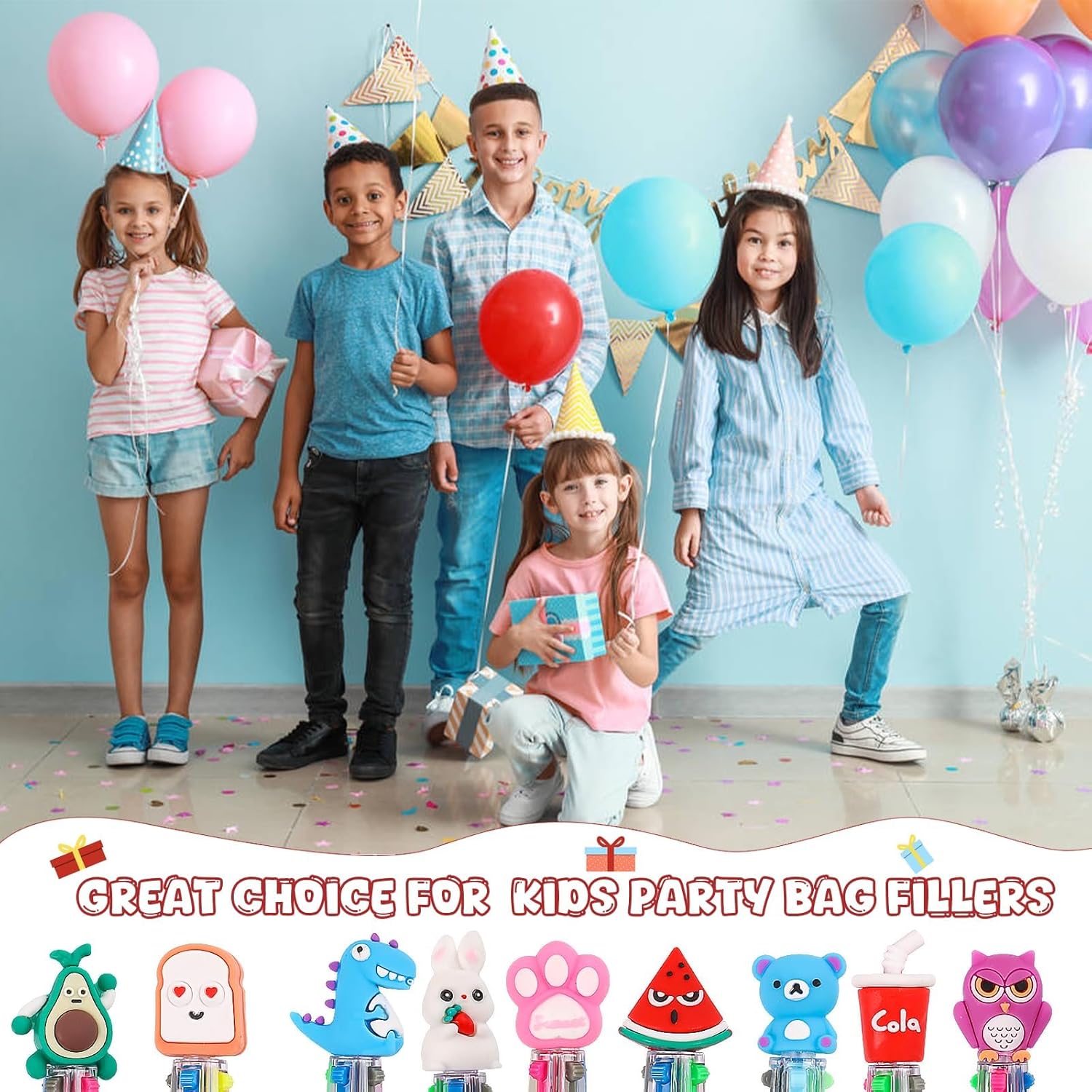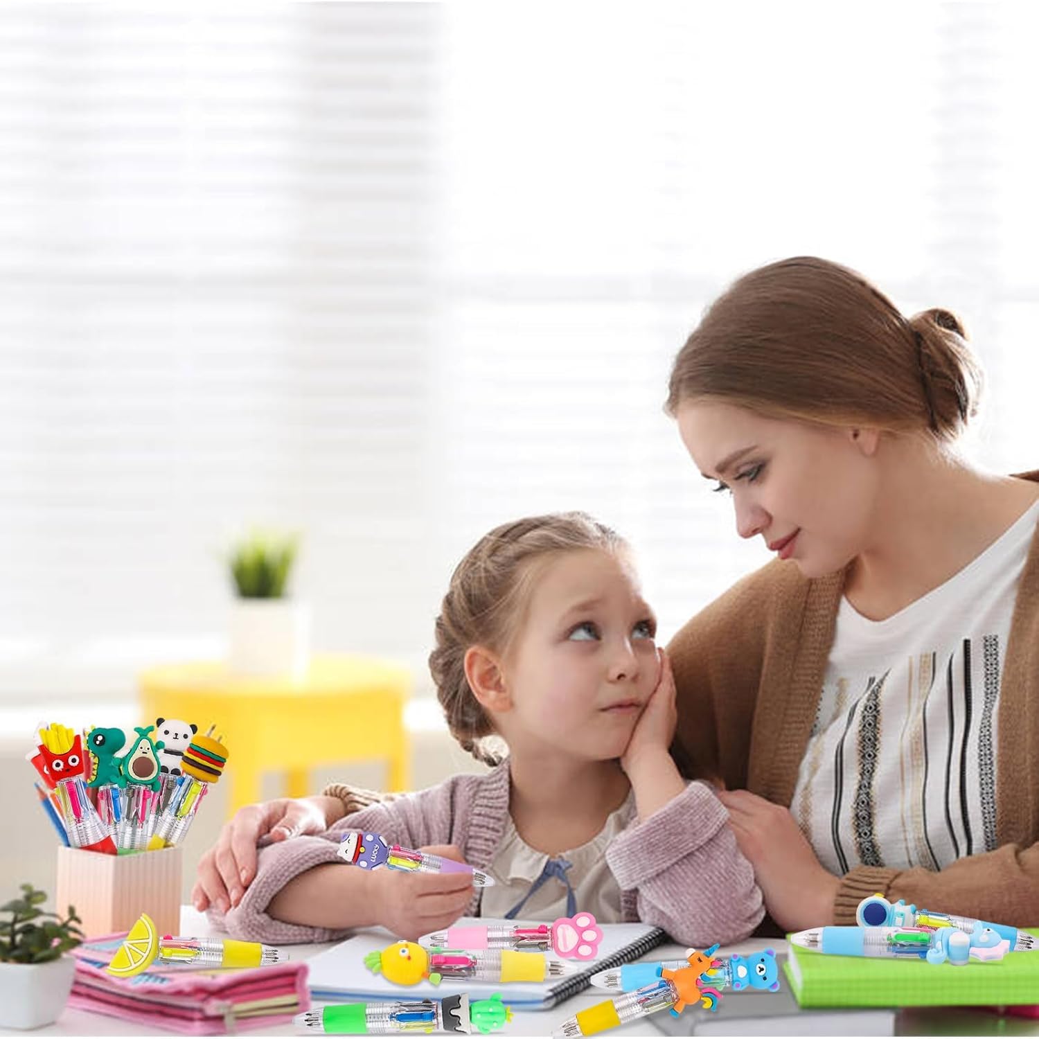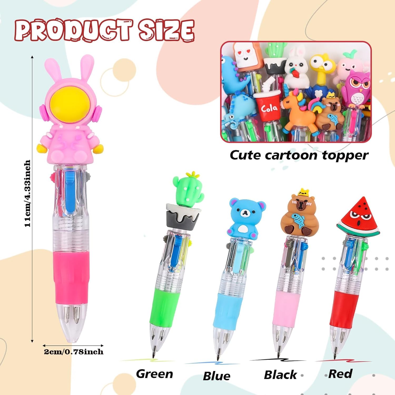 【Penne multicolore per bambini】Il set include 30 mini penne a sfera multicolore con 30 motivi diversi, tra cui dinosauri, gufi, squali, unicorni e altri simpatici stili di cartoni animati, aggiungendo divertimento illimitato alla tua vita! 【Efficienti e adatte ai bambini】Le penne colorate sono progettate appositamente per i bambini. Il corpo della penna più corto offre una presa comoda per i bambini. È anche possibile cambiare il colore a piacimento per scrivere in modo creativo, il che aumenta il divertimento dei bambini nella scrittura e riduce il carico di lavoro per i genitori. 【Scrittura fluida】La penna a sfera combina quattro colori di inchiostro in uno e la fluidità della scrittura garantisce una scrittura precisa senza sbavature o sbavature sulla carta. 【Regalini Fine Festa di Compleanno】Penne colorate in quattro tonalità vivaci (blu, rosso, verde e nero) che i bambini possono cambiare a piacimento, con simpatici cappucci per ispirare la loro creatività e il loro interesse per l'apprendimento. 【Regalo creativo】Questo set di penne a sfera colorate è un regalo perfetto per i bambini, ottimo per aggiungere colori unici a varie feste.