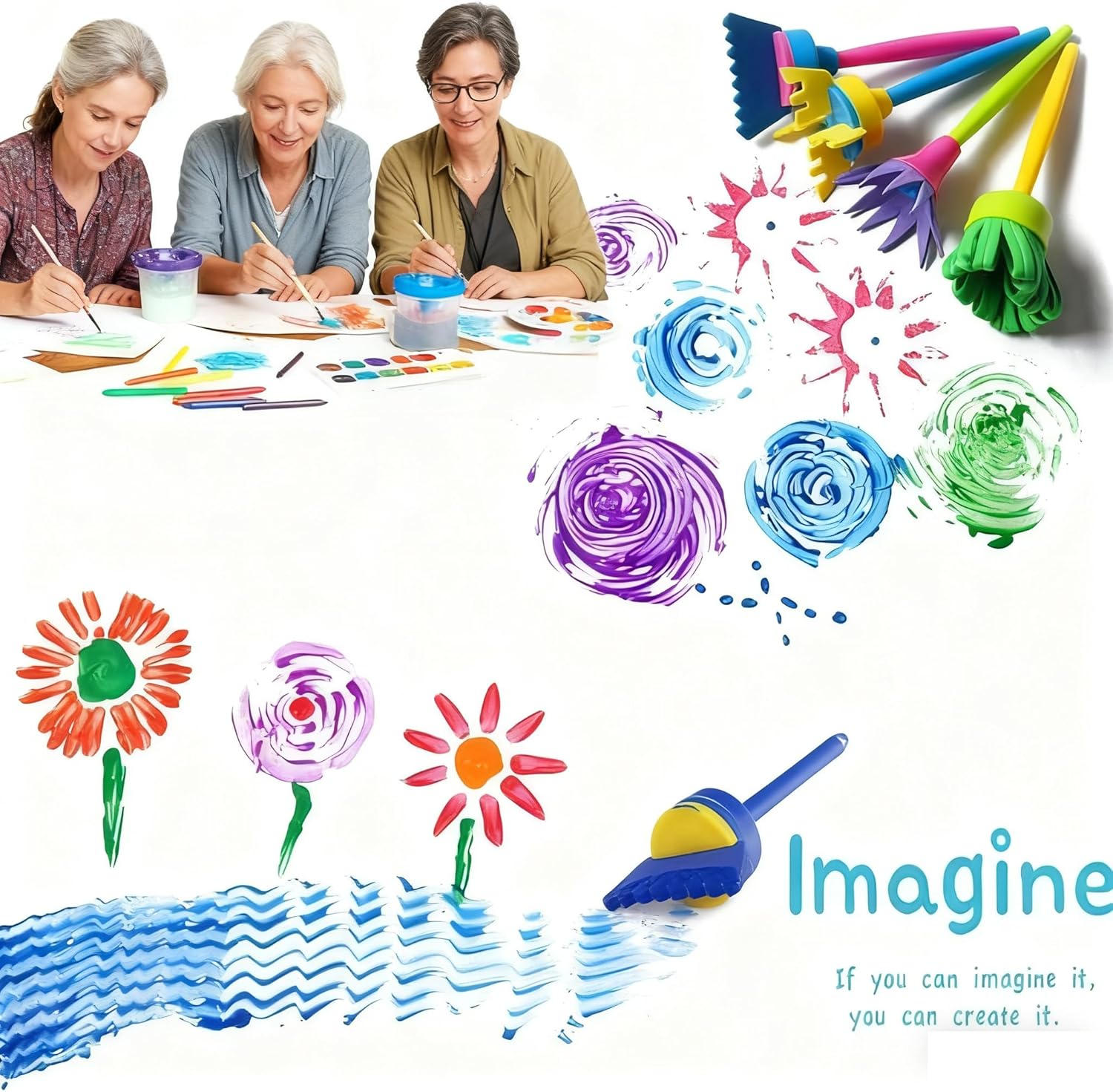 Fácil de manejar y fácil de aprender: el kit pinturas y está hecho de plástico EVA no tóxico. Este pincel promueve el desarrollo de en los campos de la pintura, el arte, la imaginación y la creatividad. Materiale: manico in plastica e testina in spugna, facile da padroneggiare e controllare. Facile da asciugare: questi pennelli morbidi sono facili da pulire, asciugare e riutilizzare. Persone applicabili: sono progettate in misure confortevoli perfette per i artisti , anche divertenti per gli adulti. 29 diverse forme e misure di spazzole (1 pennello fine +1 Sponge pala + 4 pennelli per pittura di fiori+ 4 spazzole spugna a rullo + 4 spazzole a rullo in spugna + 5 Pennello rotondo in spugna + 4 pennello spugna lungo + 6 breve spugna pittura stamper ) e +1 Borsa, Con loro può creare liberamente diversi modelli per stimolare l'immaginazione e la creatività.