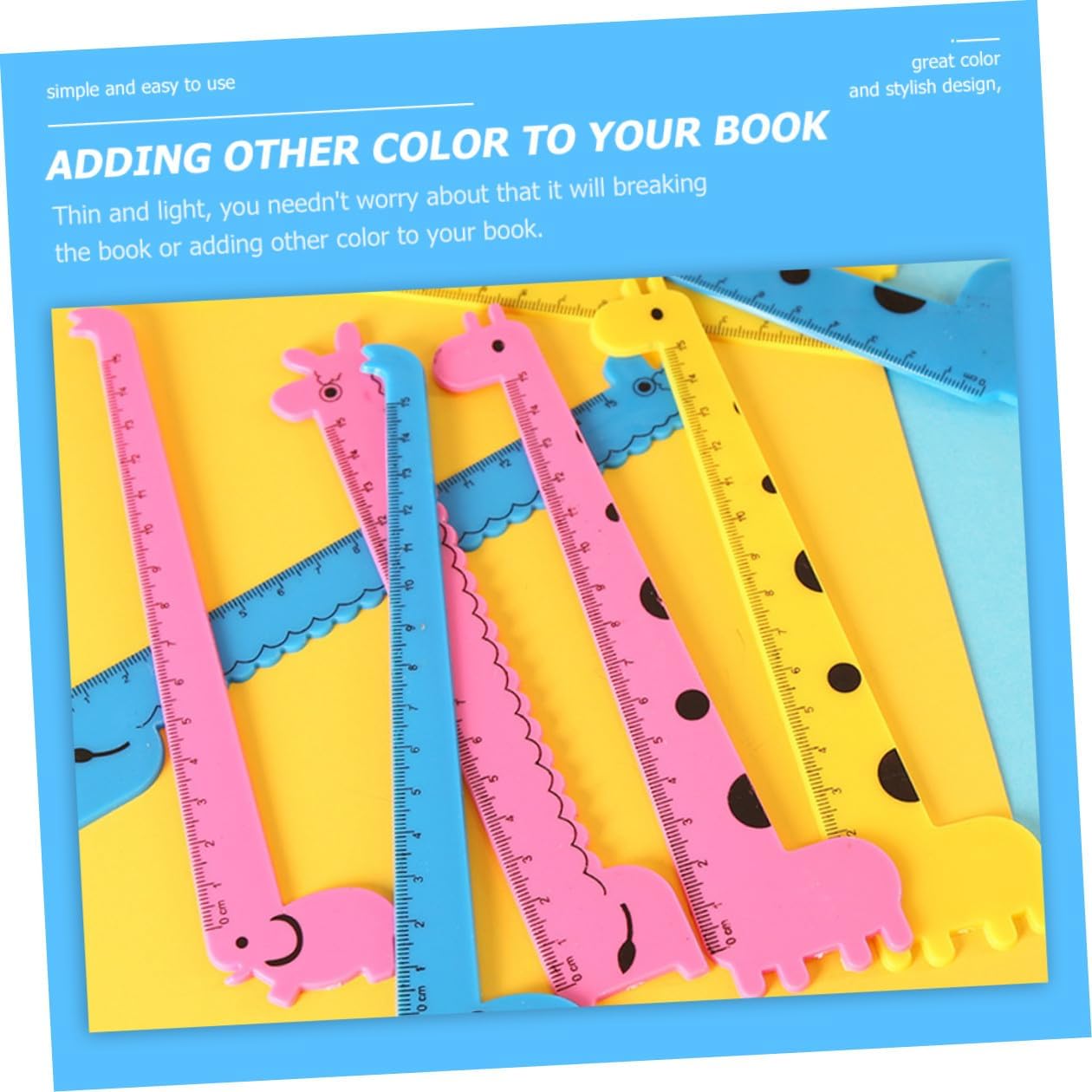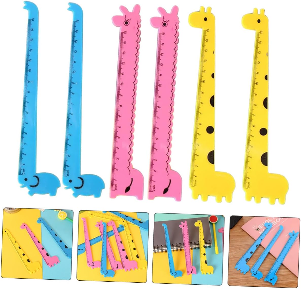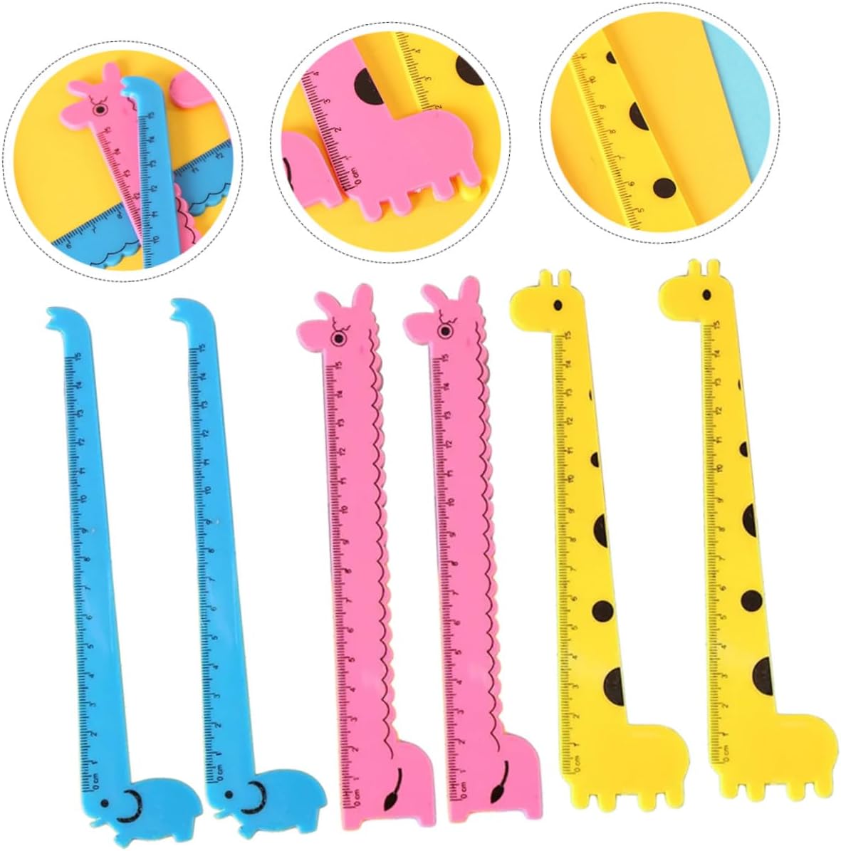 Righello carino: realizzato con materiali plastici di alta qualità, questo righello dritto in plastica è sicuro e per un uso duraturo, righello per studenti dei cartoni animati Righello dei cartoni animati: con scala chiara incisa, il righello è facile da leggere e da usare, molto pratico e comodo, righello di plastica portatile Righelli di plastica innovativi: il righello dritto di plastica può essere utilizzato anche come segnalibro per aiutarti a continuare a leggere facilmente, righello multifunzione per studenti Adorabili righelli di plastica: sottili e leggeri, non devi preoccuparti che possano rompere il libro o aggiungere altri colori al tuo libro, righelli a forma di giraffa Righello di plastica: leggero, facile e pratico da mettere nelle cartelle scolastiche o sulla scrivania, righello per tenere un diario