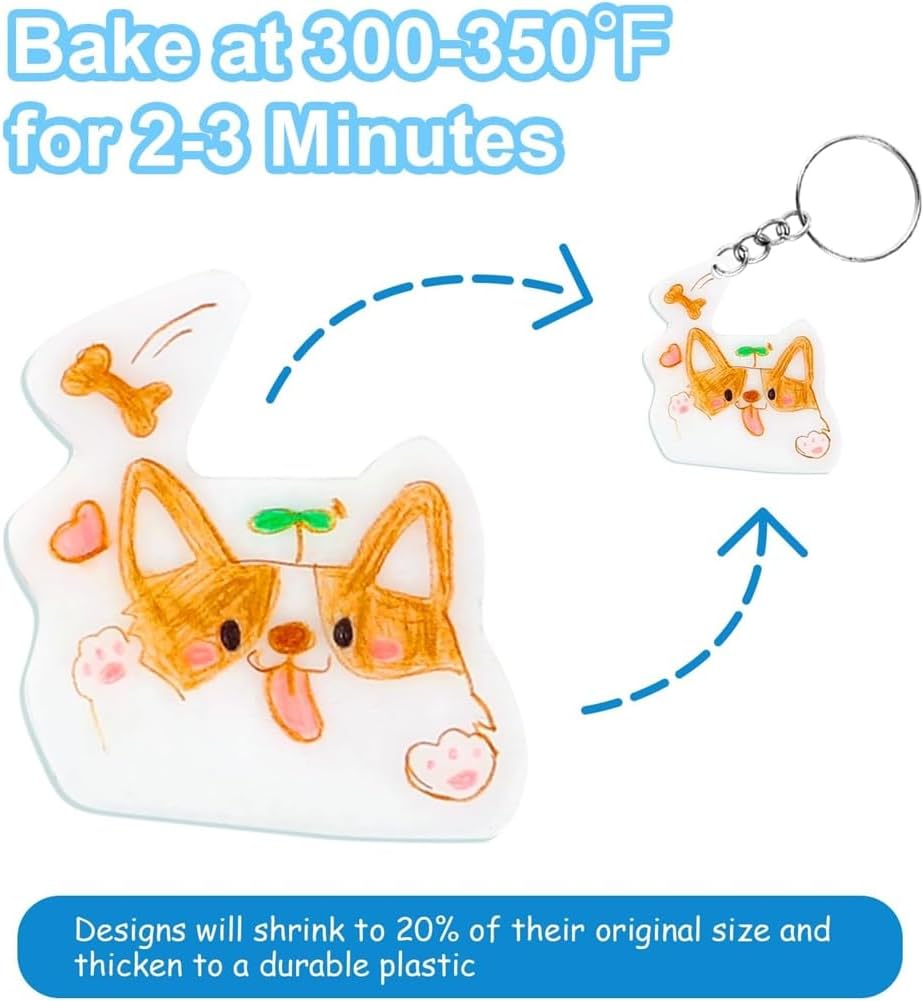 Questi fogli artistici termoretraibili misurano 20 x 14,5 cm e spessore di 0,3 mm. Si restringono fino al 20% della loro dimensione originale e diventano 5 volte più spessi dopo il riscaldamento. Un lato è satinato per facilitare il disegno, mentre l'altro è per finiture brillanti. I fogli di pellicola termoretraibile sono facili da disegnare con pennarelli o matite. Cuocili in casa per un restringimento (si restringe fino al 20% delle dimensioni originali) e trasformali in oggetti lucidi e resistenti. Crea regali personalizzati per la Festa della Mamma o del Papà, come , decorazioni o ciondoli. Materiali di alta qualità garantiscono la sicurezza dei bambini. Include 30 fogli di plastica termoretraibile, 30 e 100 anelli di congiunzione: tutto ciò di cui i bambini bisogno per creare gioielli personalizzati, , ciondoli o . Perfetto per regali DIY per le feste. Include 30 in metallo e 100 anelli per realizzare creazioni pronte da regalare. Ideale per aule, feste o attività che uniscono .