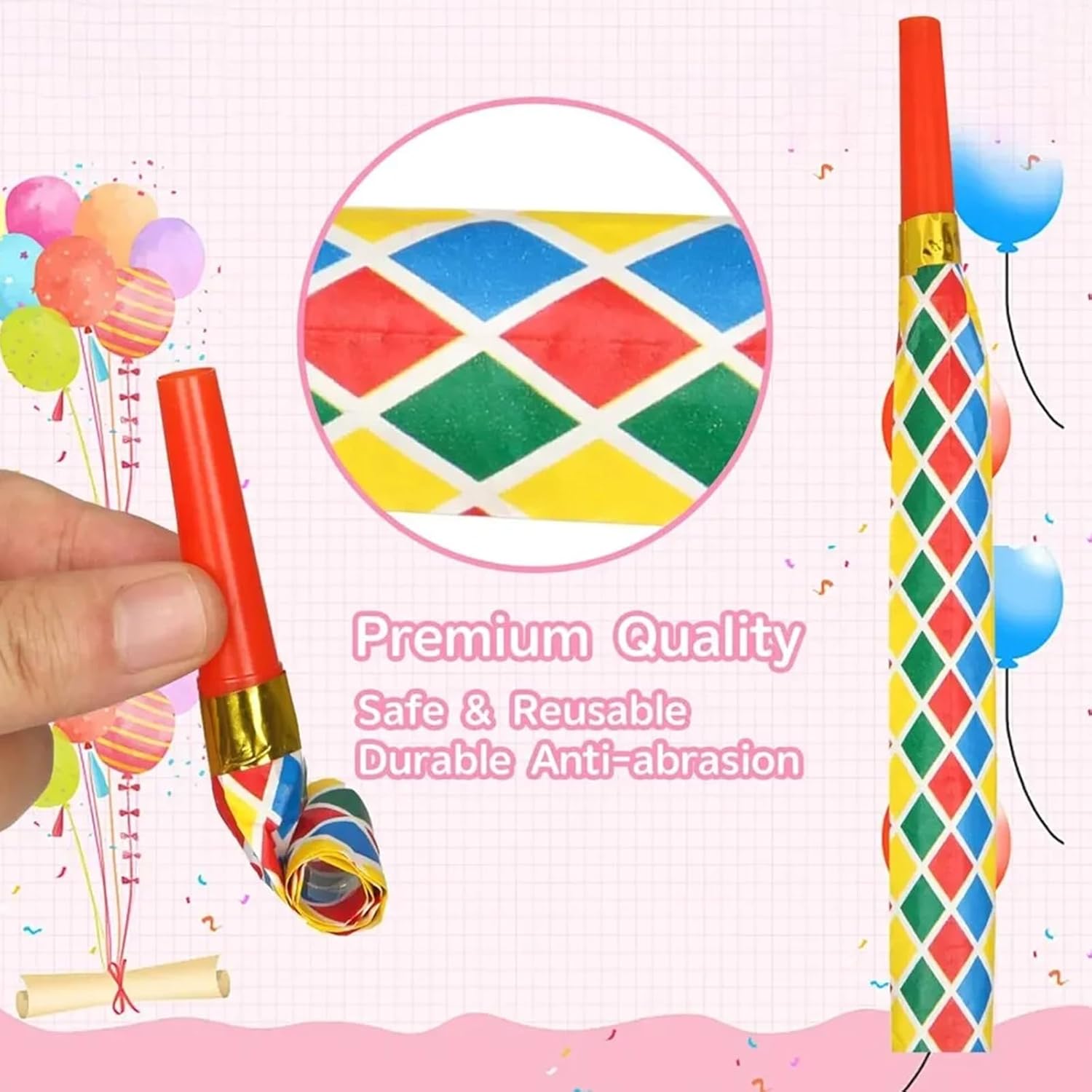 Lista di imballaggio: il set include 30 giocattoli che soffiano e fischiano in colori casuali, adatti per feste di compleanno, feste di Natale e giochi quotidiani per bambini. Materiale: il fischietto da festa è realizzato in plastica e carta durevoli di alta qualità, atossiche e rispettose dell'ambiente, durevoli e riutilizzabili, resistenti alle rughe e all'usura e non facili da strappare o rompere. Dimensioni adatte: il corno di compleanno può misurare fino a 24,5 cm quando è completamente aperto, 8,5 cm di tempo normale di arrotolamento, 1 cm di diametro, di medie dimensioni, ideale per i bambini. Soffiatori per feste: oggetti di scena divertenti e regali per feste per bambini e adulti, facili da usare, portano risate e gioia. Questi oggetti di scena ispiratori hanno reso la serata in anticipo per la fase delle riprese, che è stata divertente e coinvolgente. Ampia applicazione: ideale per feste, Natale, eventi scolastici, matrimoni, feste, compleanni, Capodanno, ecc. Un ottimo regalo per la famiglia, i colleghi, gli ospiti, gli amici e altro ancora.