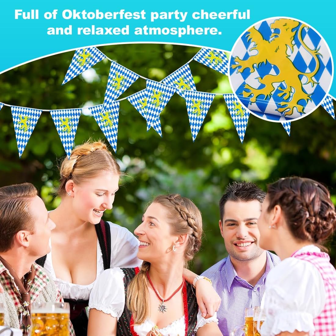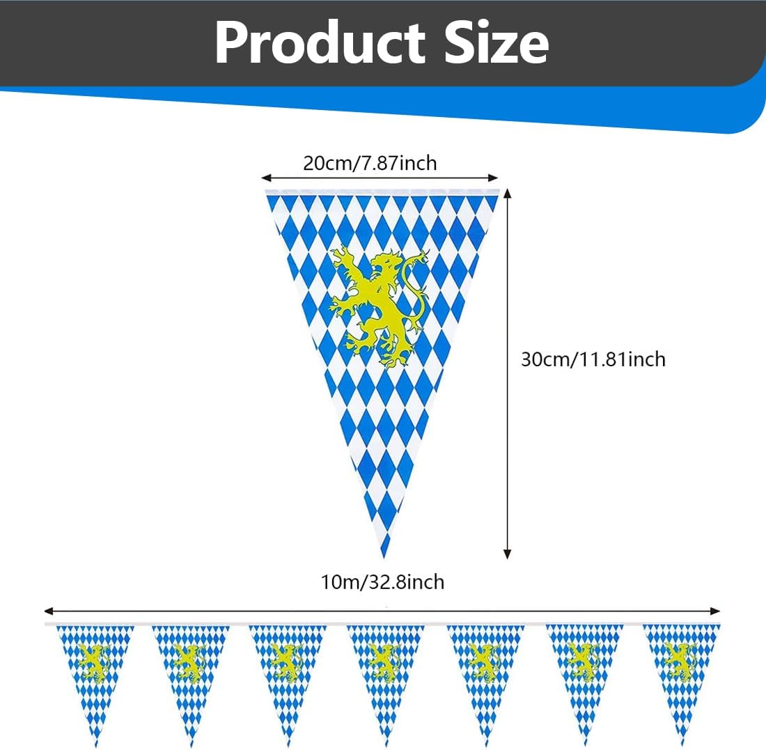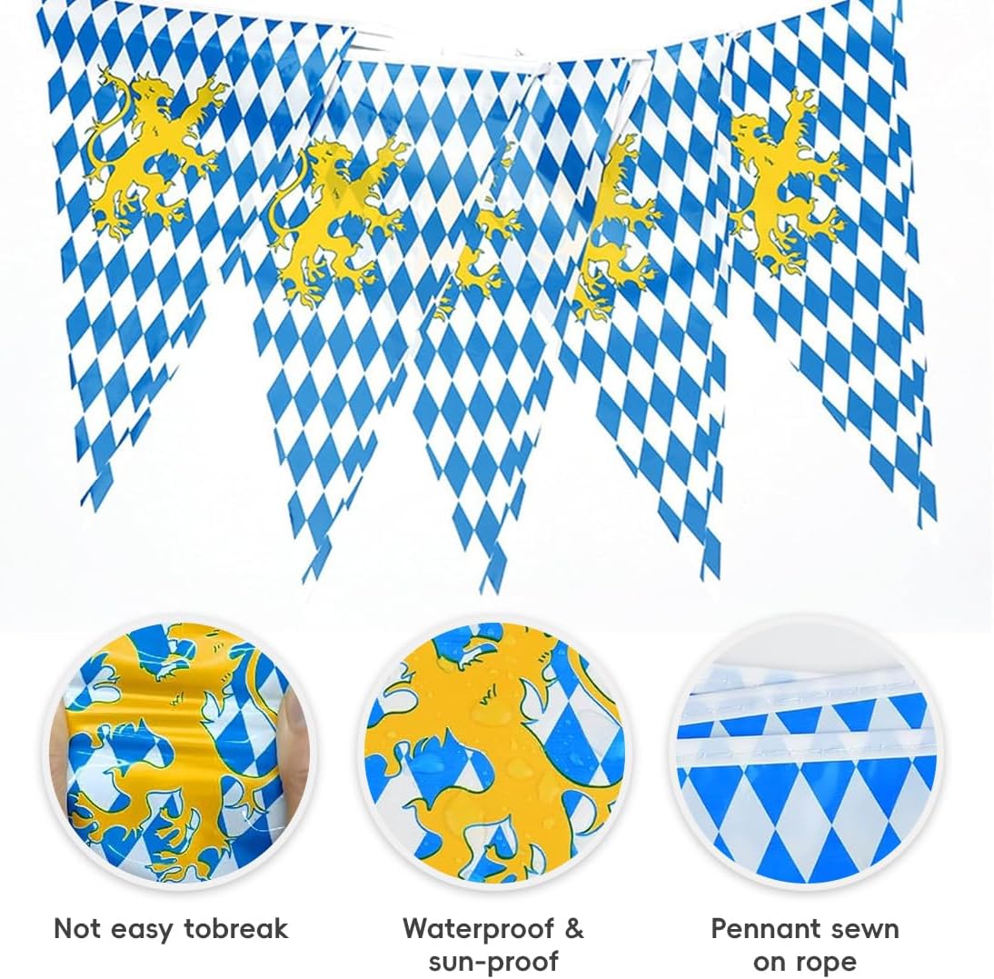 Materiali di alta qualità: i nostri gagliardetti dell'Oktoberfest sono realizzati in PE impermeabile. Resistente e non facile da strappare, può essere riutilizzato senza sbiadire. La squisita ghirlanda di gagliardetti presenta l'effetto decorativo perfetto per la tua festa dell'Oktoberfest. La bandierina dell'Oktoberfest include: bandierine dell'Oktoberfest (ogni pezzo è composto da 65 gagliardetti). Molto adatto per la decorazione della festa dell'Oktoberfest. Dimensioni del gagliardetto: ogni gagliardetto 30 x 45 cm; la lunghezza della bandiera è di 30 metri. Facile da usare: tutti i gagliardetti blu e bianchi sono cuciti sulla corda.Puoi usarli direttamente.È molto comodo da appendere.Puoi appendere le bandiere dell'Oktoberfest ovunque nella festa. Può essere appeso in veranda, soffitto, balcone, ecc. Ampiamente usato: quando si decora l'Oktoberfest, è adatto per attività di festa al coperto o all'aperto. Adatto per cortile dell'Oktoberfest, festa in giardino, decorazione per feste di compleanno dell'Oktoberfest, ecc.