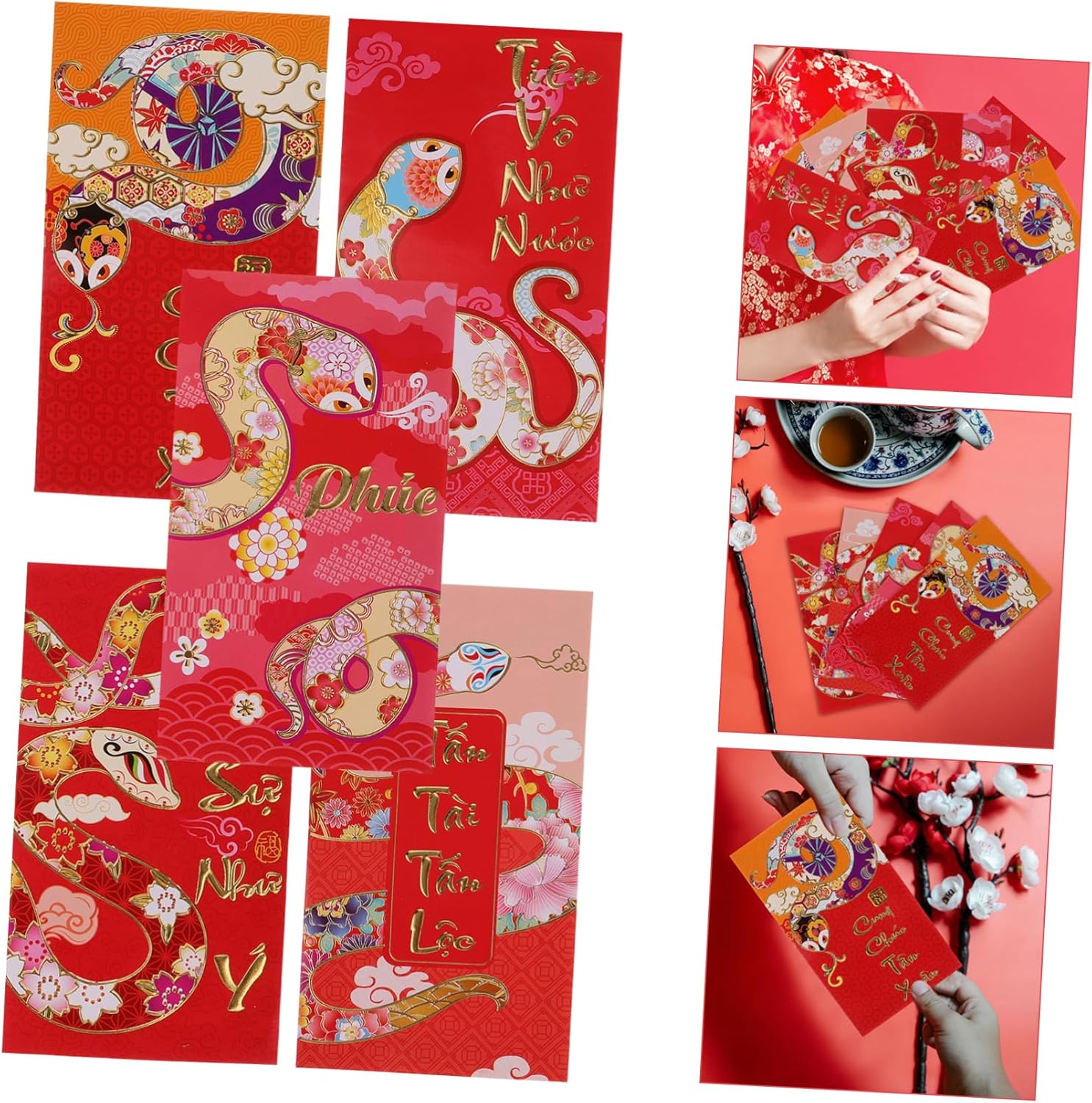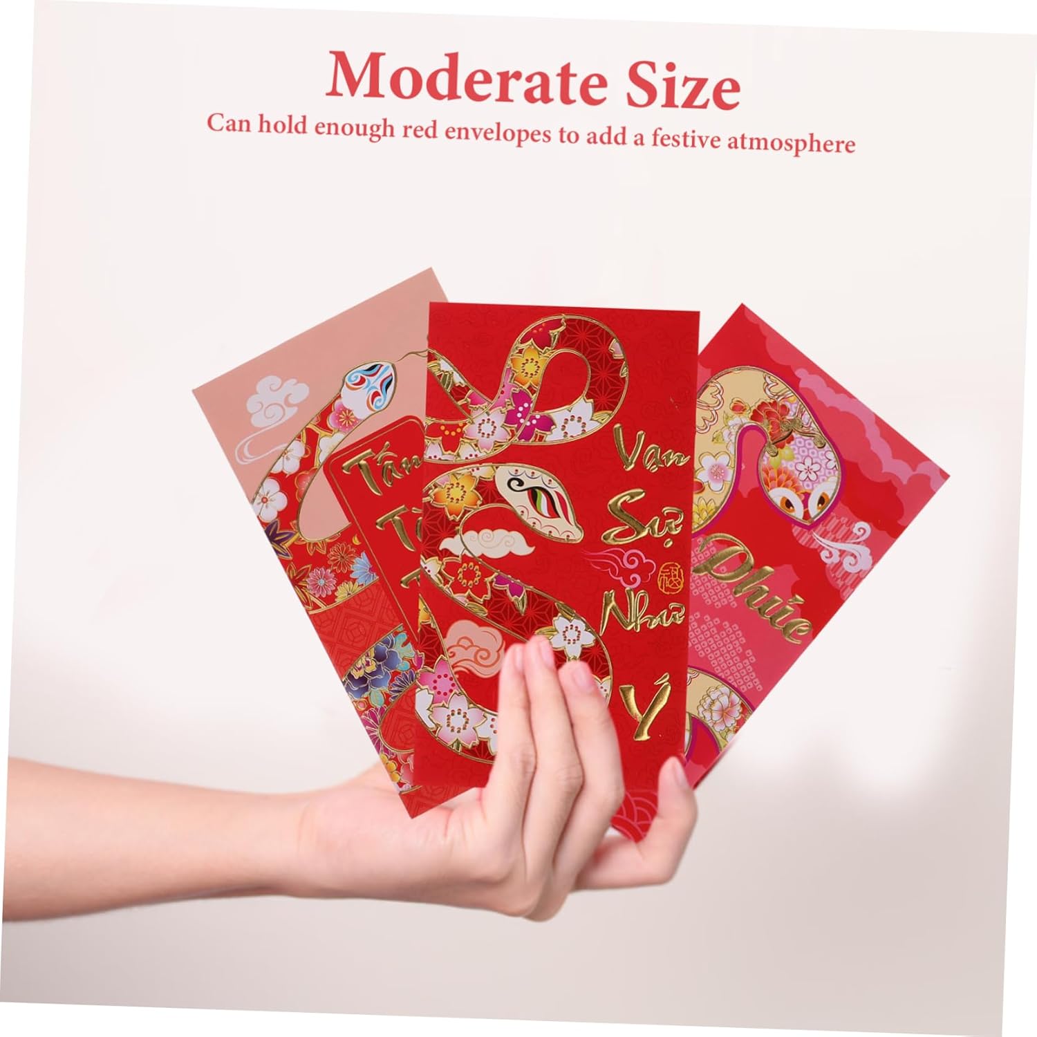 Festeggia l'anno 2025 del serpente con una busta rossa dal design raffinato che incarna lo spirito festivo e il significato culturale di questa occasione speciale. stile vietnamita unico che offre un look fresco e distintivo, per aggiungere un tocco di alle tue celebrazioni di Capodanno. Progettata con dimensioni convenienti, questa busta rossa è ideale per contenere un ampio in contanti ed è facile da trasportare durante le visite festive. Realizzata con materiali durevoli, questa busta rossa garantisce molteplici usi senza compromettere la qualità, rendendola una scelta sostenibile. Caratterizzata da un adorabile design a forma di serpente cartone animato, questa busta rossa è un delizioso per amici e parenti, migliorando l'atmosfera festosa e diffondendo gioia.