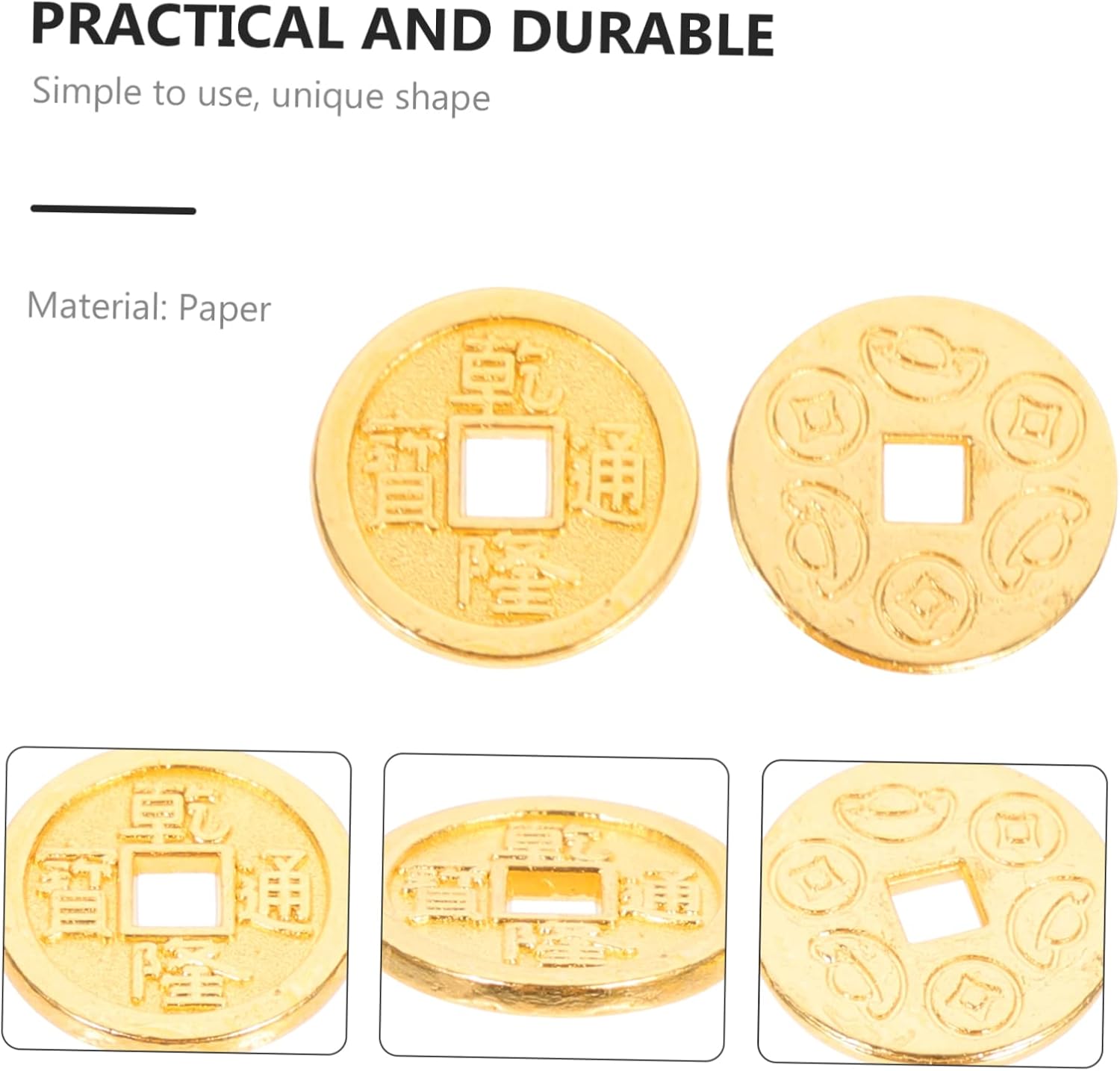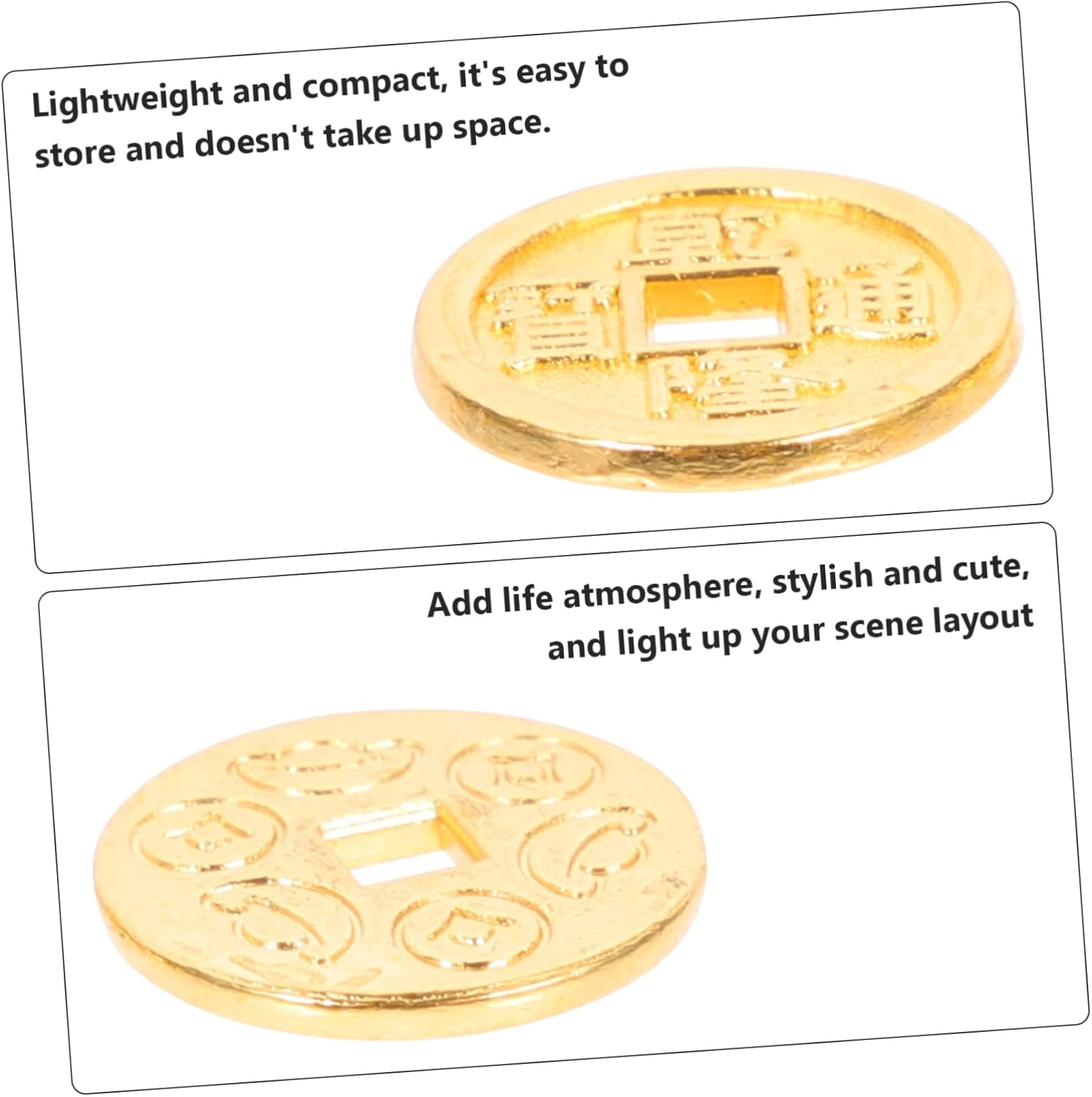 Mini accessori: posizionalo nella tua mini casa o stanza per dettagli paesaggistici più realistici, accessori per la casa delle bambole Miniature di case delle bambole: possono essere utilizzate come supporto per layout, supporto fotografico, mini accessorio per la decorazione della casa, mini accessori per bambole Miniature: mini modello di moneta in rame, creativo e realistico, design liscio, mini soldi per la casa delle bambole Accessorio per la casa delle bambole: possiede una forte capacità di resistenza all'usura e alla rottura, moneta di carta molto dorata Decori dorati simulati: superficie liscia, aspetto semplice e vivace, decorativo, mini ornamento per la casa, mini ornamento per la casa