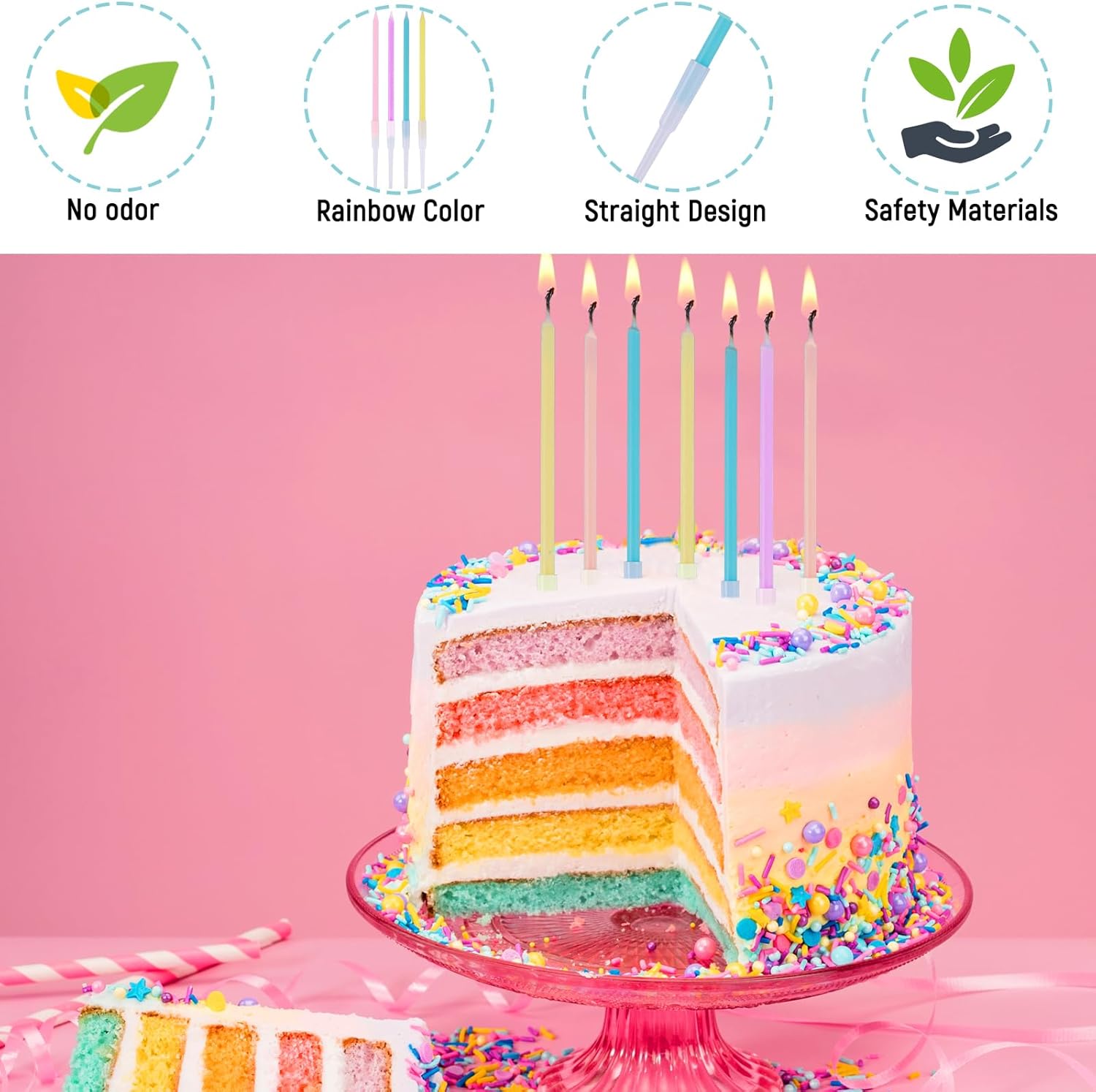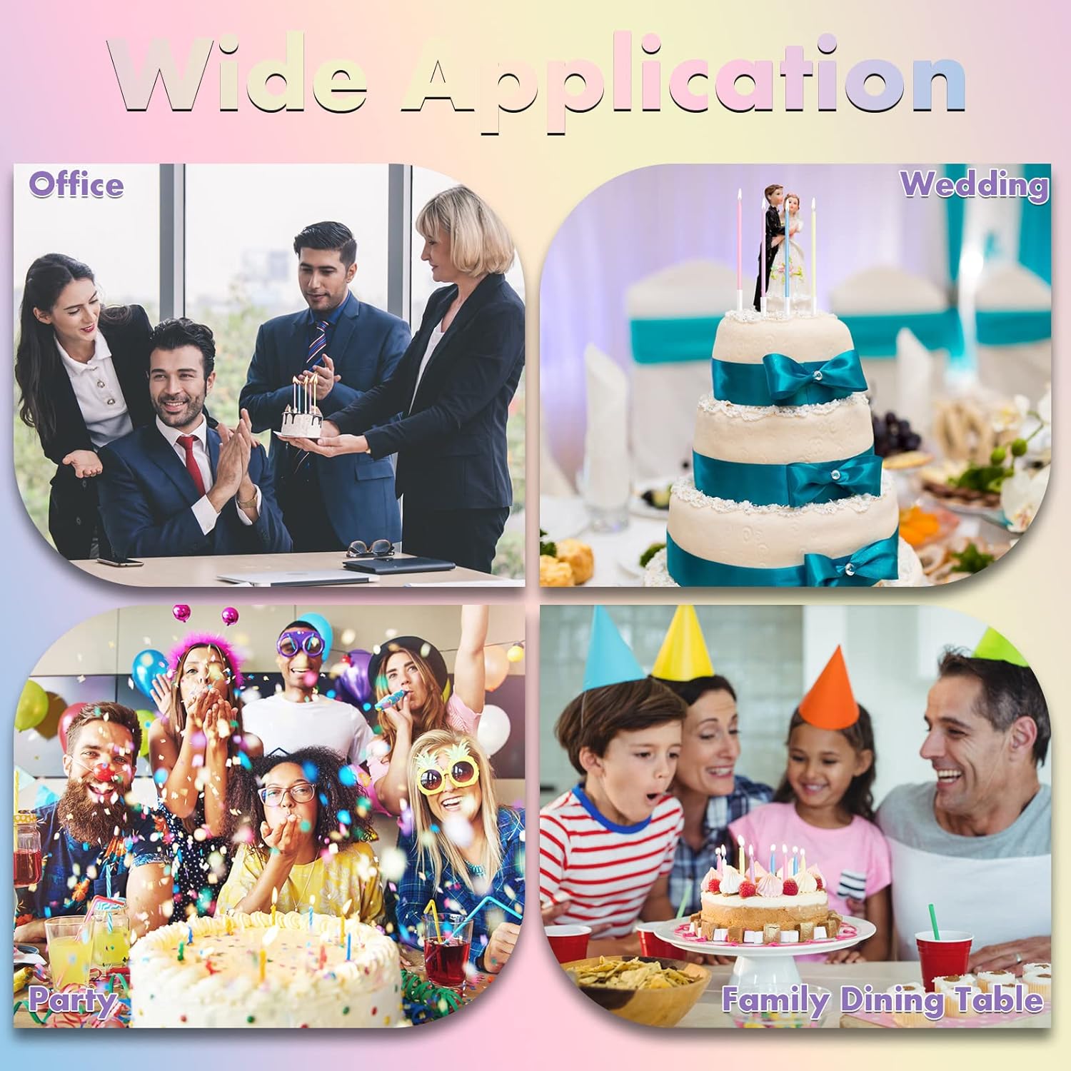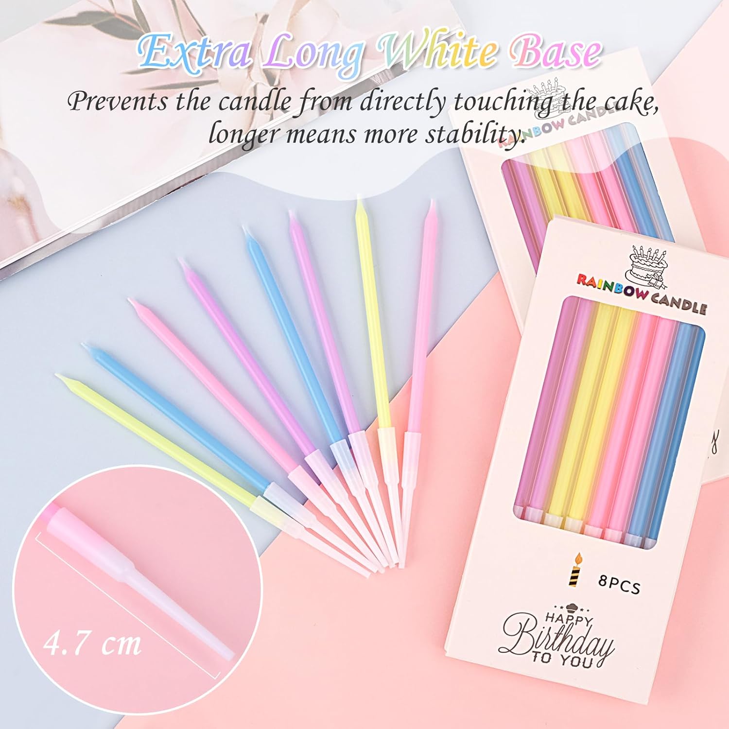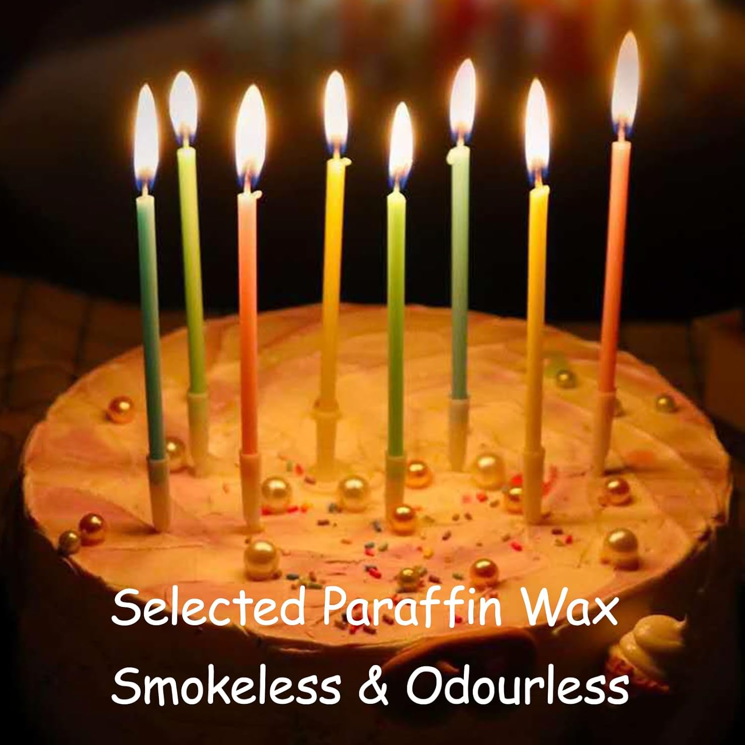 Candeline sottili per torta: Riceverai 32 candeline d'anniversario dai colori delicati, lunghe 13 cm. La quantità è sufficiente e bruciano lentamente. Dopo i test, ogni candela può bruciare per 10-13 minuti (a seconda del vento). Candeline colorate per compleanno: Le nostre candeline per compleanno sono disponibili nei colori blu, rosa, giallo e viola. I colori sono unici e bellissimi, perfetti da usare da soli o abbinati ad altre decorazioni per torta. Sono ideali per feste di compleanno per bambini. Materiale di alta qualità: Le candeline per compleanno sono realizzate in paraffina di alta qualità, sono atossiche e inodori. Durante la combustione, si scioglie solo una piccola quantità di cera e bruciano lentamente, offrendovi abbastanza tempo per cantare "Tanti auguri", esprimere un desiderio e abbracciarvi, fino a quando non sarete pronti a spegnerle. Supporto stabile per le candele: Ogni candela è dotata di un supporto bianco extra-lungo di 4,7 cm, che garantisce una stabilità perfetta nel cake senza danneggiarne la superficie. Oltre a decorare i compleanni, possono essere utilizzate anche per decorare torte nuziali, torte battesimali e torte per anniversari. Occasioni d'uso: Le candeline colorate per torta sono perfette per feste di compleanno per ragazze, compleanni di 16, 18 o 21 anni, baby shower e qualsiasi altra occasione che coinvolga una torta! Come feste di Halloween, feste di Pasqua, anniversari, matrimoni, festa della mamma e molto altro.