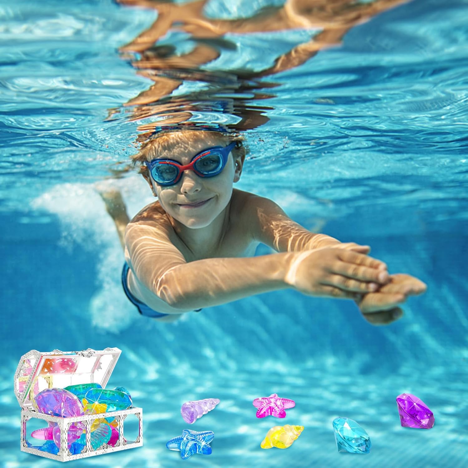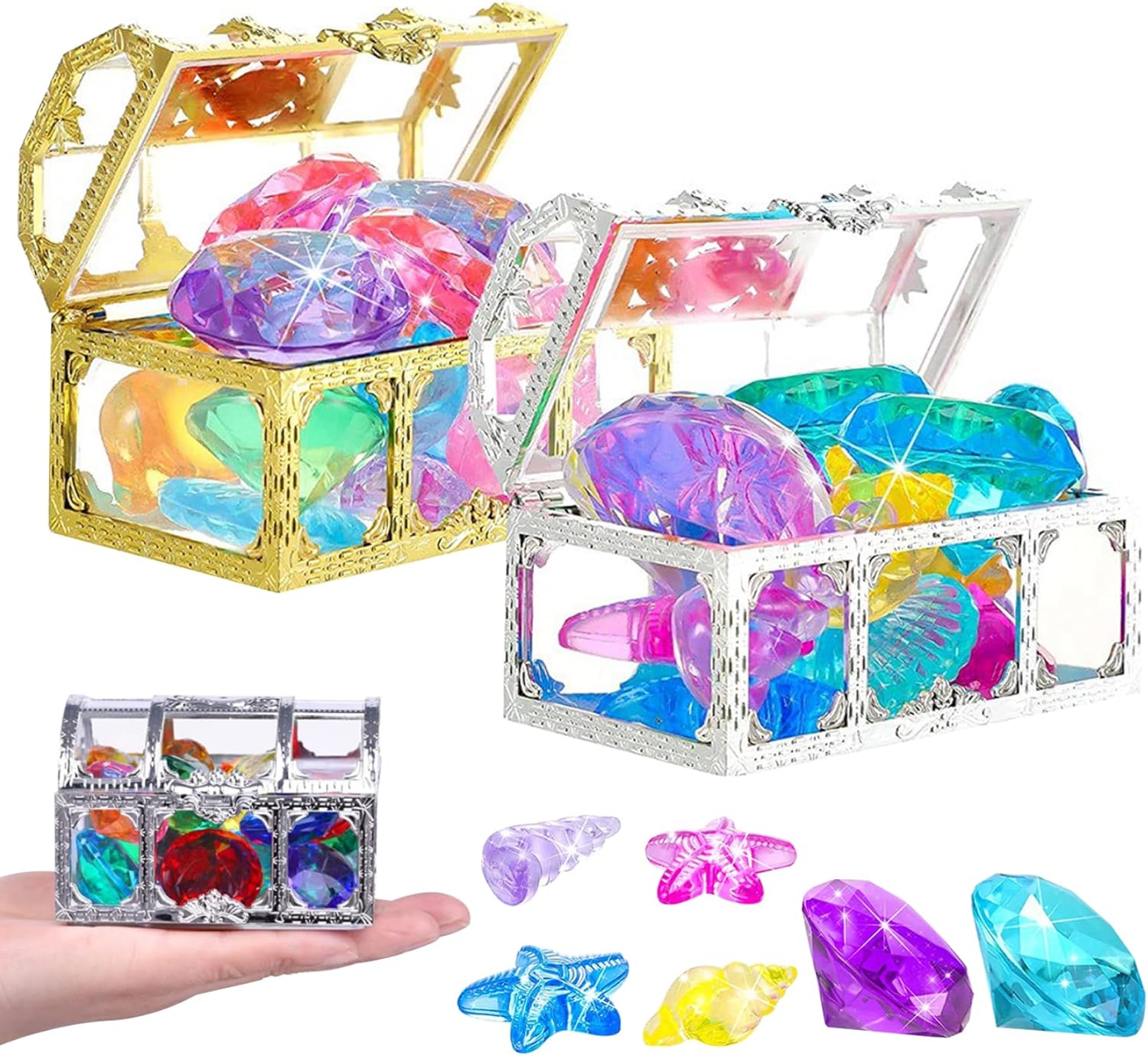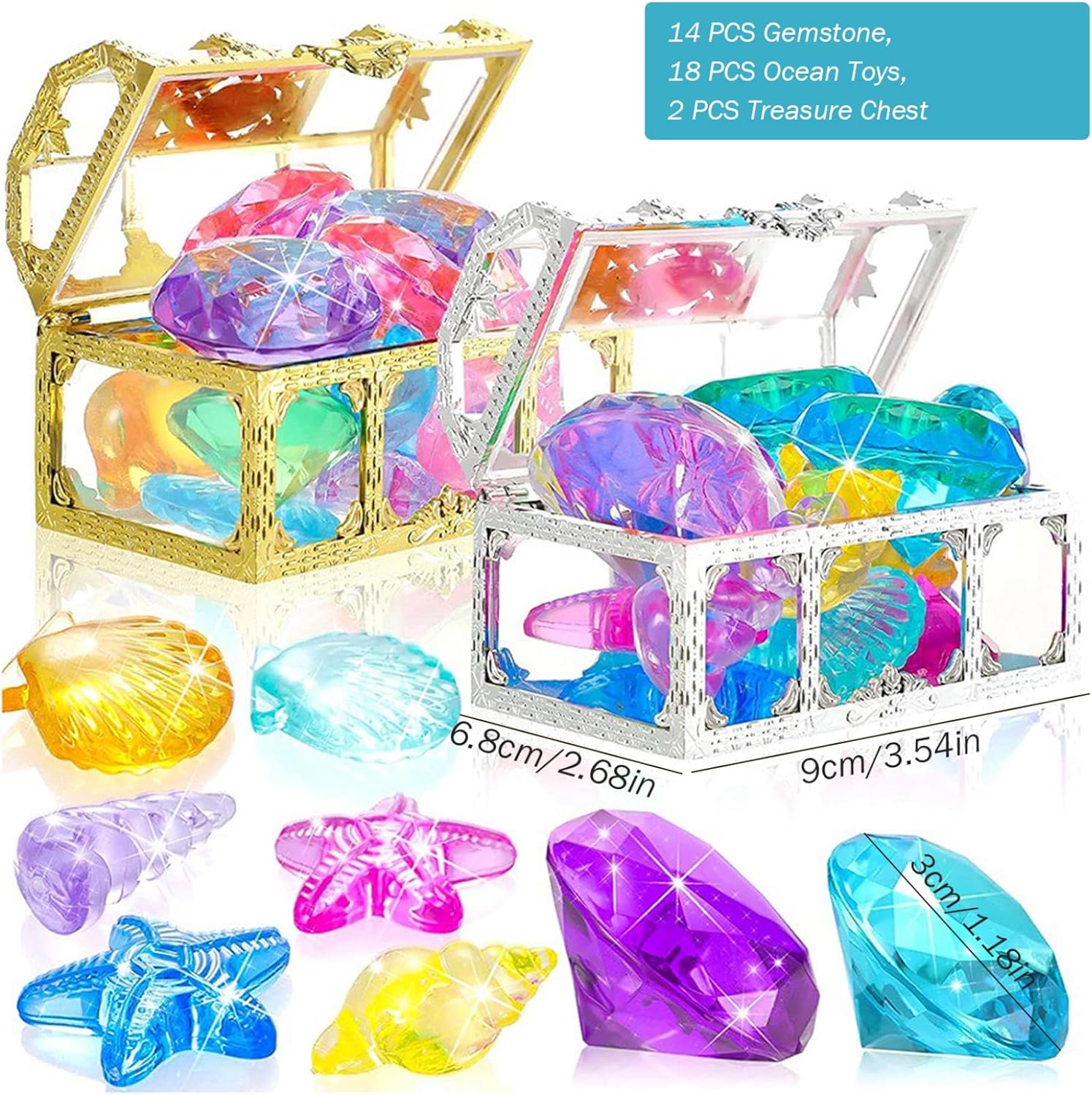 Materiale: i colorati giocattoli da piscina per bambini sono realizzati con materiali plastici selezionati, i colori non sbiadiscono facilmente e possono essere utilizzati in sicurezza..I pacchetti combinati colorati e di forma diversa possono soddisfare le esigenze di vari giochi di biliardo quotidiani. Scene applicabili: questi giocattoli da immersione sono adatti per le piscine estive e incoraggiano i bambini piccoli a immergersi..I giocattoli da piscina con tesori dei pirati possono essere utilizzati per i giochi in piscina per bambini e possono anche essere utilizzati in varie scene come giochi in spiaggia, feste in piscina e attività scolastiche con giocattoli subacquei. Applicazione divertente: basta gettare lo scrigno del tesoro nella piscina, attendere che affondi sul fondo dell'acqua, quindi aprire lo scrigno del tesoro per afferrare le pietre preziose..I giocattoli sono dai colori vivaci e di varie forme..Puoi trovarlo facilmente sott'acqua..I colori e le forme casuali sono pieni di divertimento..Puoi trascorrere un felice momento estivo in piscina con i tuoi bambini e la tua famiglia. Lista di imballaggio: il set di giocattoli per immersioni in piscina contiene 14 pietre preziose colorate, 18 giocattoli oceanici e 2 scatole del tesoro..Graziose pietre preziose e forme, tra cui conchiglie, conchiglie, colori belli e vivaci attireranno gli occhi dei bambini e li incoraggeranno a nuotare ed esplorare attivamente. Regali squisiti: questo set contiene 32 pezzi di tuffi colorati, perfetti per godersi il tempo estivo in piscina con i bambini e la famiglia..Il misterioso scrigno del tesoro dei pirati aggiunge eccitazione e divertimento all'esplorazione e incoraggia giochi fantasiosi.