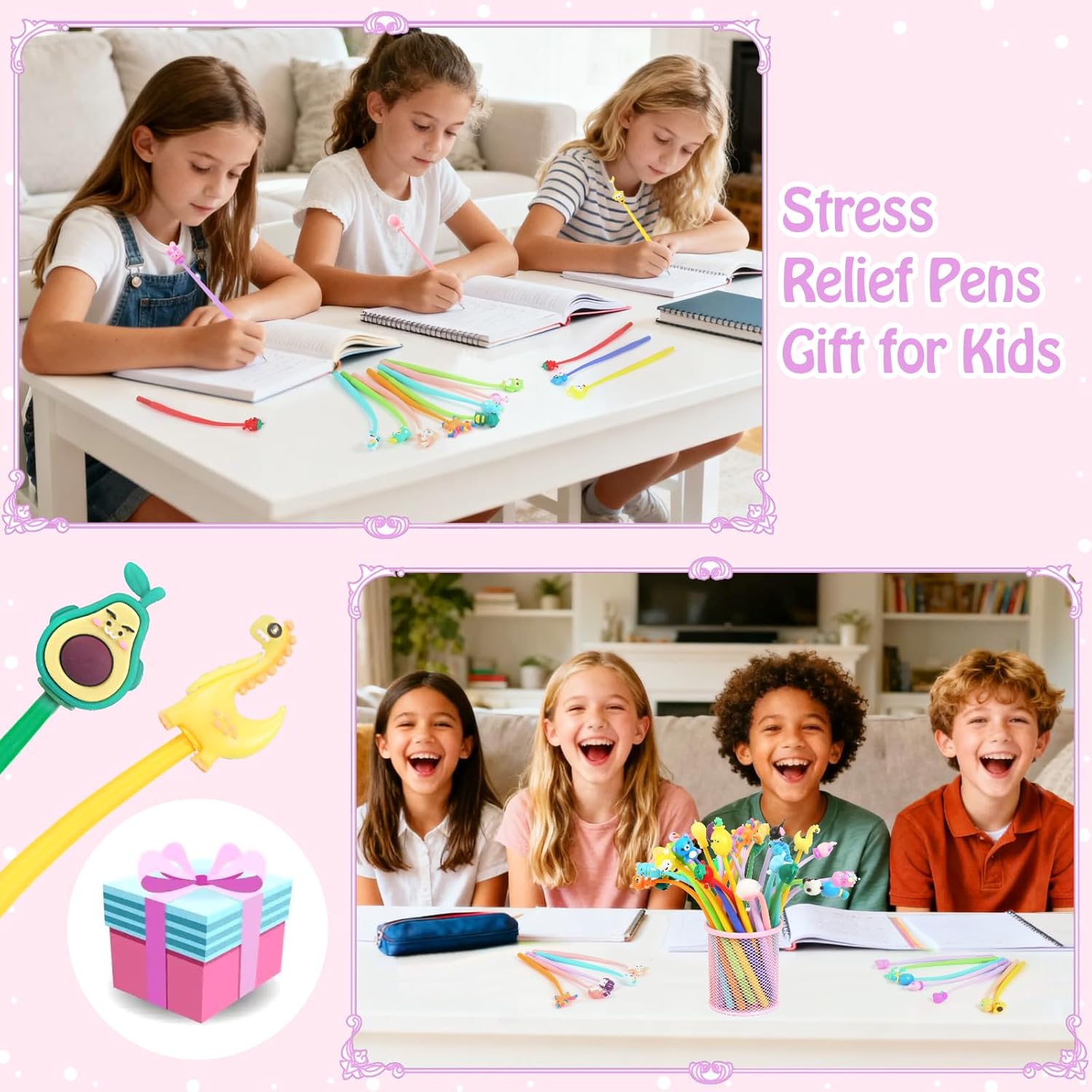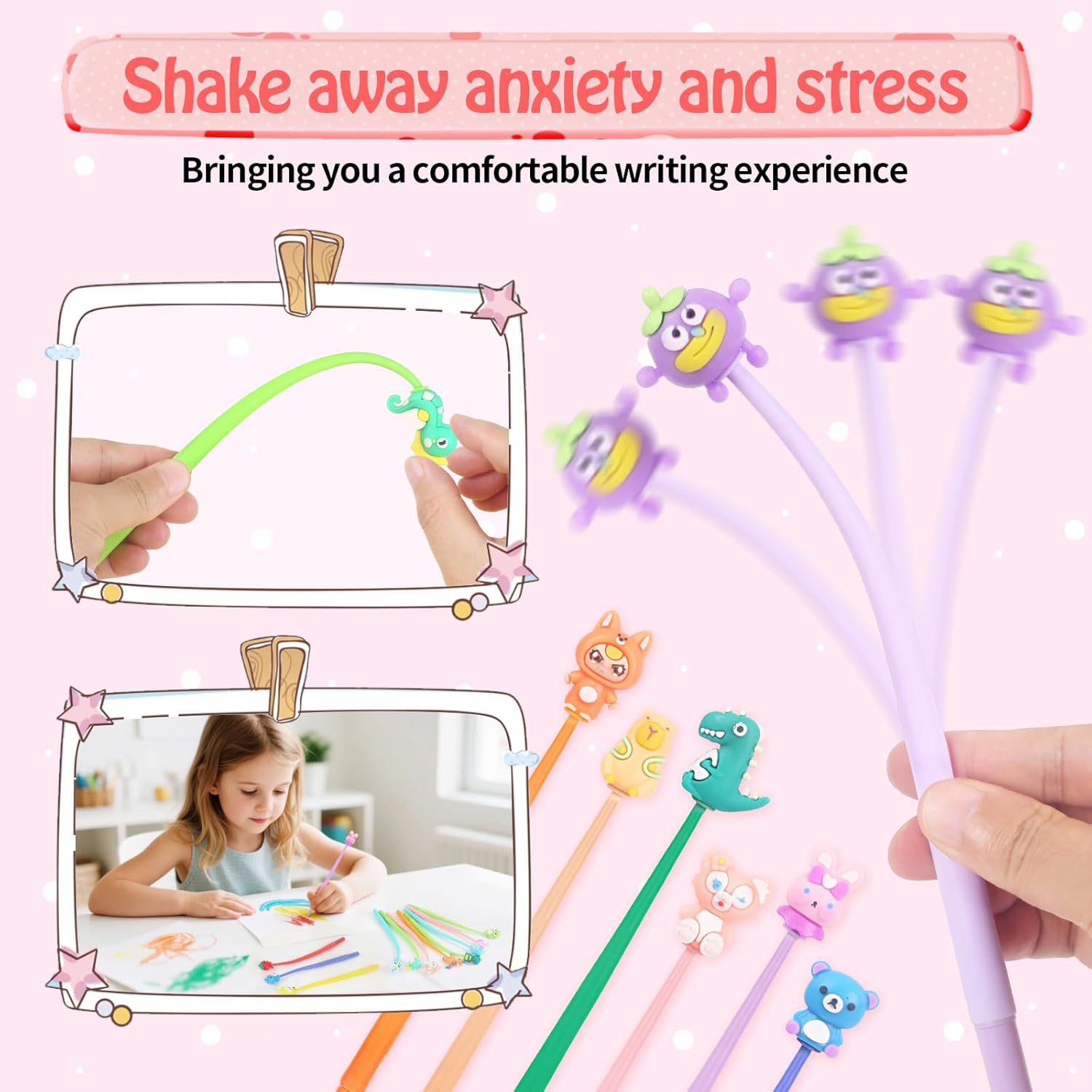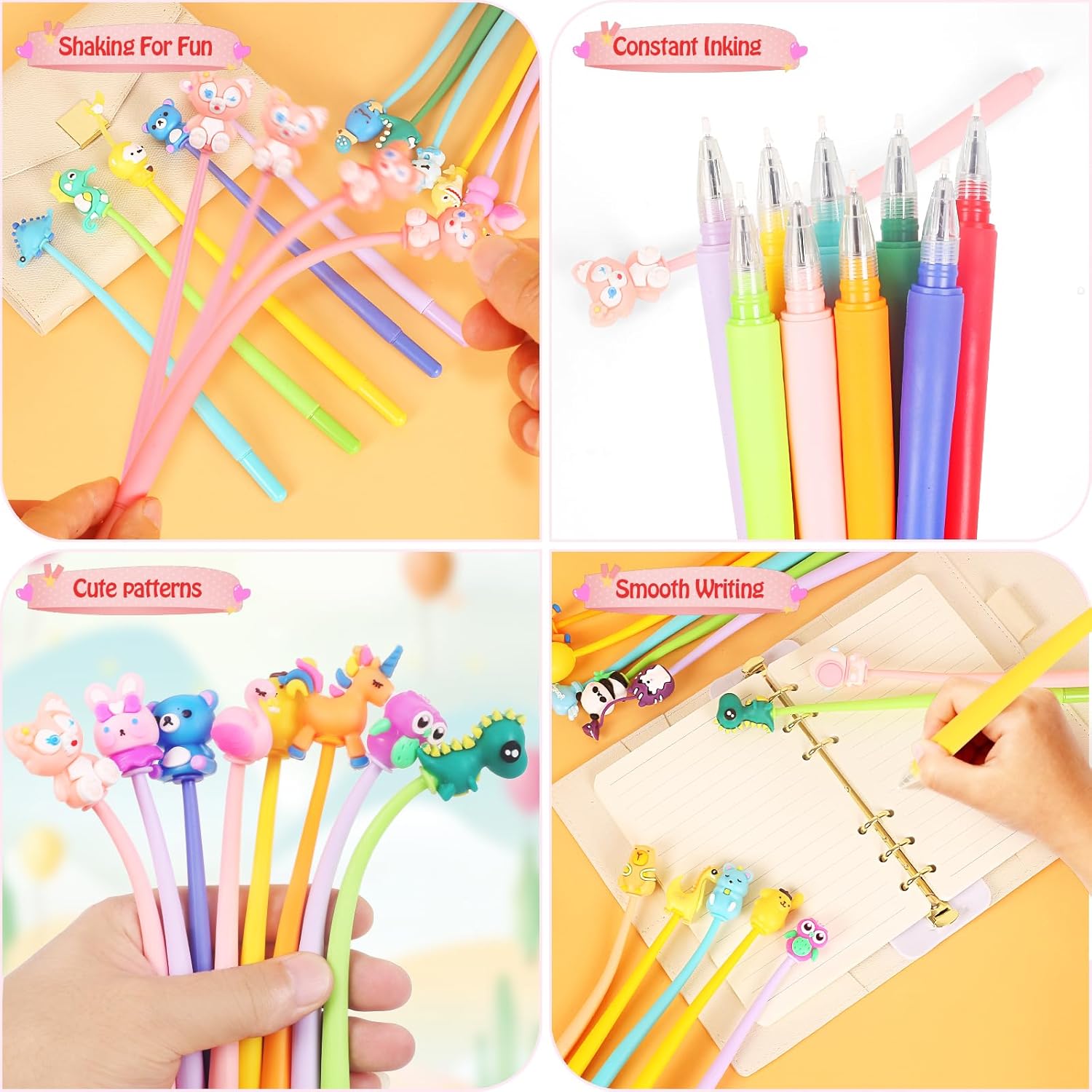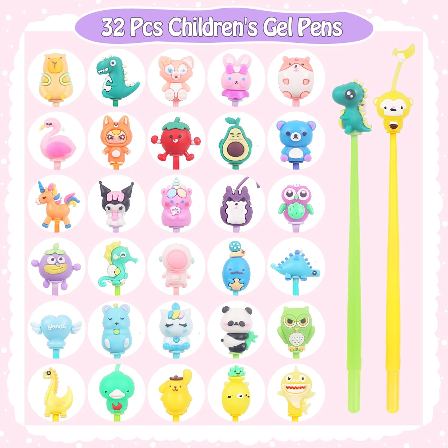 【Gadget Compleanno Bambini】: 32 Penne regalo festa bambini con tappi decorati, come panda, conigli, dinosauri, gufi, cavallucci marini, astronauti, fenicotteri, criceti, ecc. 【Penne Divertenti Antistress】: Il fusto della penna è realizzato in morbido silicone e può essere agitato, consentendo di scaricare lo stress e di rilassarsi in un'atmosfera di studio stressante. 【Regalini fine festa Compleanno】: Costituiscono un buon incentivo ad amare la scuola, ma soprattutto per divertirsi scrivendo. Un'idea fantastica per regalarli come gadget alle feste, come piccoli doni ai bimbi a scuola, regalini fine festa compleanno, gadget natale bambini. 【Regali per studenti】: Ideale per gli insegnanti da utilizzare come giocattoli premio, premi in classe, scrigno dei tesori, regali per il rientro a scuola, regali di laurea, ecc. Il squishy gadget aiuta gli studenti ad alleviare la pressione scolastica e l'ansia, motivandoli a ottenere risultati migliori a scuola. 【Materiale di sicurezza】: Penne animali bambini realizzato con inchiostro di alta qualità, plastica inodore, senza piombo, non tossico, innocuo per il corpo umano. Design carino con una scrittura fluente.