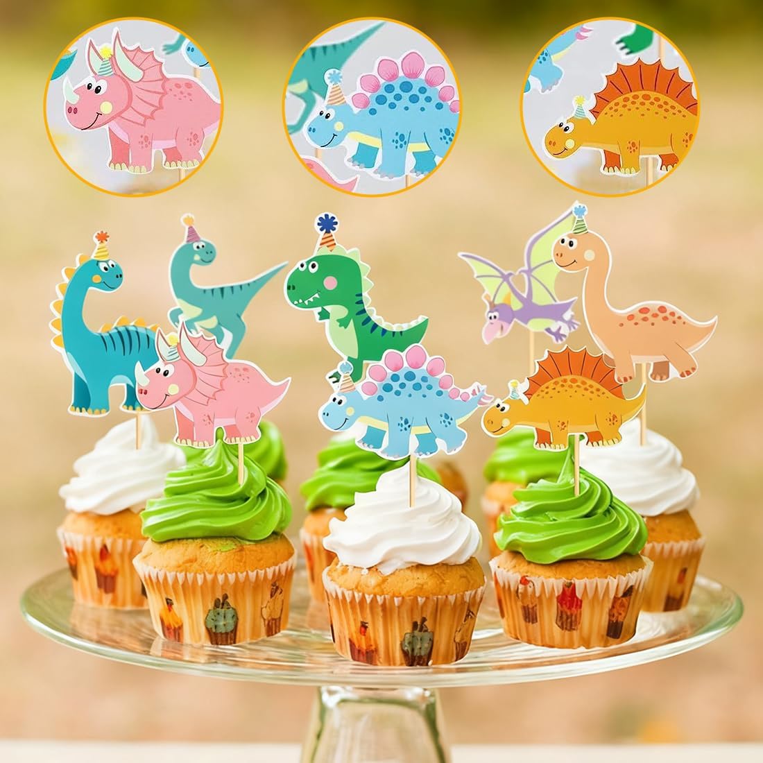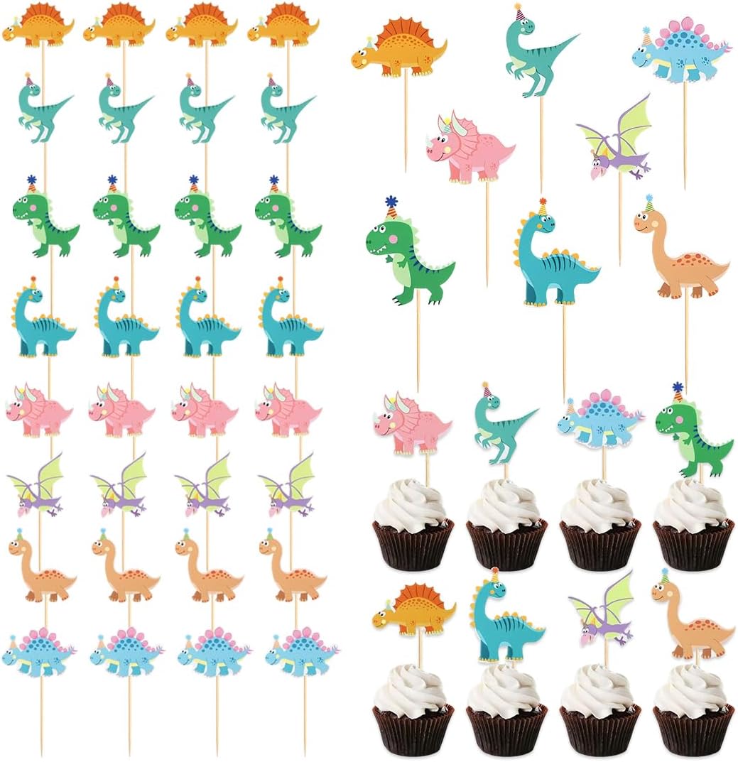Materiale sicuro per alimenti: La decorazione per torte a tema dinosauro è realizzata in cartoncino di alta qualità con colori vivaci che non sbiadiscono facilmente. Gli stuzzicadenti sono in materiale sicuro per alimenti, inodore e igienico. Perfetti per decorare torte, bevande e piatti caldi in modo sicuro e pratico Design adorabile a tema dinosauro: Le decorazioni per torte con dinosauri sono ideali per compleanni e cupcake. Con i loro simpatici motivi di animali, catturano l'attenzione dei bambini e creano un'atmosfera gioiosa per feste a tema dinosauro o compleanni per bambini Facile da usare: Le decorazioni per torte a tema dinosauro sono semplici da applicare. Basta inserire i topper nei biscotti, nelle torte, nella frutta, nei brownies o nel gelato per ottenere una decorazione creativa e d'effetto in pochi secondi Set completo e vario: Il set include 32 topper per cupcake a tema dinosauro in 8 stili diversi, con 4 pezzi per ogni stile. La quantità è sufficiente per soddisfare diverse esigenze decorative. Nota: La carta non è commestibile e non deve essere utilizzata in forno o microonde Decorazione versatile: Questa decorazione per feste a tema dinosauro è perfetta per feste di compleanno, lauree, anniversari e cene in famiglia. Può essere utilizzata per decorare biscotti, torte, frutta, dolci al cioccolato, gelati e molto altro