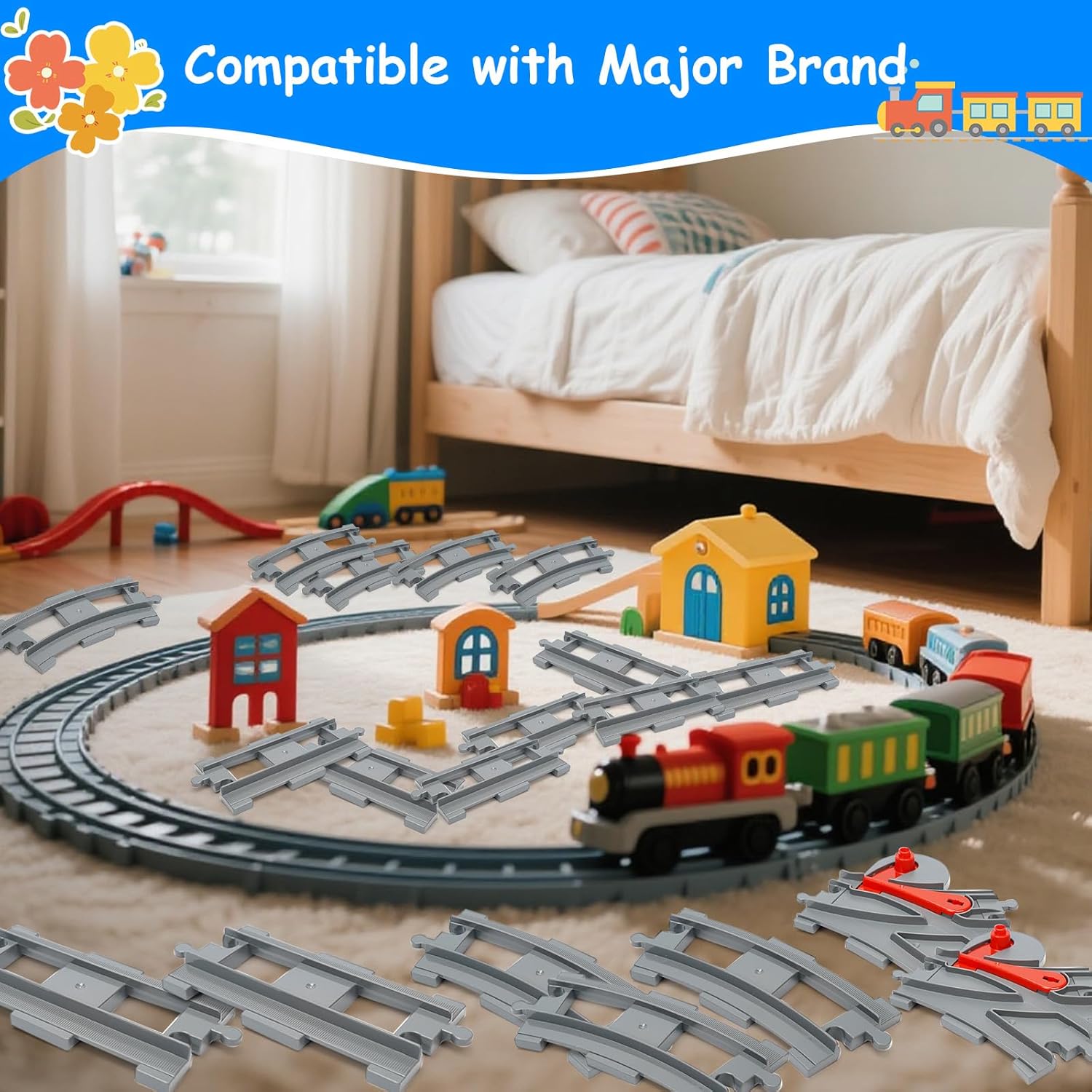 Set di binari per trenini: 32 binari ferroviari, compatibili con la maggior parte delle marche presenti sul mercato, inclusi 20 binari curvi, 10 binari diritti, 2 scambi, senza trenini né modellini. Binari per trenini di alta qualità: realizzati in ABS di alta qualità, sicuri, atossici, robusti e resistenti, garantiscono stabilità e durata nel tempo. Facili da usare: con un design semplice ma pratico per un montaggio senza complicazioni, i bambini possono usarli e maneggiarli in modo flessibile, garantendo un divertimento senza fine. Scatena un divertimento senza limiti: il set ferroviario non solo è divertente, ma promuove anche le capacità motorie e il pensiero innovativo attraverso l'assemblaggio, rendendo i binari più vari e diversificati. È un giocattolo educativo che stimola la creatività e la concentrazione dei bambini. Idea regalo: i nostri giocattoli City Train Rails sono facili da montare e adatti a bambini dai 3 anni in su. Questi binari sono il regalo ideale per i bambini in occasioni come compleanni, riunioni di famiglia, Natale, festa dei bambini e altro ancora.