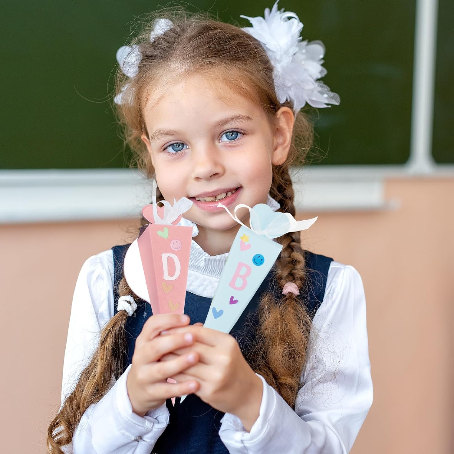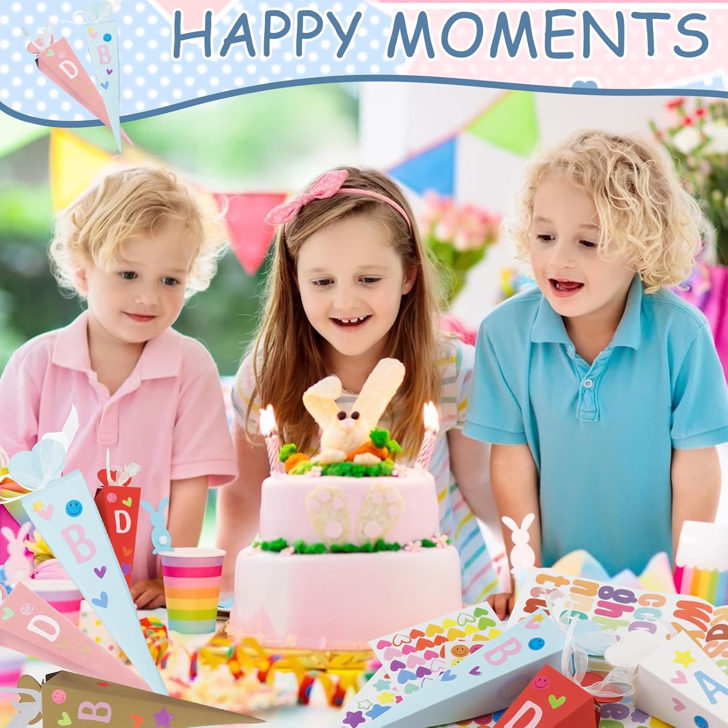 Contenuto della confezione: riceverete 32 coni per la scuola fratelli con una dimensione di 20 cm, 4 fogli con adesivi e corda di guarnizione, in totale otto colori: intensa, viola scuro, viola chiaro, azzurro, bordeaux, crema, rosa, bianco, forza, così voi e il vostro bambino potete creare bellissimi prodotti. Materiale: set fai da te per la scuola in carta di alta qualità con una superficie liscia, sicura ed ecologica, non si strappa o scolorisce facilmente, la composizione colorata non lascia nulla a desiderare. I sacchetti per la scuola di fratelli sono una fantastica e pratica confezione regalo per l'inizio della scuola di ragazzi e ragazze. Decorazione per l'ingresso: riempilo con caramelle o altri piccoli regali, fissalo con una fascetta, un bel mini cono per la scuola è pronto, puoi personalizzare o dipingere il sacchetto di zucchero per ragazze con adesivi, sarà un regalo indimenticabile per il primo giorno di scuola del tuo bambino. Design fai da te: i sacchetti per fratelli sono molto facili da montare e possono essere facilmente piegati dai bambini, con adesivi alfanumerici sarà ancora più unico e bello, gli elementi possono essere combinati liberamente. Ampiamente utilizzato: questo cono per la scuola piccolo per ragazzi e ragazze, per l'inizio della scuola, per la scuola 1. Accessori per feste per la scuola, regalo di addio all'asilo o piccolo regalo per amici scolari, compleanni, Natale o feste per bambini, per regalarvi una giornata indimenticabile.