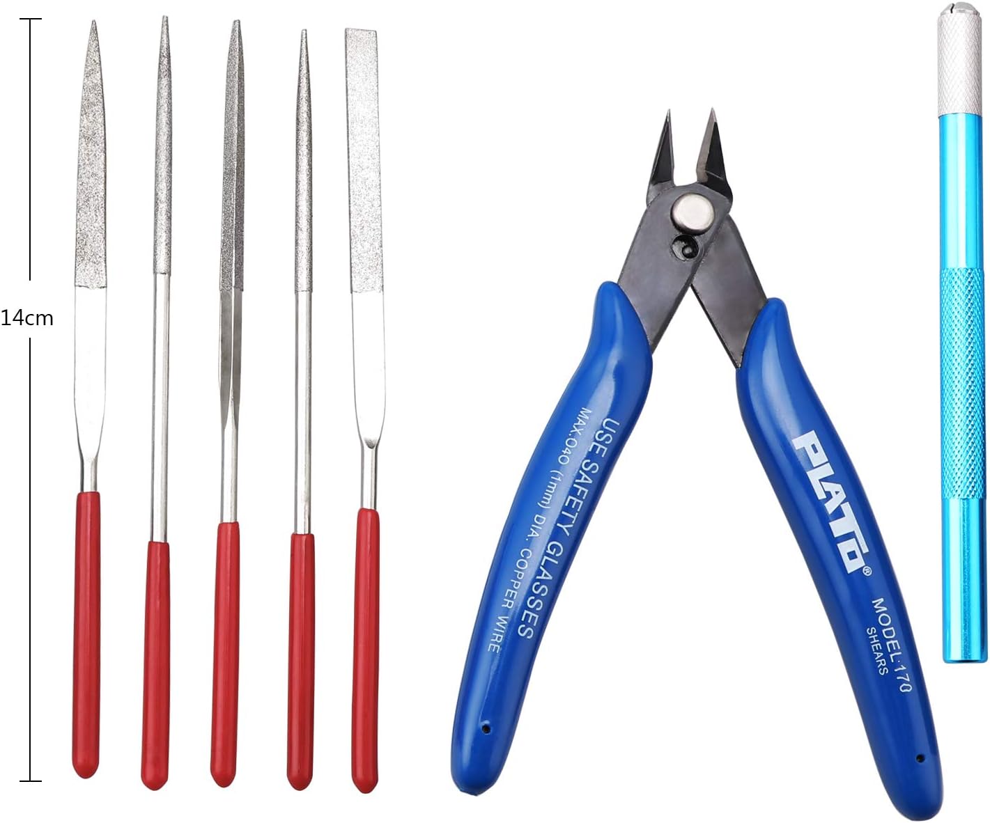 Applicazione: il set di strumenti di base per modellatore è adatto anche per principianti ed esperti. Puoi usarlo per produrre giocattoli, auto, robot, cartoni animati e altri mestieri. Gamma completa e conveniente: la confezione include: 4 x carta vetrata; 1 x tappetino da taglio; 1 x rettificatrice elettrica e 1 set x 5 pezzi di testine (cono diamantato/cono piccolo/cono di macinazione/cono in feltro/testa di smerigliatura); 2 cacciaviti; 5 x lime; 1 x separatore; 1 x righello in acciaio; 7 x blocco lucidatura; 5 x pinzette. 1 x Gr. aver; 1 set x 5 pezzi taglierina di ricambio Leggero e portatile: questo set di strumenti per principianti è leggero e portatile. Quando li usi, ti sentirai più a portata di mano. Durevole: la penna trimmer è saldamente bloccata e ha un'elevata durezza, manico in plastica e design antiscivolo. Con tappo di protezione di sicurezza per proteggere la lama. La pinza da taglio è realizzata in acciaio al carbonio, buona durata. Le pinzette sono realizzate in acciaio inossidabile ad alta resistenza, antistatiche, anti-acido, anticorrosione e anti-magnetiche. Altri articoli hanno anche alta qualità Ottimo regalo di Natale: se hai un amico come animazione, cartone animato e modella, o lei o lui è un principiante del modello, puoi presentare questo set di strumenti per modellare direttamente ai tuoi amici o utilizzare gli strumenti per creare un regalo per il tuo caro amico. Come regalo di Natale.