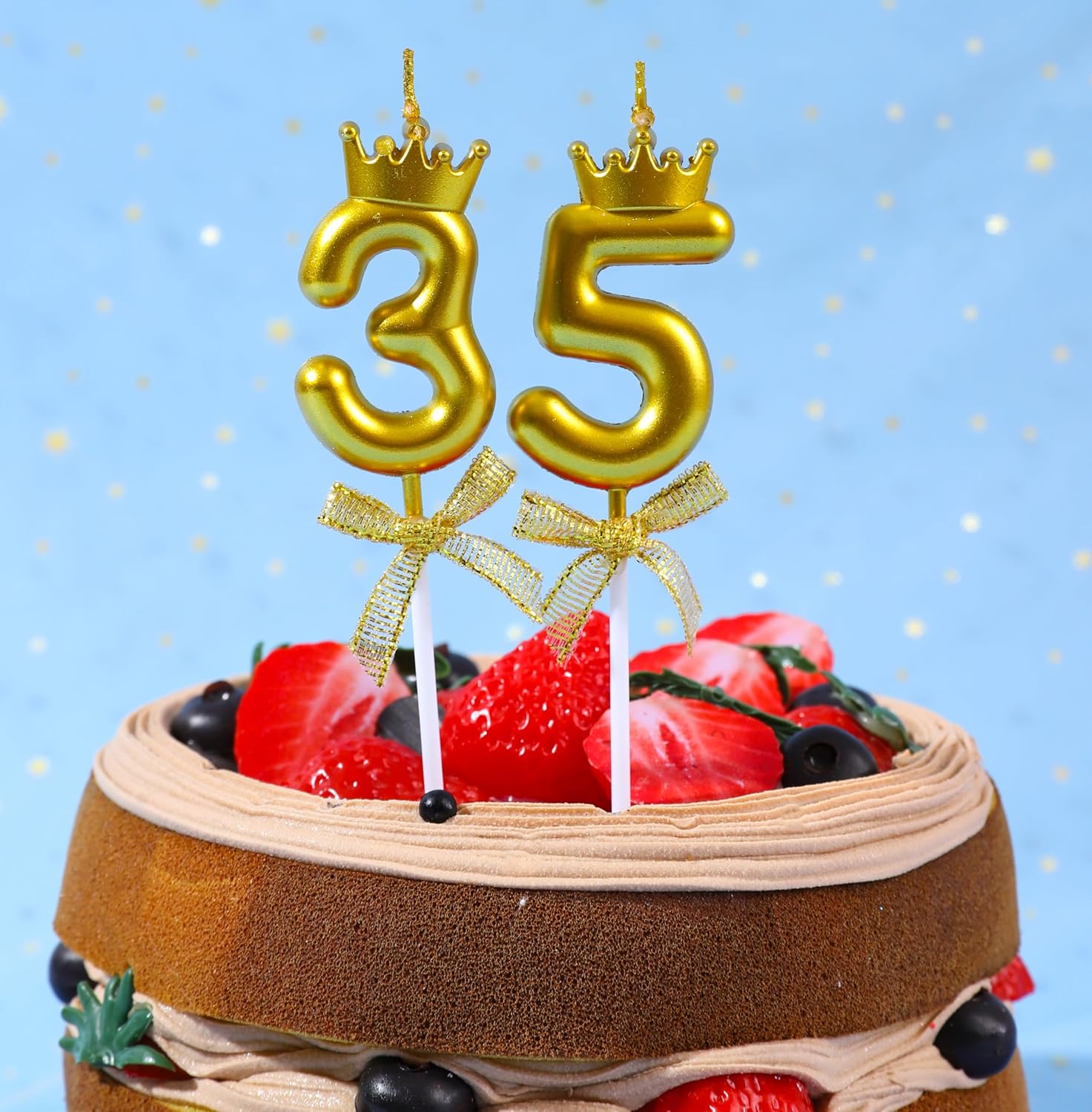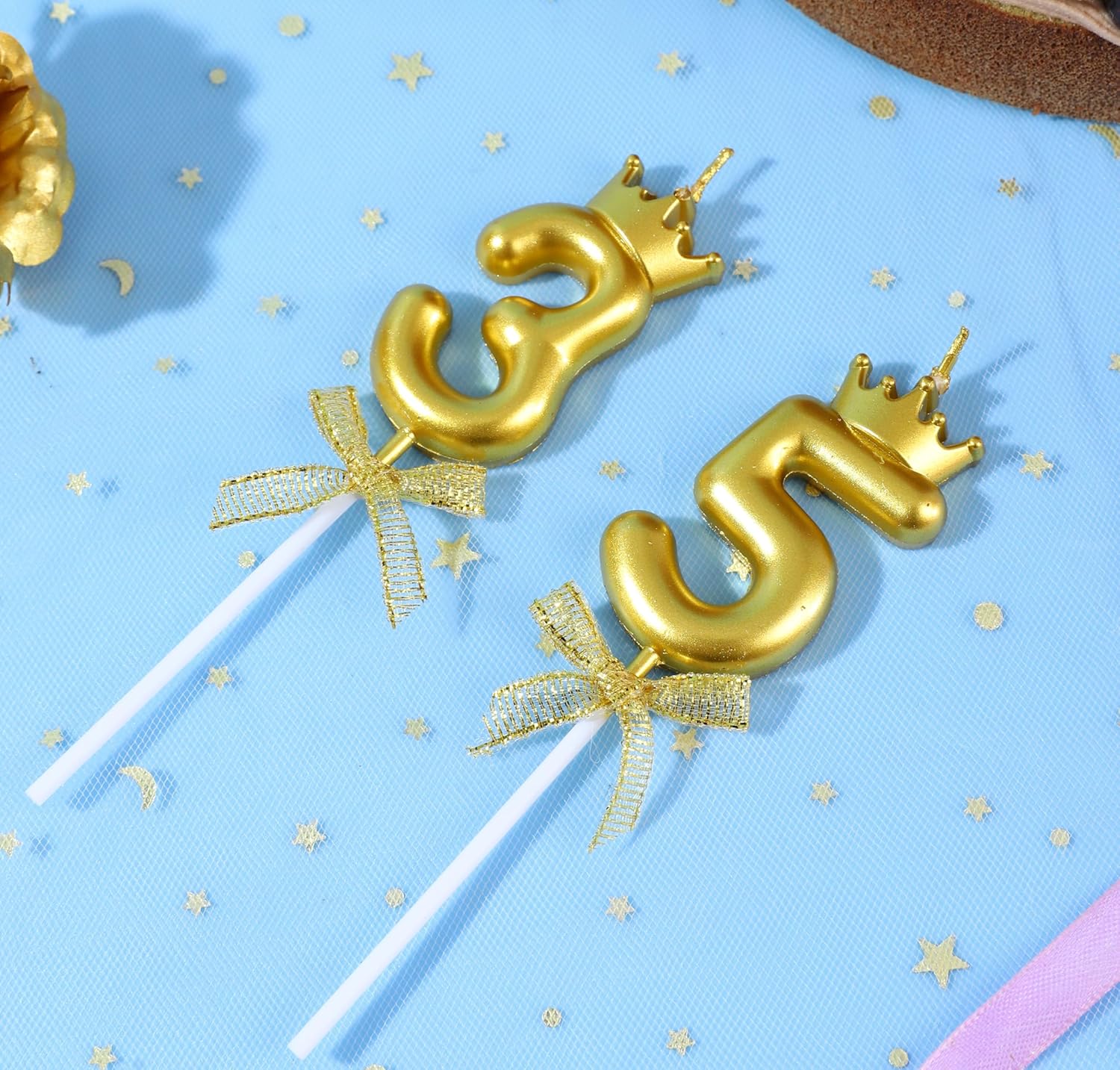 35 & 53 candele di compleanno, 3D oro numero 35 candela topper torta con corona per 35° 53° compleanno, anniversario di matrimonio, feste, celebrazioni decorazioni